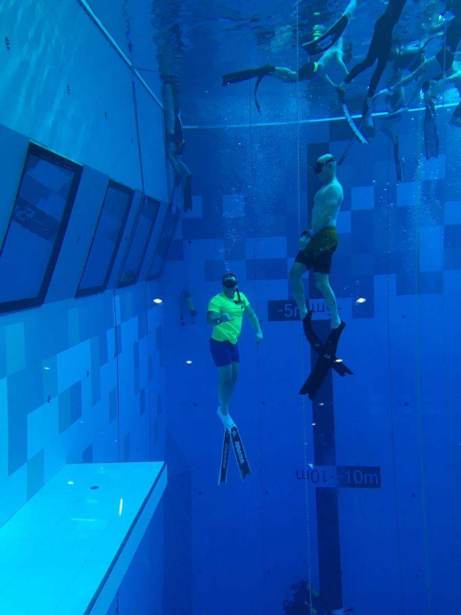 - Praktyka w basenie DEEPSPOT (Technika nurkowania i pływania, ratowanie i pomoc przy BO, i LMC, zajęcia w dynamice (CWT)) do głębokości 20 metrow.