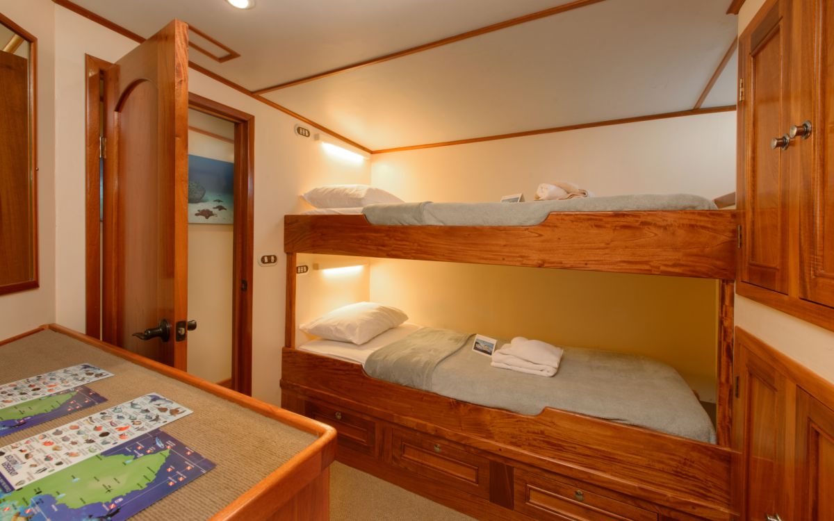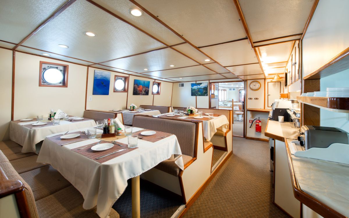 Na safari wybieramy się łodzią safari M/Y Sea Hunter na pokładzie której będziemy zakwaterowani w dwu osobowych kabinach z klimatyzacją i prywatną toaletą oraz prysznicem. Kabiny są dość przestronne z duża ilością szafek i biurkiem. Sea Hunter to dość duża, stalowa, 35m jednostka posiadająca na swoim pokładzie 10 kabin, salon, część wypoczynkową oraz jadalnie. W klasie łodzi pływających w rejonie wyspy kokosowej oznaczona jest jaki Luxory, 4 gwiazdki międzynarodowe.