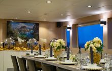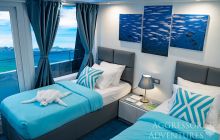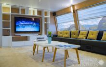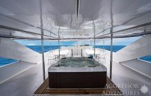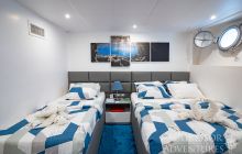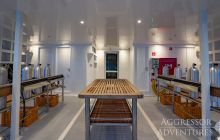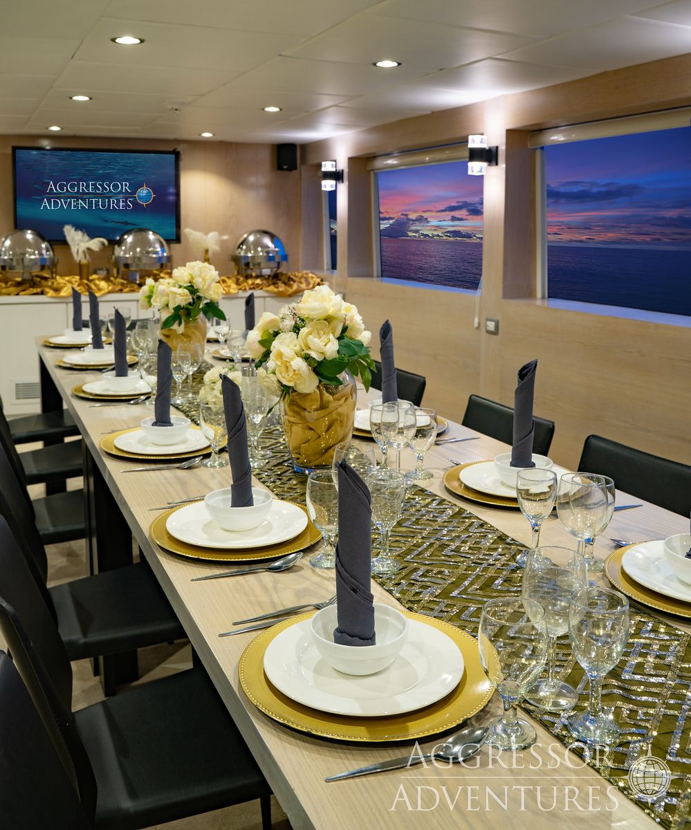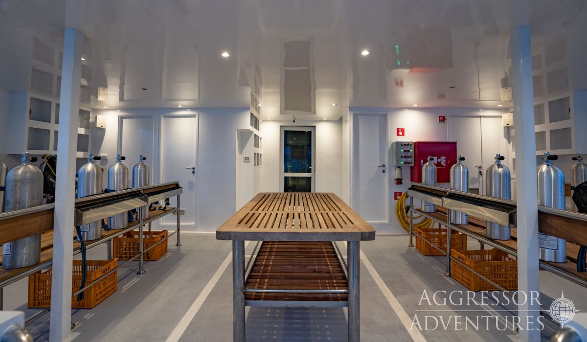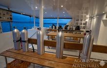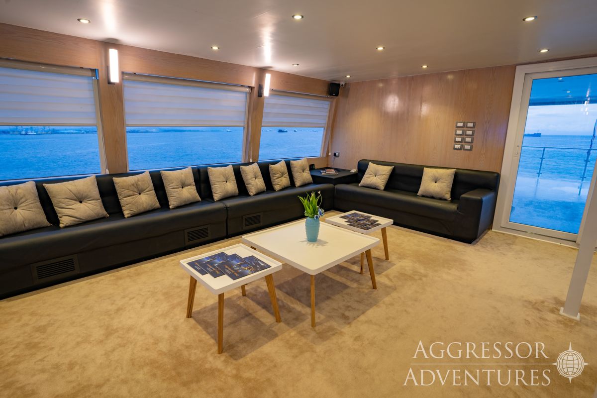 Salon wypoczynkowy znajduje się na pokładzie górnym a restauracja na pokładzie dolnym. Jednostka ma dość przestronny dek nurkowy przygotowany do obsługi 24 gości.