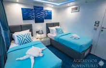 Na Tubbataha wybieramy się obecnie chyba najlepszą łodzią jaka tam pływa. Philippines Aggressor to 41 metrowa jednostka zbudowana z myślą o komforcie żeglugi i nurkowania. Wyposażona jest w 4 pokłady. Najwyższy przeznaczony jest na relaks z jacuzzi i miejscem do opalania a 3 pozostałe na część użytkową i mieszkalną. po 4 kabiny na każdym pokładzie. Kabiny na górnym pokładzie posiadają prywatne balkony oraz duże panoramiczne okna. Środkowe są nieznacznie mniejsze i posiadają duże panoramiczne okna. 4 kabiny w części dolnej są tych samych wymiarów co środkowe bez panoramicznego okna.