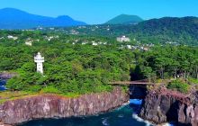 Po południu spacer ciekawym geologicznie wybrzeżem Jogasaki mostami linowymi ponad imponującymi klifami lub/i wśród siedmiu wodospadów Kawazu.
