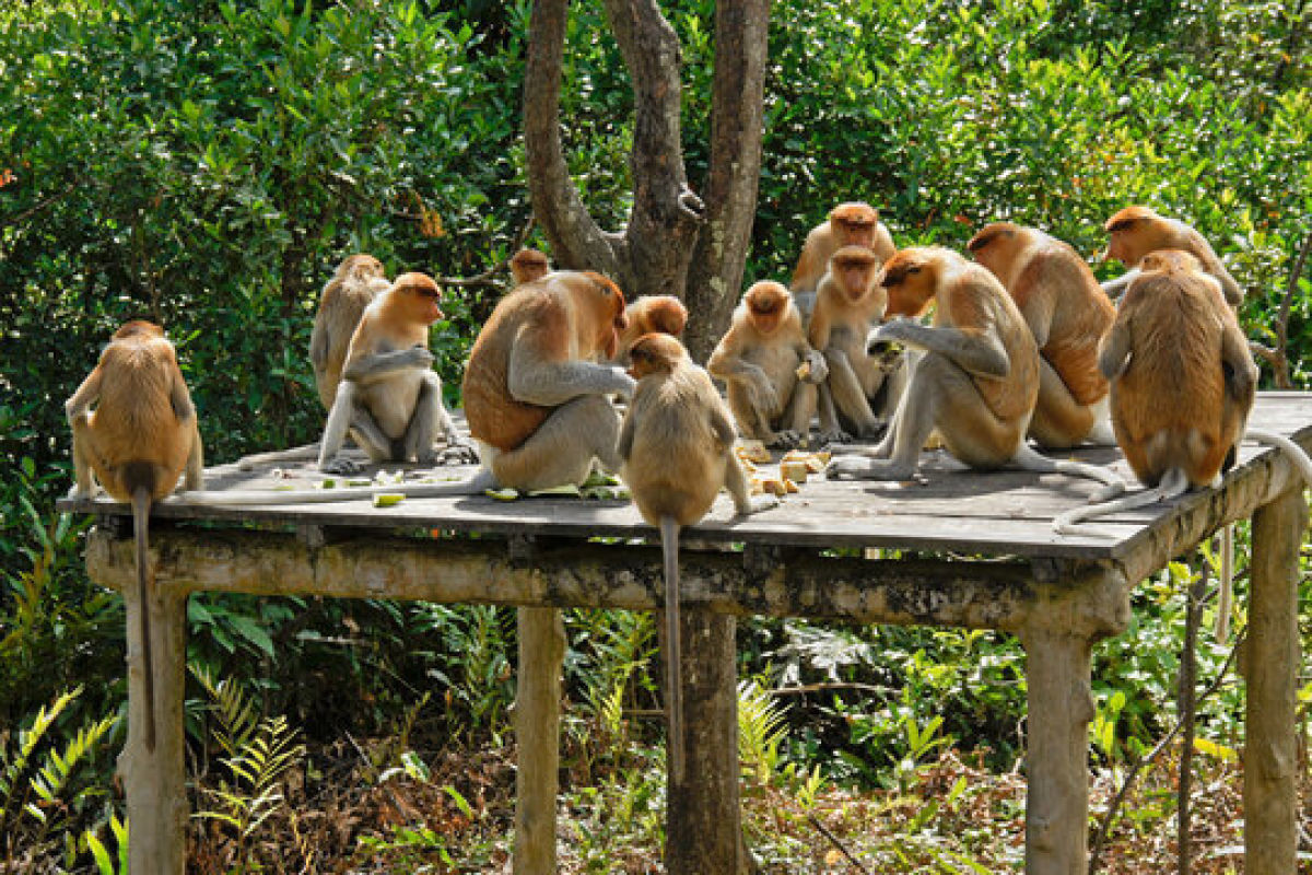 Ta trasie zatrzymujemy się Labuk Bay gdzie o określonej porze na platformie, skraju lasu spotkać można małpy długonose doprowadzi nas do niej edukacyjna ścieżka wzdłuż deszczowego lasu.