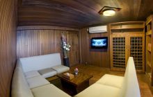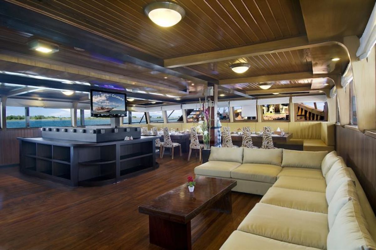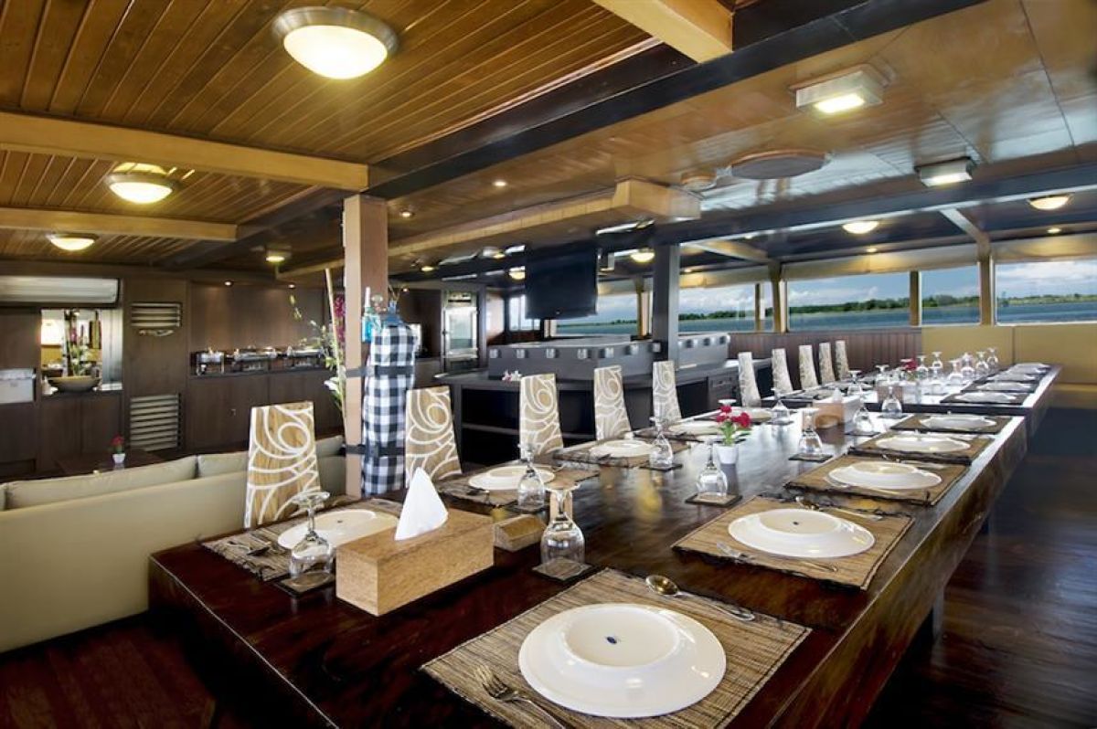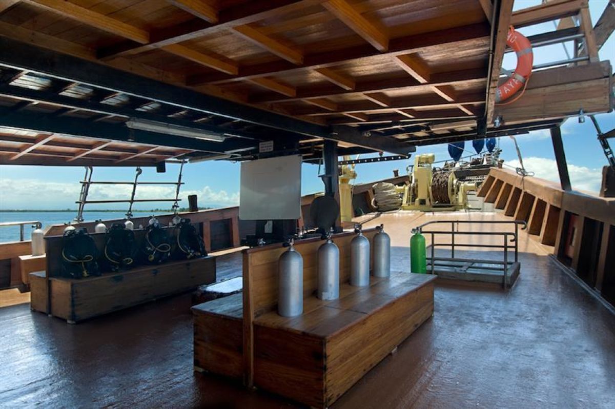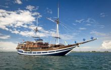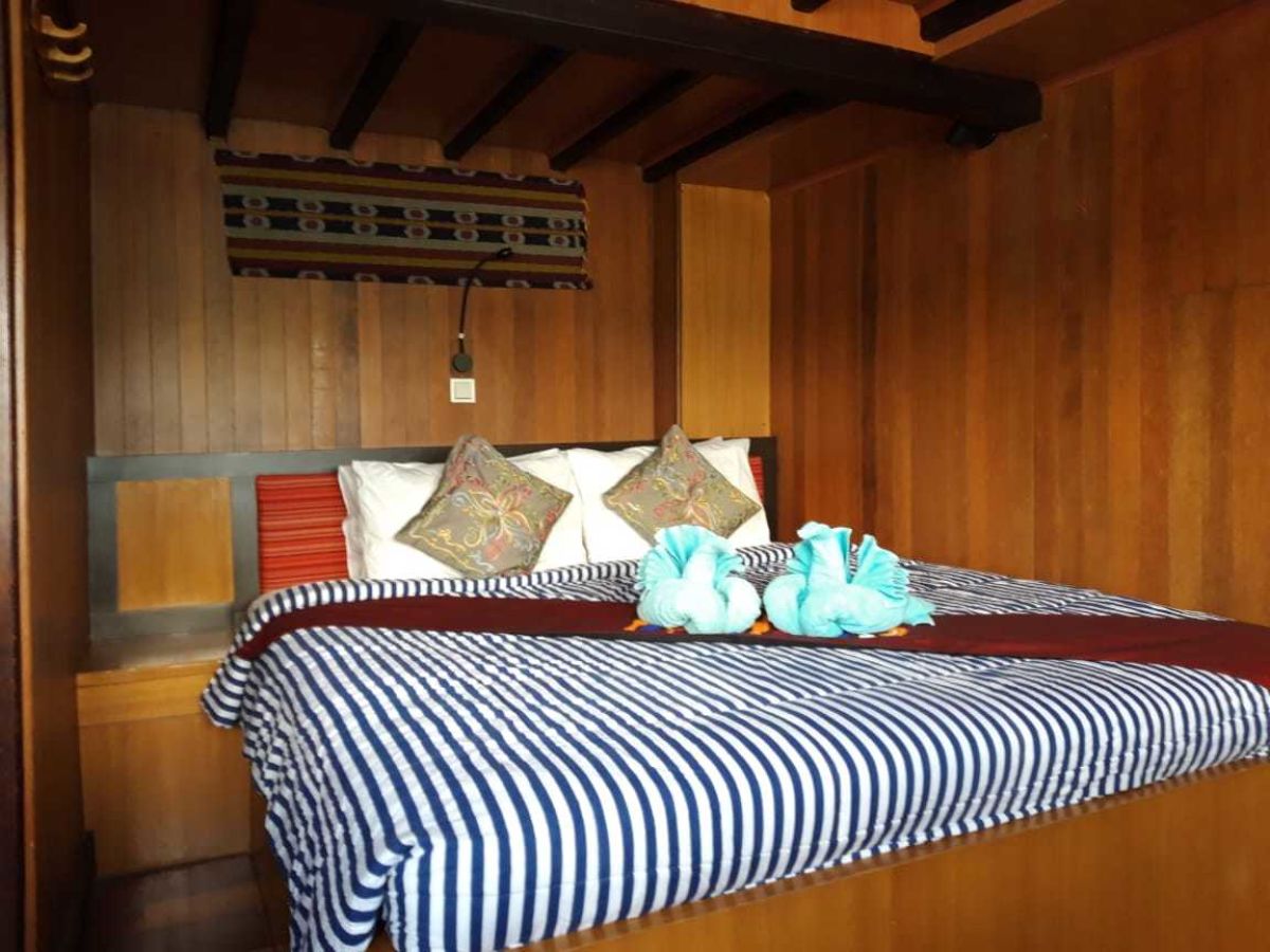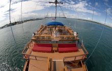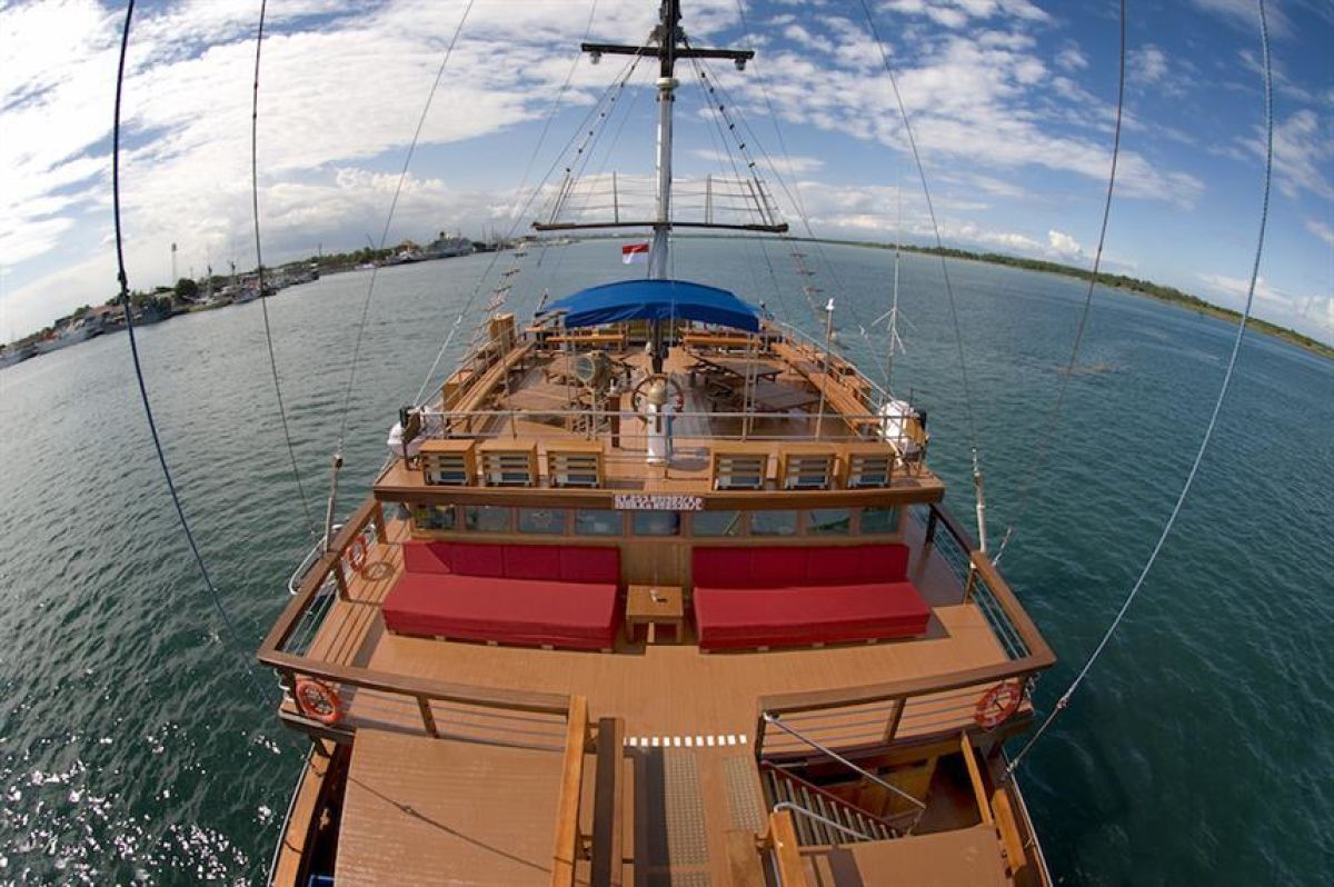 During this year's trip on Komodo we will use the Cheng Ho boat. It is a very comfortable, 33-meter wooden unit, which is prepared to serve 24 people. Cheng Ho has 14 cabins, each has a private bathroom with toilet, air conditioning and one or two beds. Accommodation cabins are located on the lower and middle deck. 6 cabins with one large double bed are located in the lower and middle part of the decks, 4 cabins with two separate beds in the lower part of the deck and 4 single-passenger cabins in the middle of the boat. Cheng Ho is a comfortable boat, with a spacious dive deck, living room and restaurant. A very interesting wooden structure stylized on a sailing ship is also worth attention.