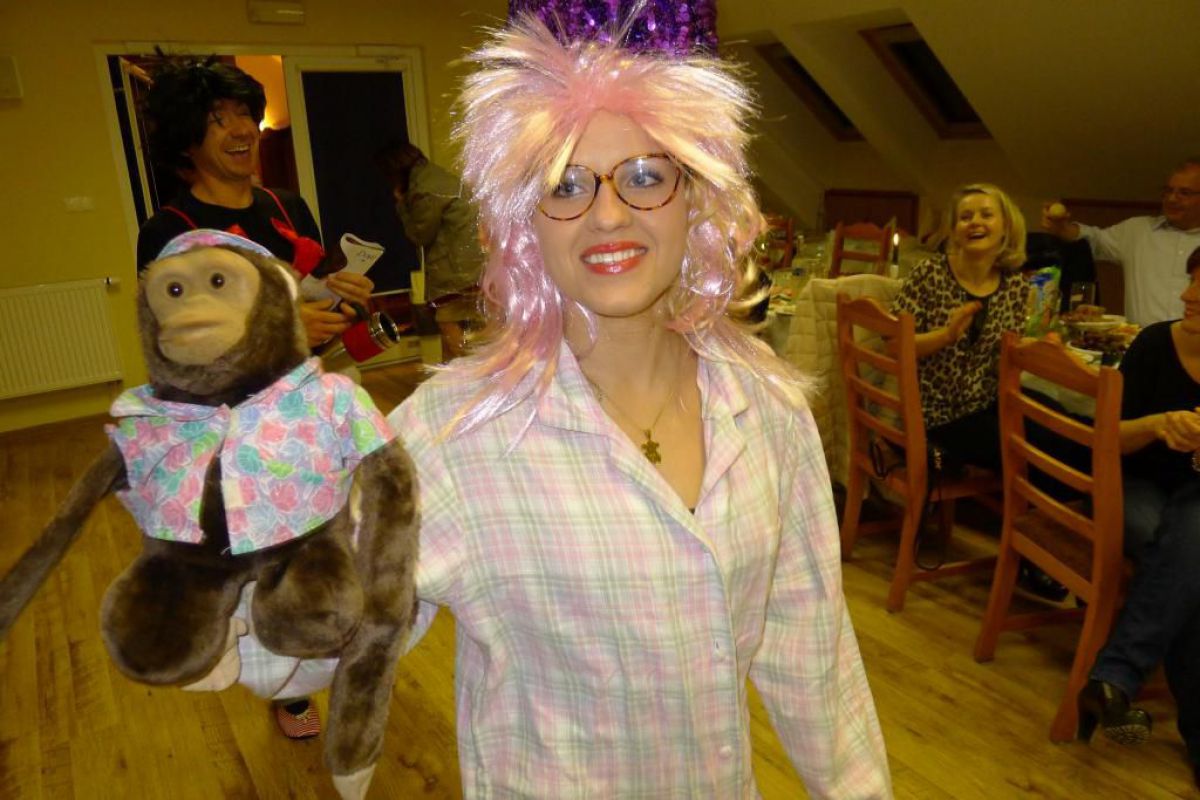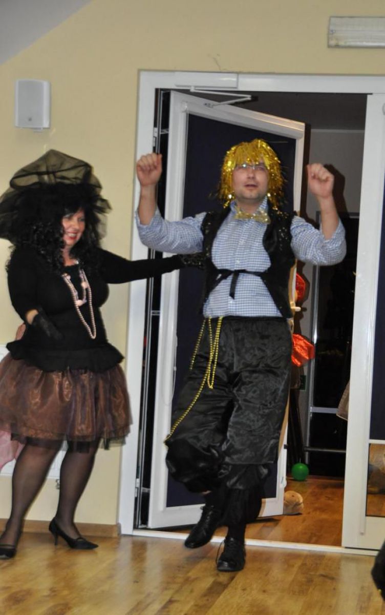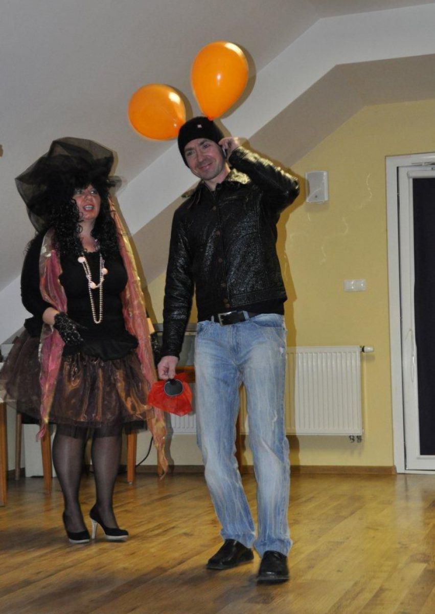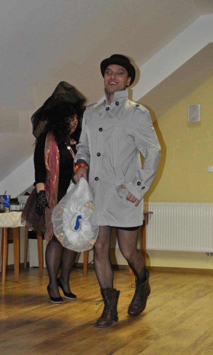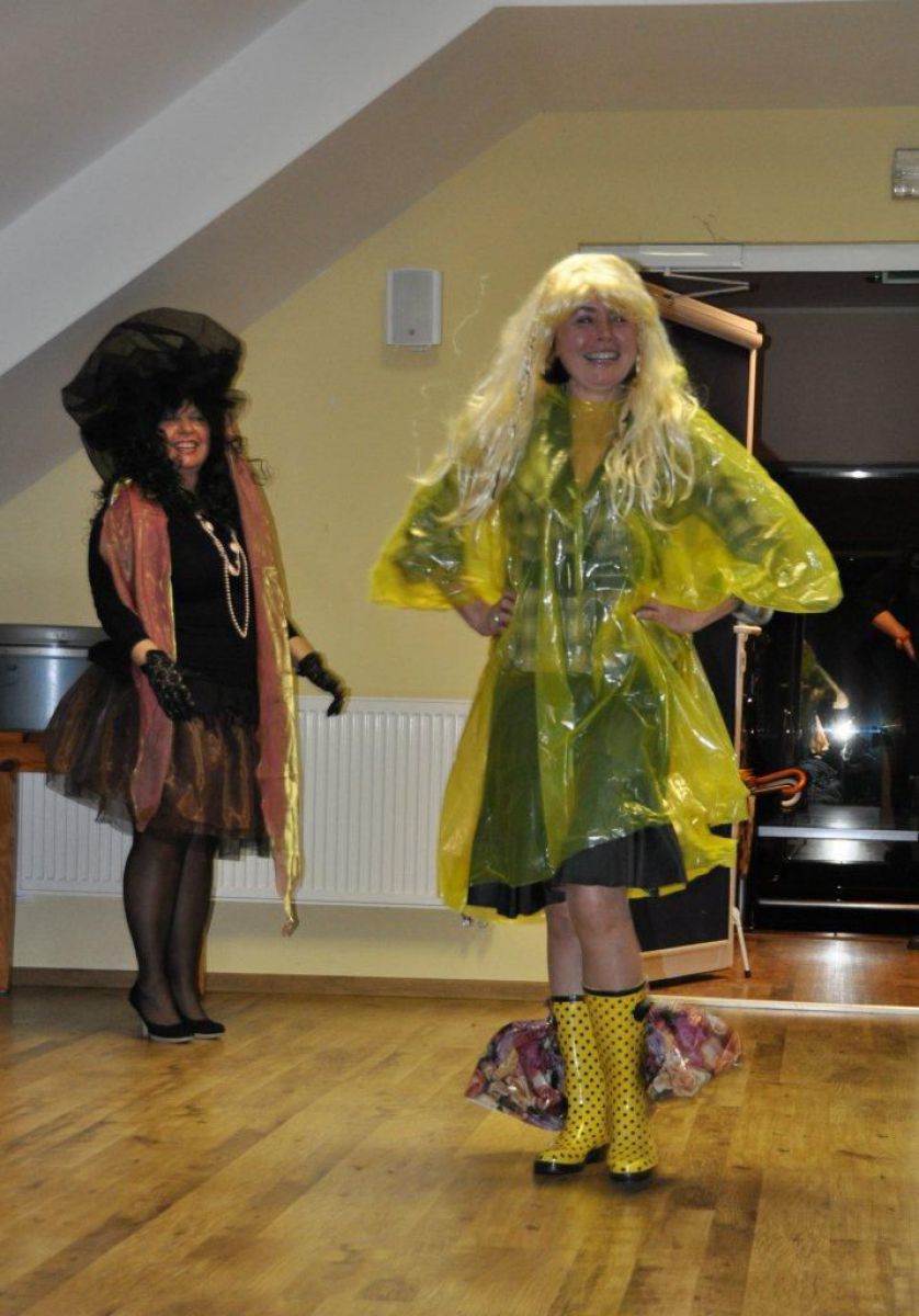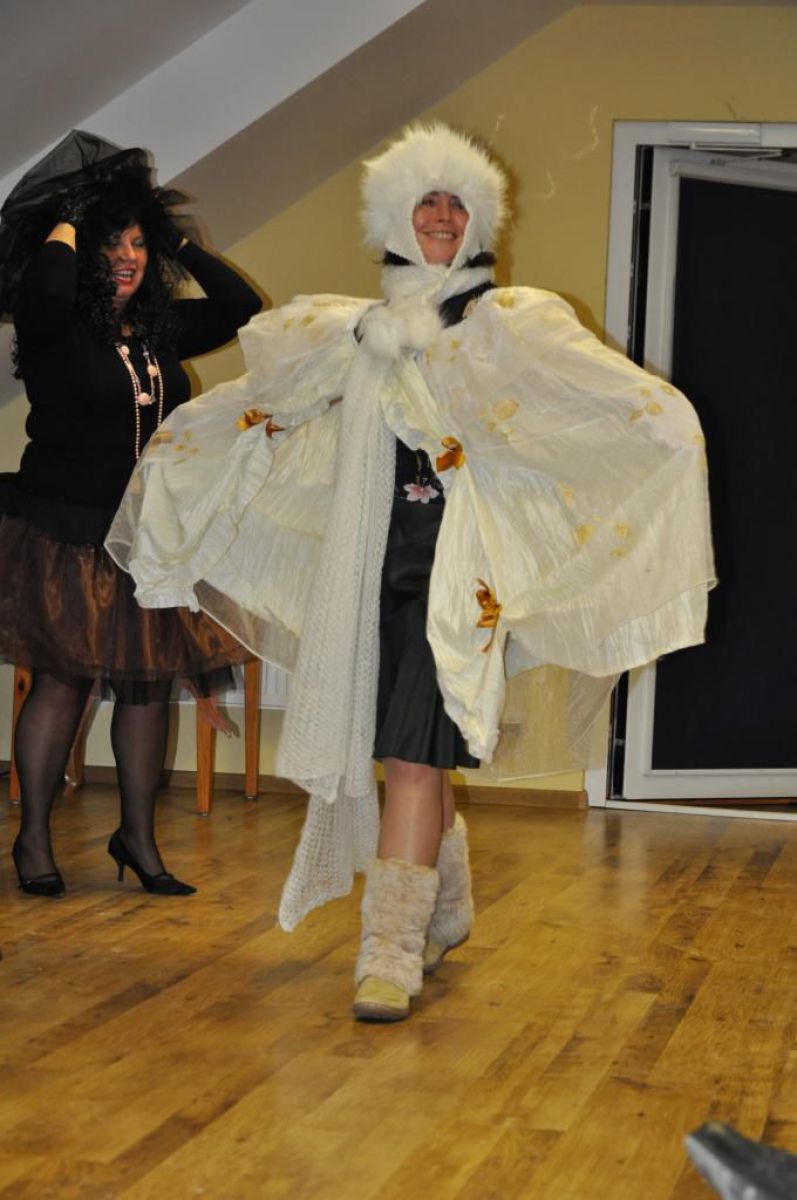 Ciemny zimny wieczór listopad się kończy. Deszcz zacina mokry, wiatr nad Kłodnem krąży. W tej smutnej scenerii wesoła gromada u Krefty w ośrodku za stołami siada. Wszyscy się przebrali diabełki i rogi, tu tańczy gej z panną tam kreator mody. Taki chłop z krwi kości zmieniony w dziewczynę, a inny bez włosów czarną ma czuprynę. Projektantka Asia vel Małgosia Pufa pomysły ma świetne i kostiumów kupa, więc wesołość wielką budzi dziś na sali gdy ślub Pauli z Wnorkiem na nowo przedstawi. Męczą się więc młodzi na oczach publiki, próbując rozwiązać życiowe chochliki. Bo przecież ślub Nurka to jest ważna sprawa a tutaj wesoło można go przedstawiać. Gdy ślub dobiegł końca, Asia vel Małgosia zaraz pokaz mody wesoły ogłasza, więc odzież sportowa do grania biegania a potem zimowa i taka do spania. Modelki, modele, wybrane z publiki robiły furorę, te pozy uniki, te piękne kreacje ten kolor i szpan, publiczność szalała, a to Asi plan. Więc bardzo dziękuję wszystkim co przybyli i fajnie do rana z humorem bawili a Asi Skowrońskiej kłaniam się dziś nisko dziękując za wspaniałe, śmieszne widowisko.