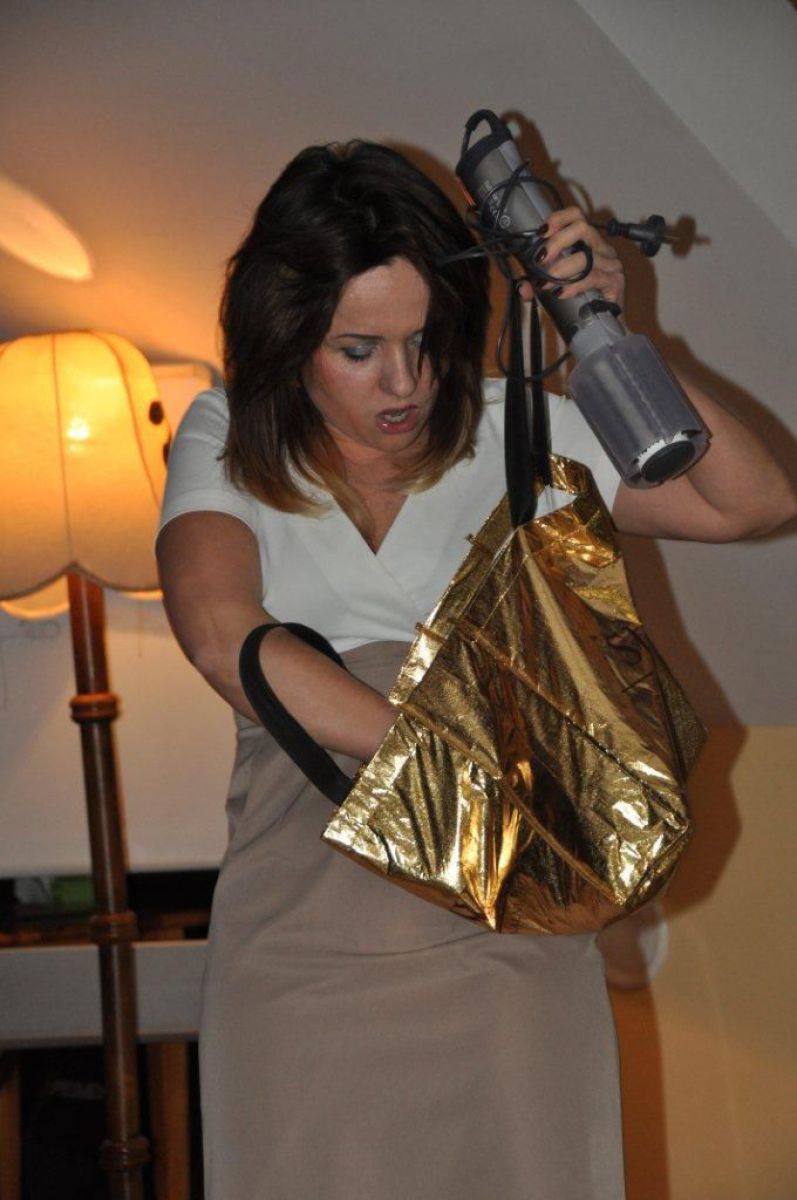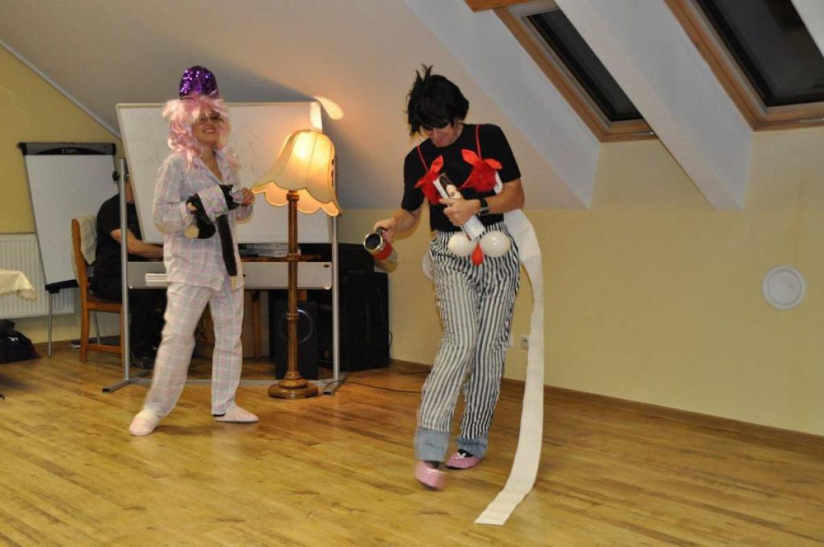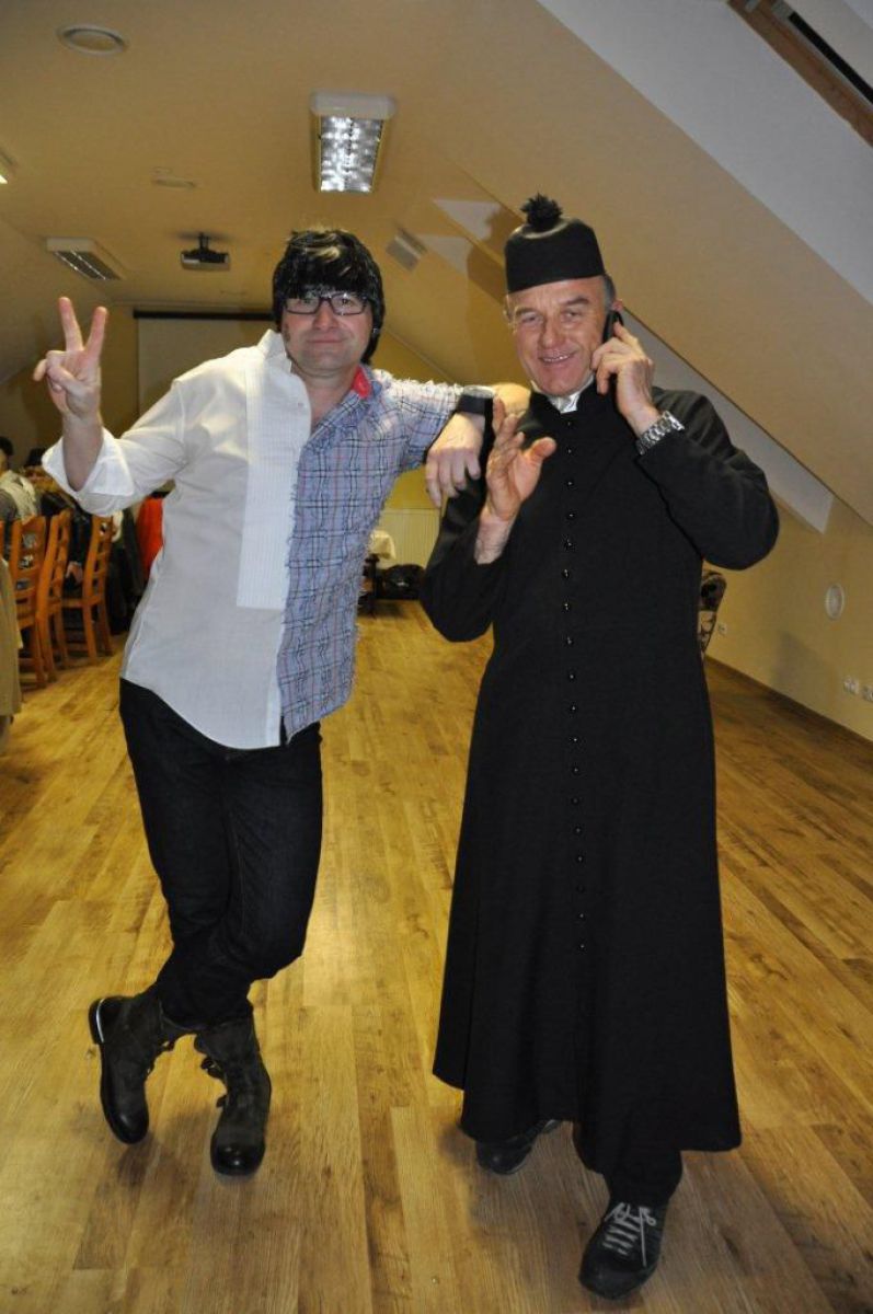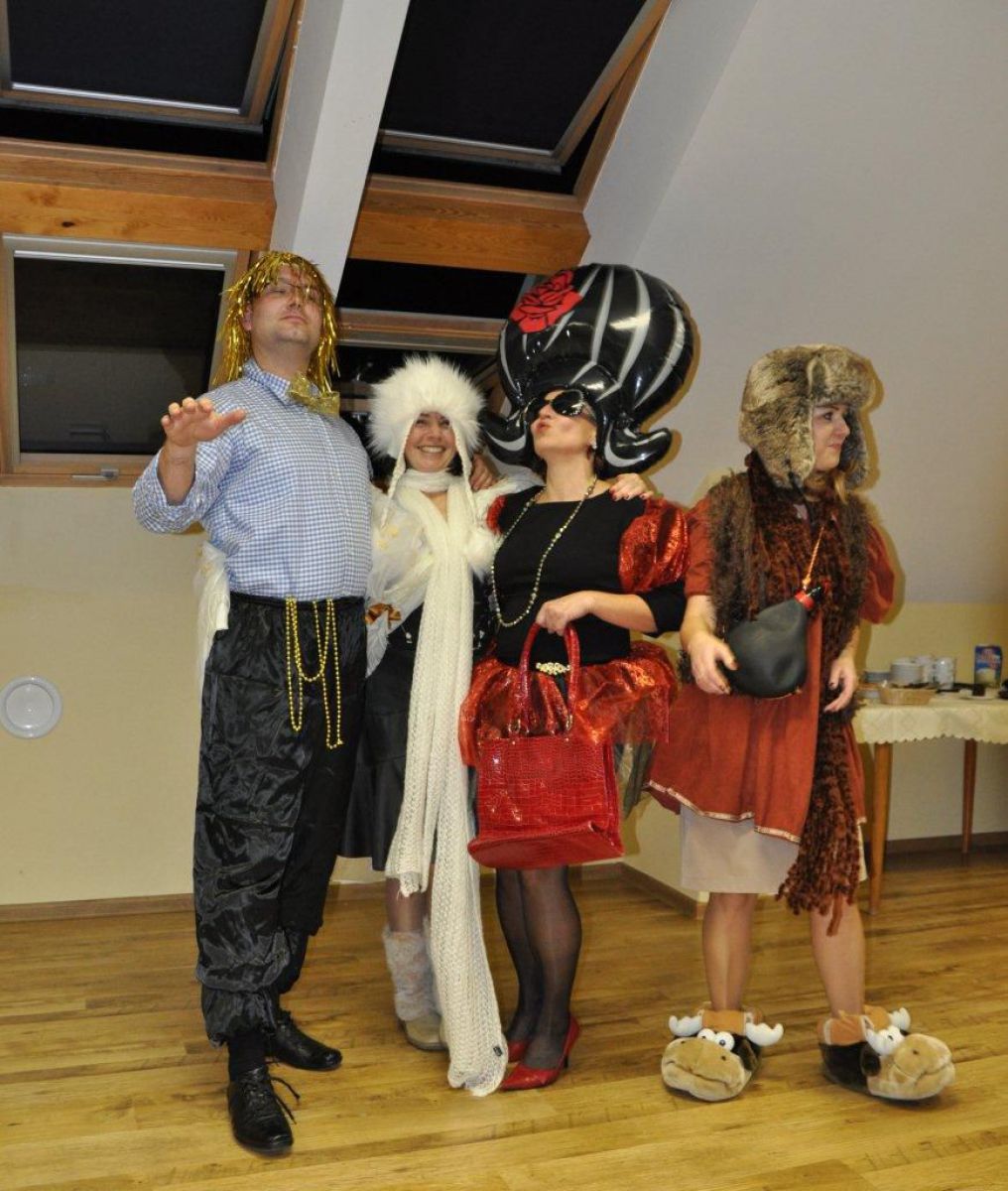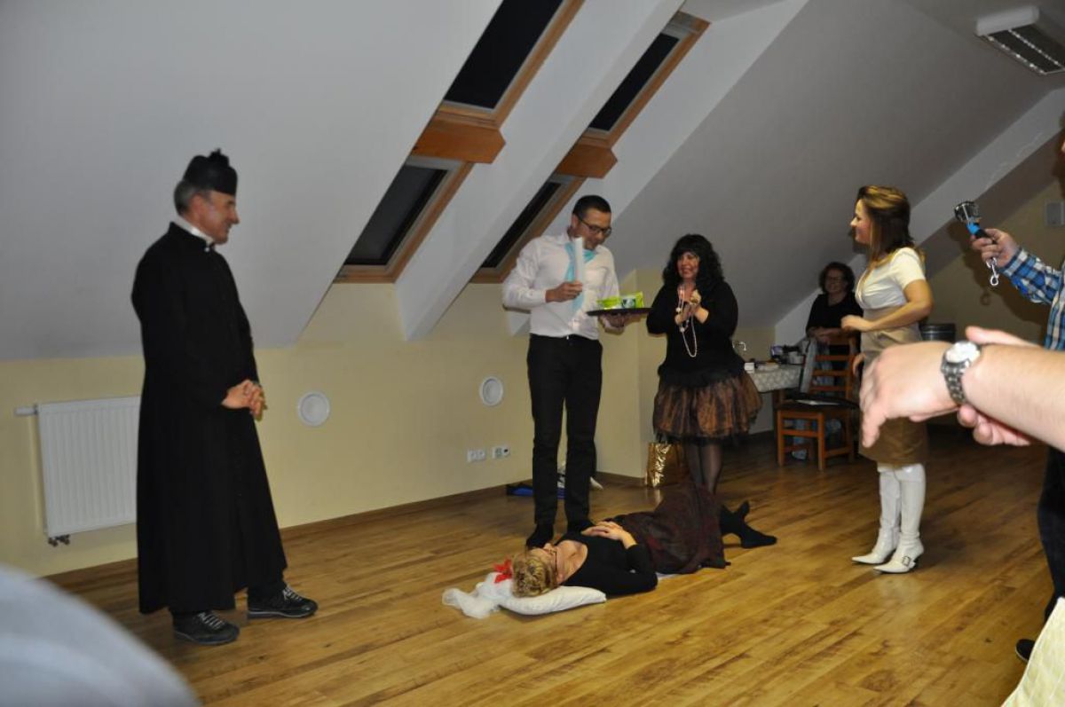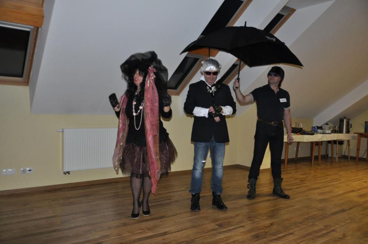 Ciemny zimny wieczór listopad się kończy. Deszcz zacina mokry, wiatr nad Kłodnem krąży. W tej smutnej scenerii wesoła gromada u Krefty w ośrodku za stołami siada. Wszyscy się przebrali diabełki i rogi, tu tańczy gej z panną tam kreator mody. Taki chłop z krwi kości zmieniony w dziewczynę, a inny bez włosów czarną ma czuprynę. Projektantka Asia vel Małgosia Pufa pomysły ma świetne i kostiumów kupa, więc wesołość wielką budzi dziś na sali gdy ślub Pauli z Wnorkiem na nowo przedstawi. Męczą się więc młodzi na oczach publiki, próbując rozwiązać życiowe chochliki. Bo przecież ślub Nurka to jest ważna sprawa a tutaj wesoło można go przedstawiać. Gdy ślub dobiegł końca, Asia vel Małgosia zaraz pokaz mody wesoły ogłasza, więc odzież sportowa do grania biegania a potem zimowa i taka do spania. Modelki, modele, wybrane z publiki robiły furorę, te pozy uniki, te piękne kreacje ten kolor i szpan, publiczność szalała, a to Asi plan. Więc bardzo dziękuję wszystkim co przybyli i fajnie do rana z humorem bawili a Asi Skowrońskiej kłaniam się dziś nisko dziękując za wspaniałe, śmieszne widowisko.