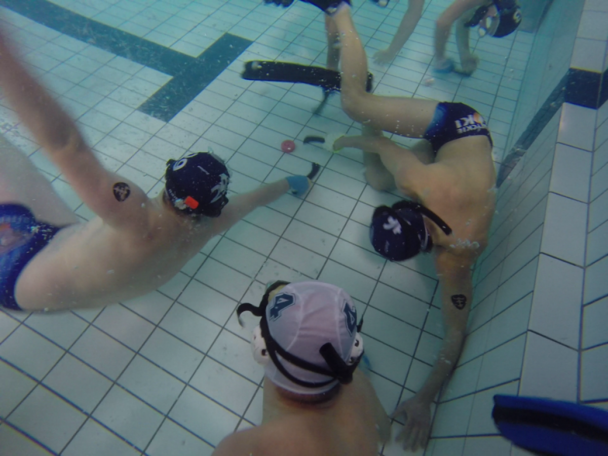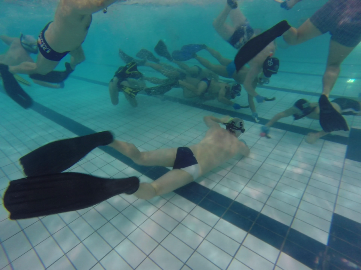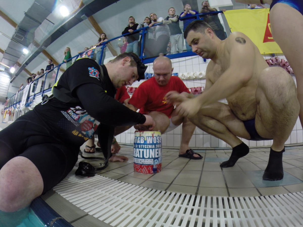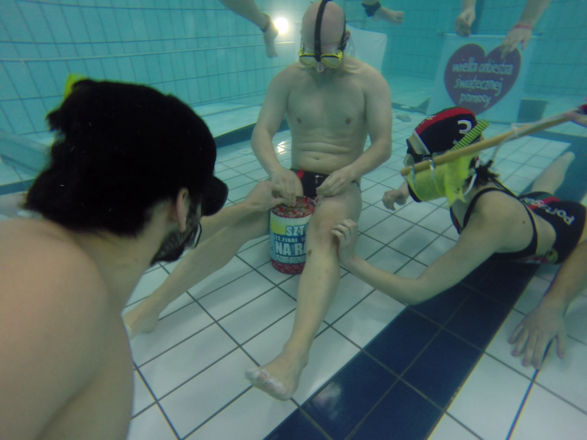 Zimna ciemna noc sobotnia 11 styczeń mija, a pod wodą na basenie sporo osób się uwija.