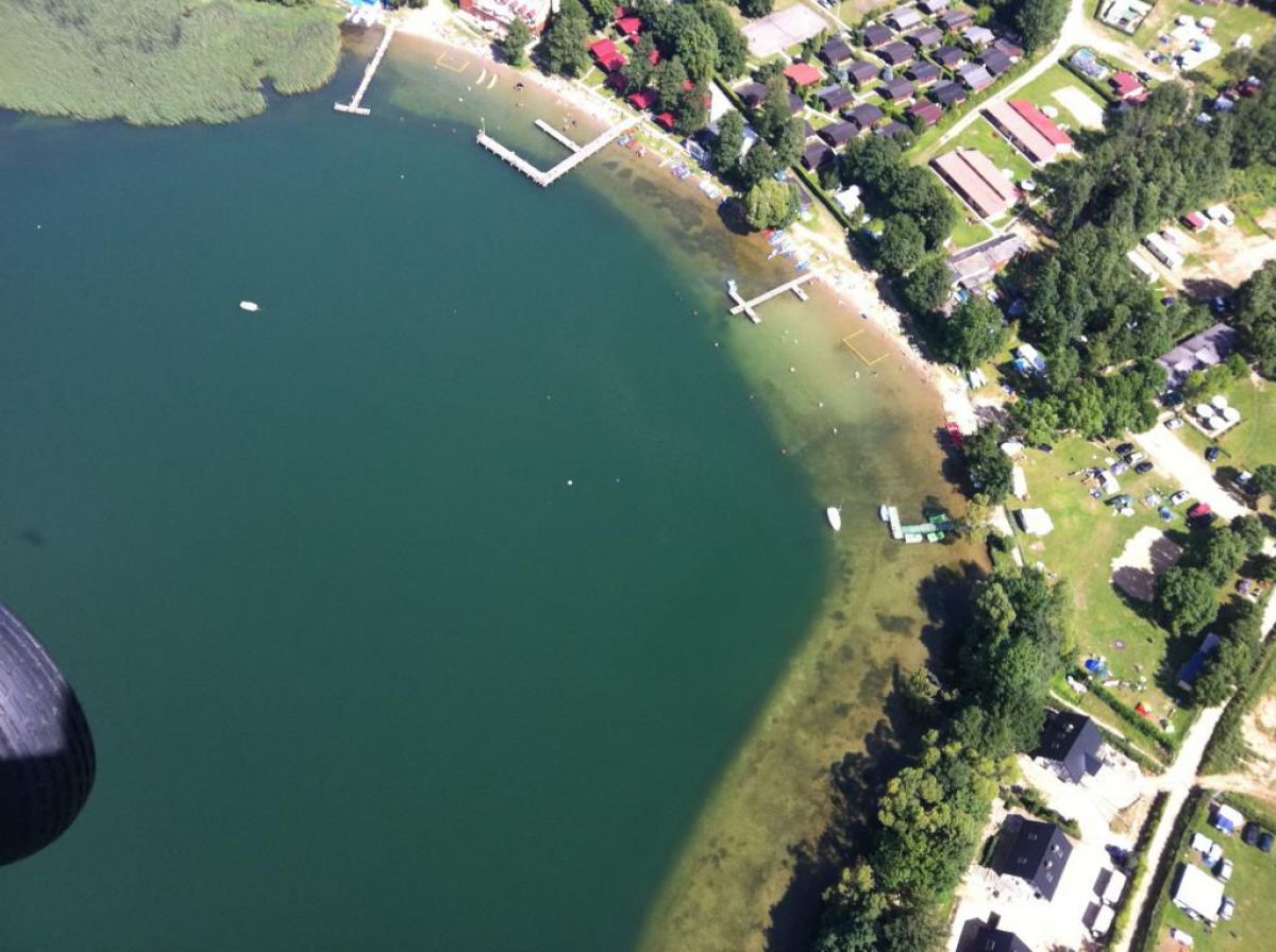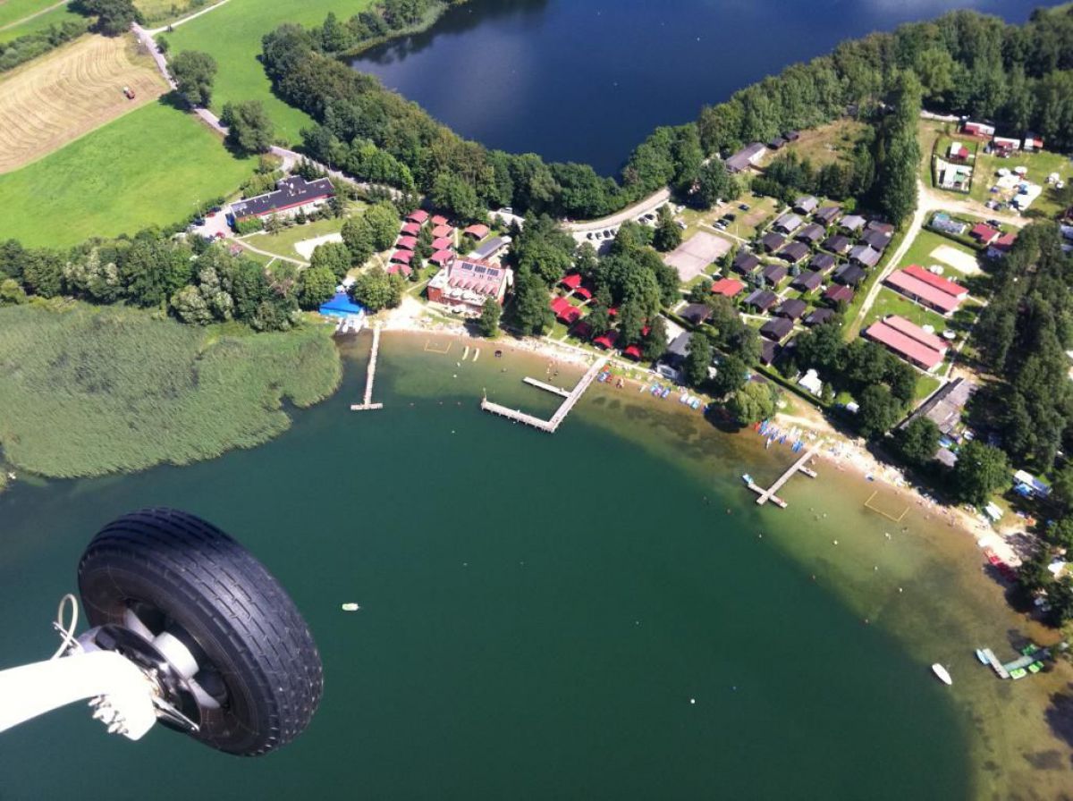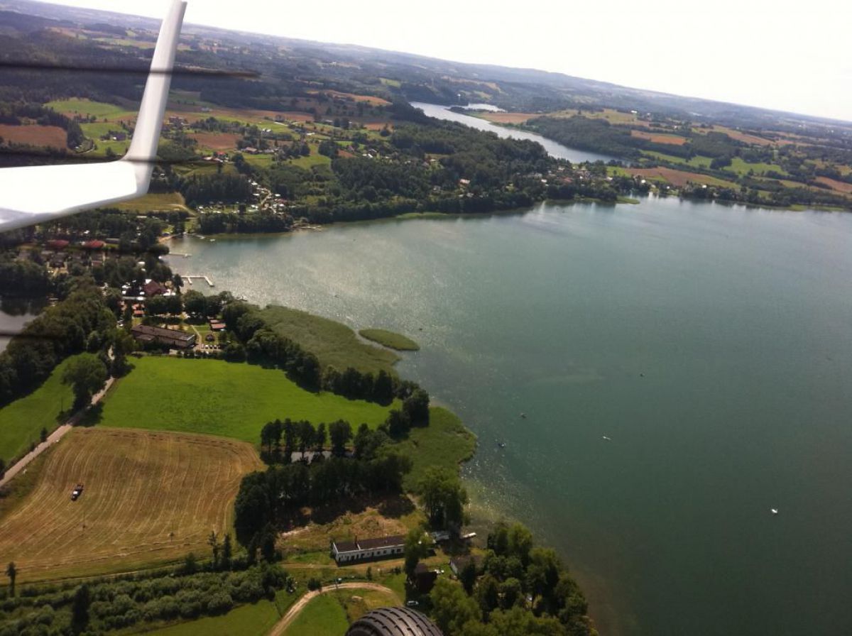 Podczas lotu pilot zafundował mi dodatkową przyjemność i zabrał mnie nad jezioro Kłodno. Poniżej znajdziecie kilka zdjęć z lot ptaka nad Kłodnem z tej perspektywy jeszcze naszej bazy nurkowej nie oglądałem :-)