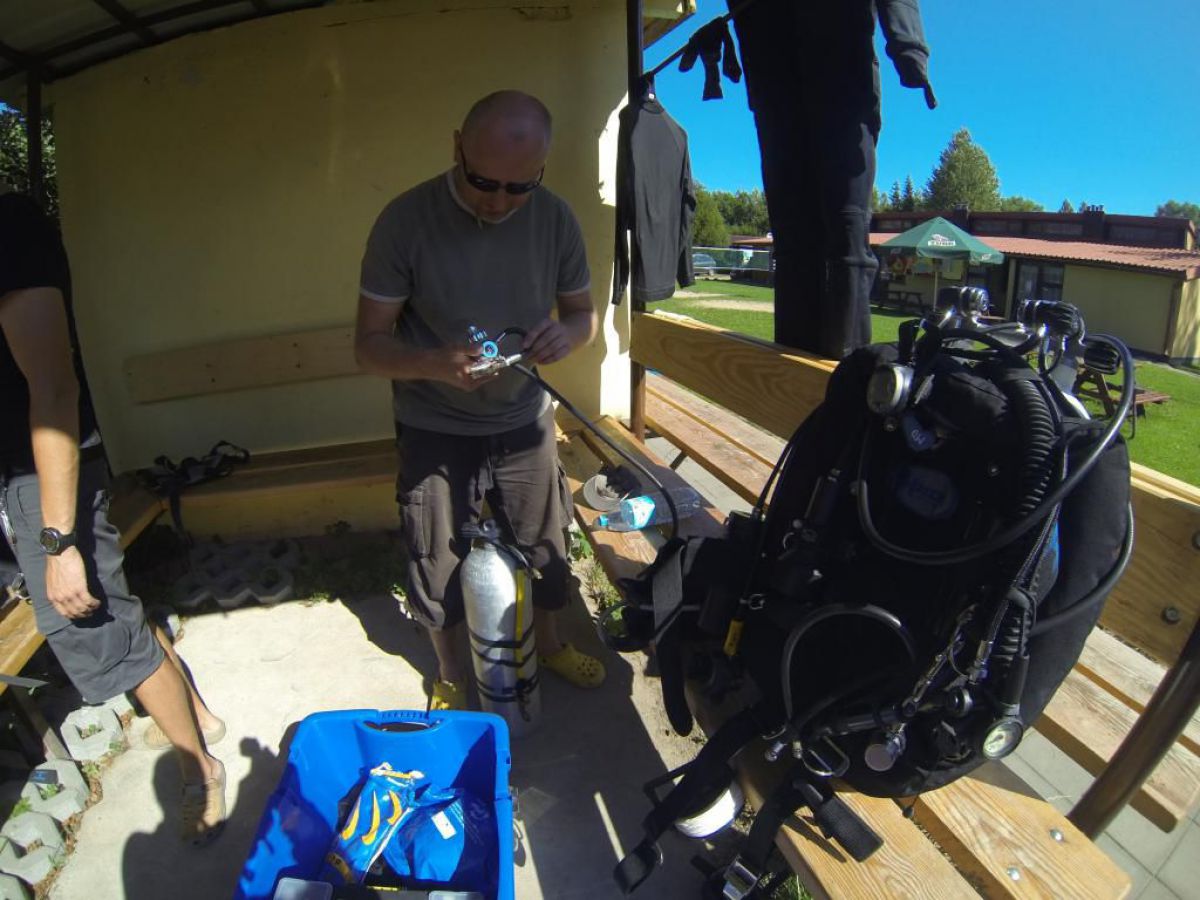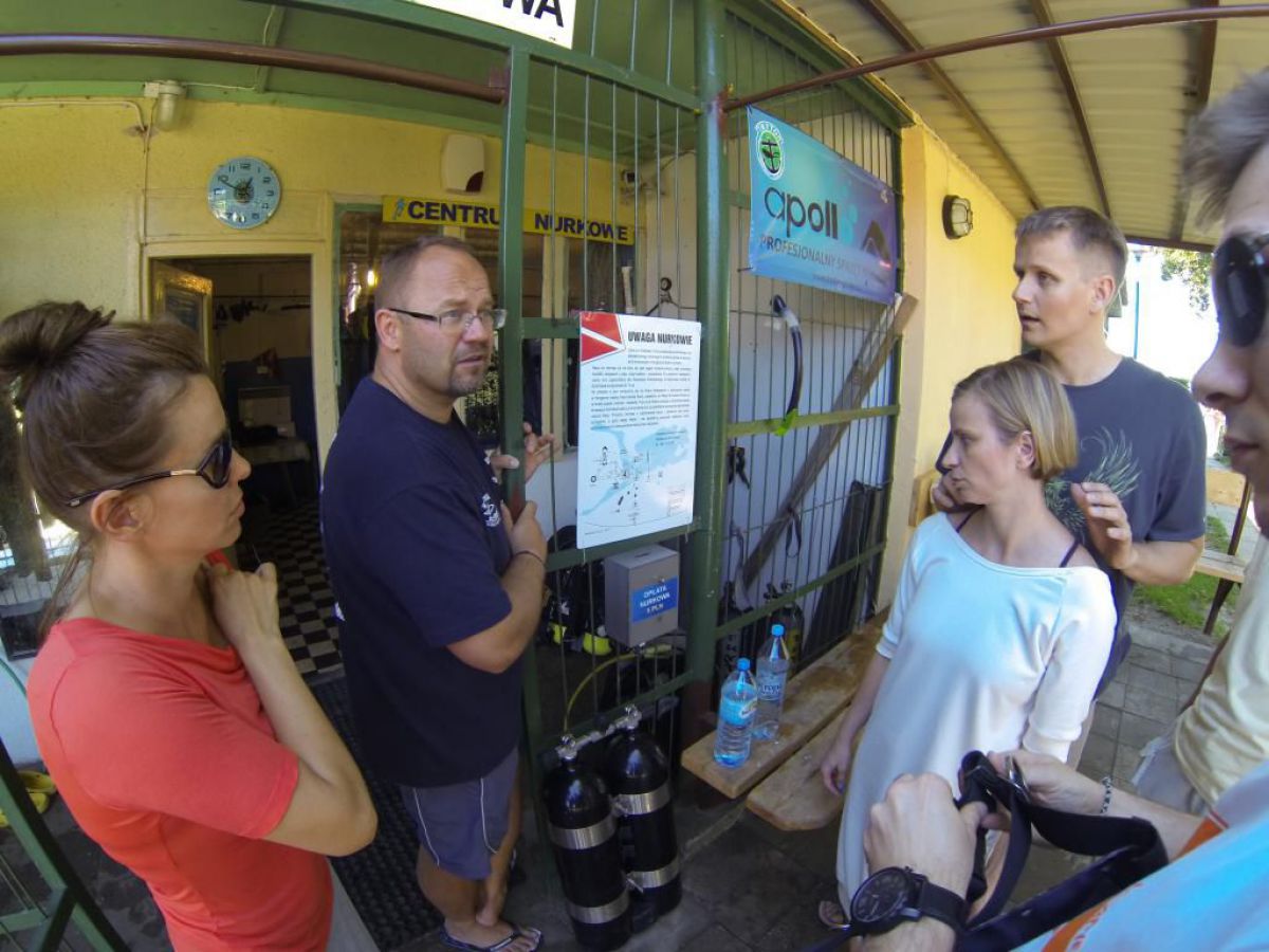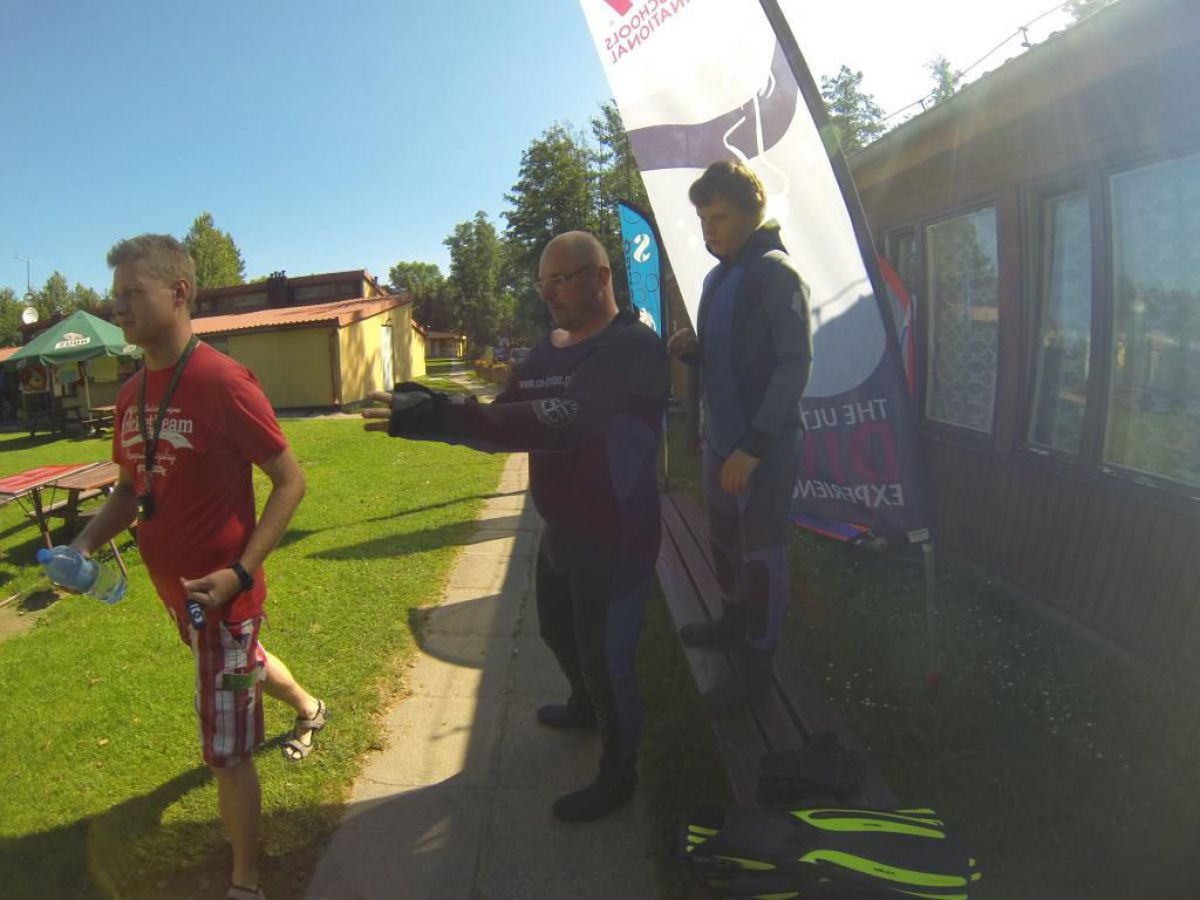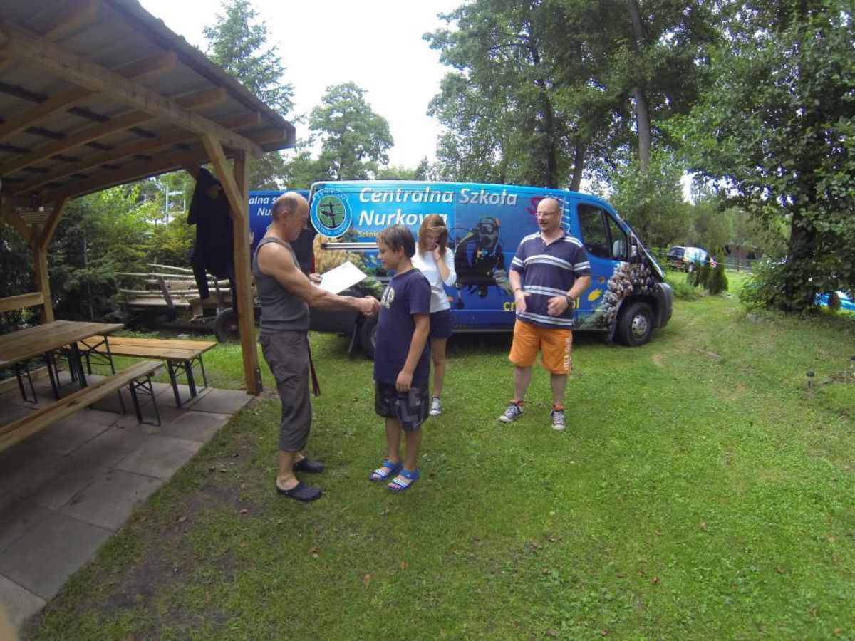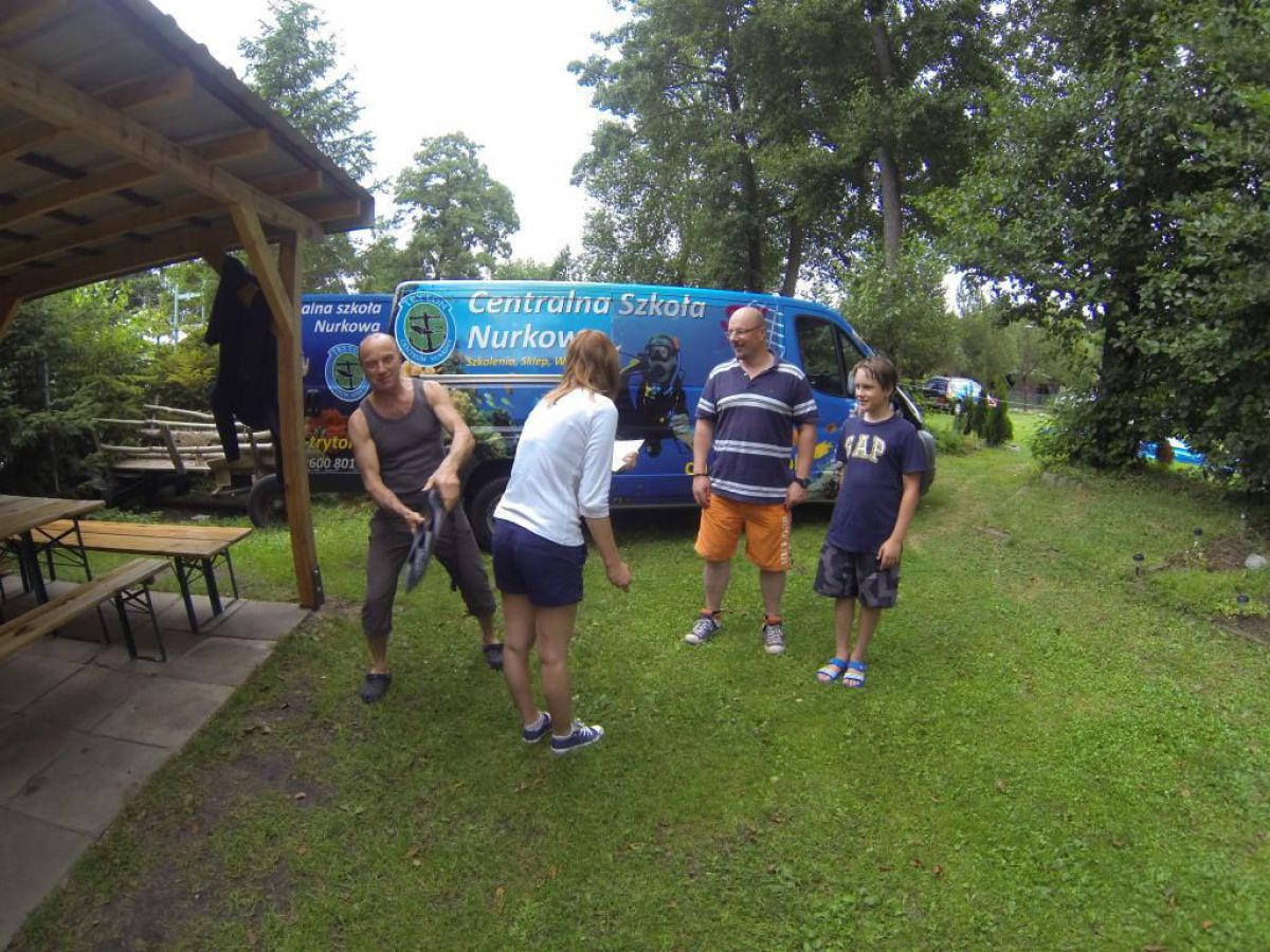 Niesamowite jak ten czas leci niedawno objadałem się świeżymi truskawkami , a teraz zostały mi tylko maliny i czarne jagody. A niedługo jesień i wysyp jesiennych owoców potem babie lato i żółty jesienny liść. Coś mnie jakaś nostalgia napadła, tęsknota za tym co było, a przecież mamy połowę lata i Egipskie upały. Więc żeby się trochę schłodzić to wszyscy co mogą nad wodę, a Ci co potrafią to nawet pod wodę. Więc i ja zadomowiłem się w ten weekend w Chmielnie nad naszym ulubionym Kłodnem. I w tych lazurowych wodach przebywam całymi godzinami, no może trochę przesadziłem z tym lazurem, ale pomarzyć zawsze można. Zresztą dla mnie i nie jestem w tym odosobniony, nie musi być taki kryształ, grunt że jest gdzie się zanurzyć. I Ci co nie nurkują mogą tylko pozazdrościć, tej ciszy i spokoju, Gdy tylko znikasz bracie pod wodą i zostawiasz tam u góry kłopoty dnia codziennego, gwar hałas gdy otula Cię cisza przerywana własnym oddechem. Wtedy Twoje ciało przykute grawitacją do matki ziemi, tu pod wodą szybuje jak by nie istniało prawo ciążenia. Gdy zawiśniemy bez ruchu nad dnem, lub w klatkach toru podwodnego, gdy otoczą nas zewsząd stada ryb, wtedy czujemy się tak, jak byśmy byli częścią tego systemu. No trochę jednak popłynąłem ale do brzegu jak mawia Krzysiek, a więc na brzegu tłumy ludzi spragnionych ochłody. A w Kaszubskiej Bazie tłumy nurków spragnionych podwodnej przygody. Sporo przyjezdnych z Polski i krajów ościennych, trafili się nawet Francuzi i liczna grupa naszych rodzimych kursantów. Zresztą popatrzcie na naszą galerię, zdjęcia trochę powyginane ale to nie pijany fotograf, tylko szerokokątna kamerka GoPro.