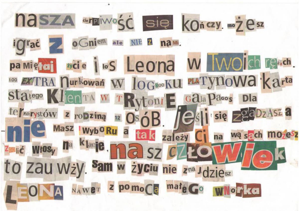 Po dwóch dniach przyszedł do nas pierwszy list z pogróżkami. Wtedy wiedzieliśmy że nie prąd ani rybak wyciągną Leona! Został on po prostu porwany!!!