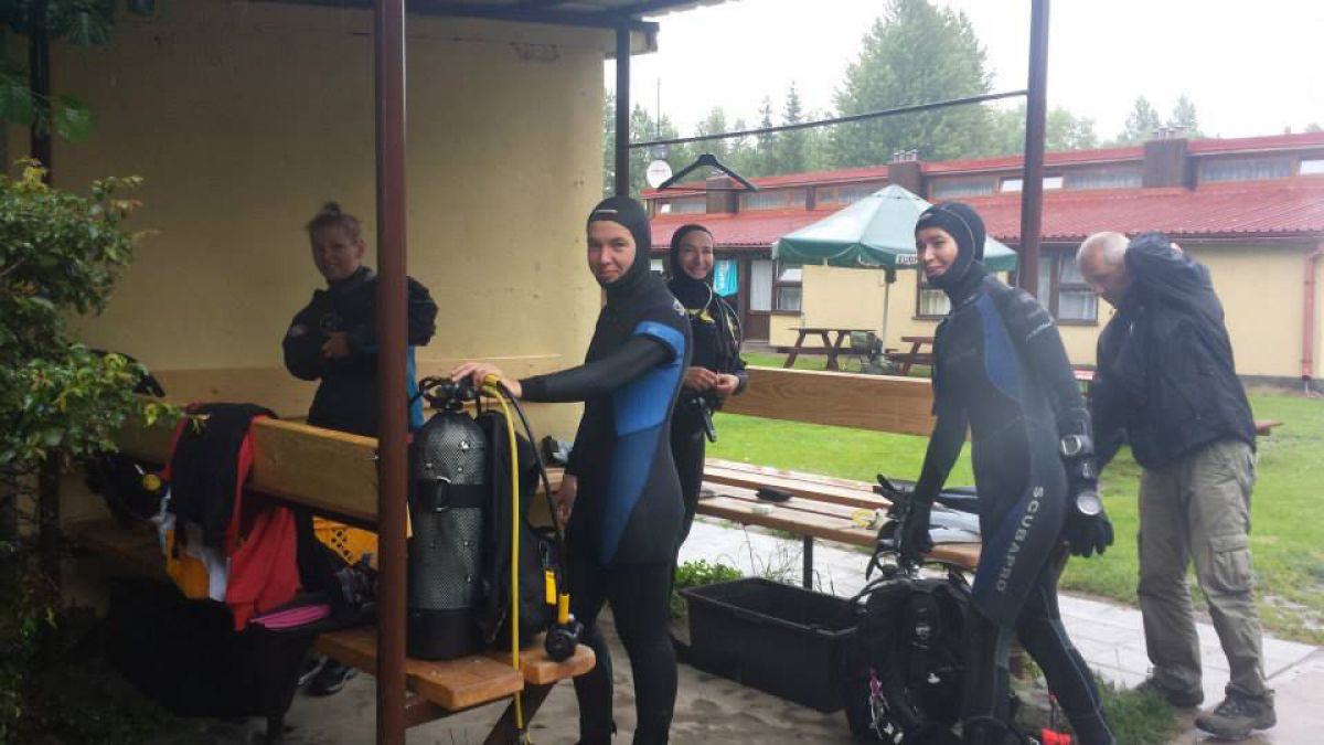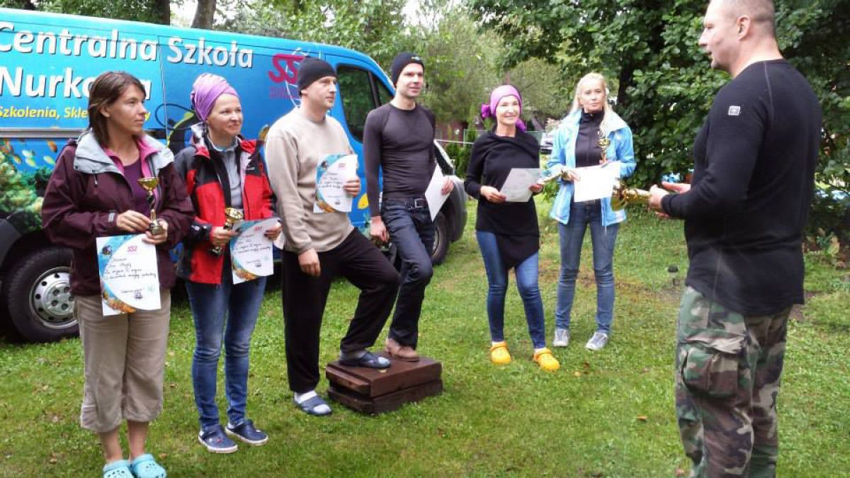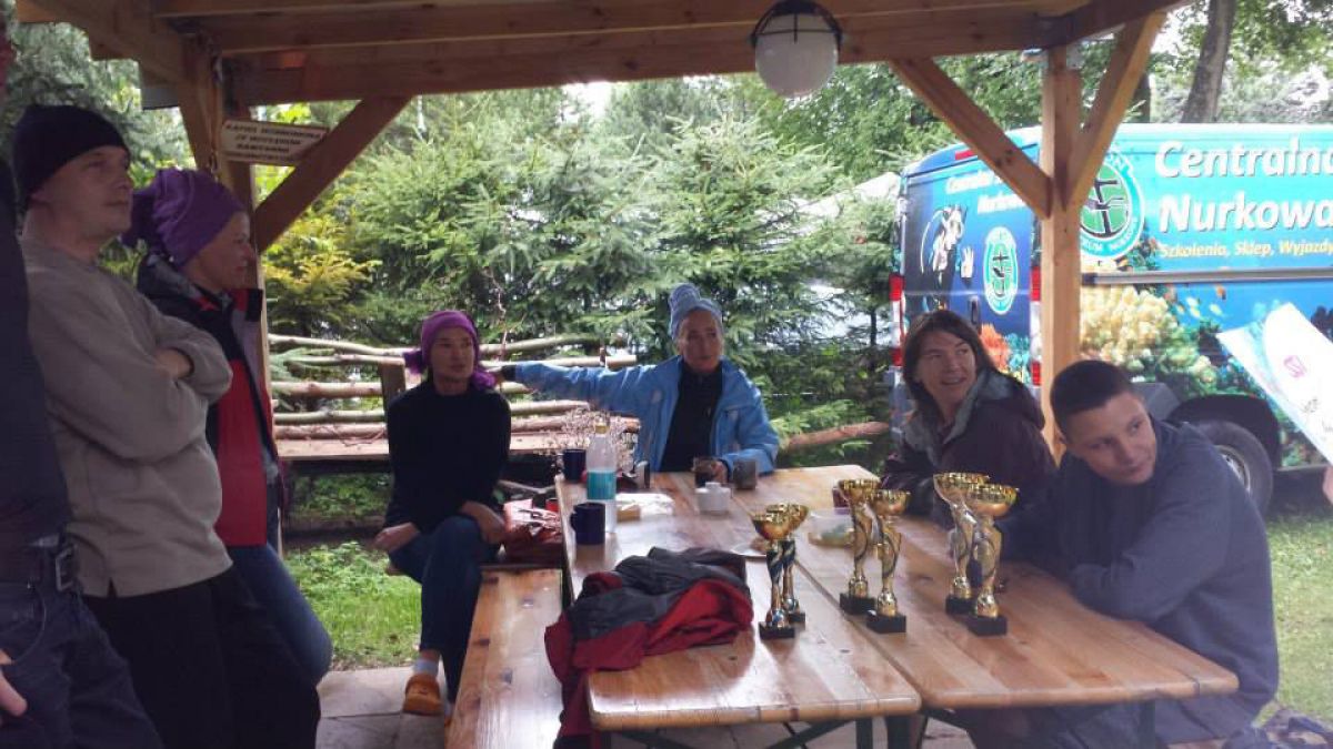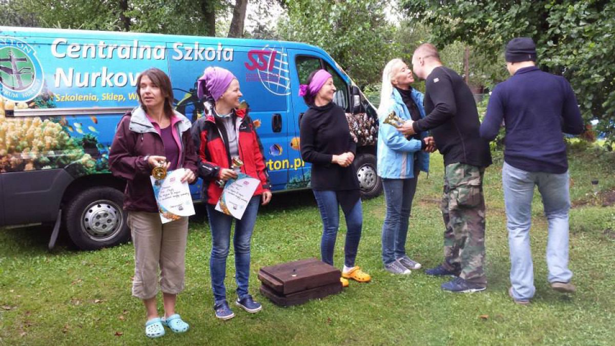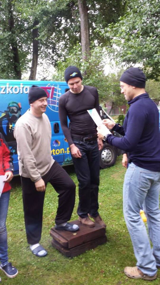Mimo mało przyjemnej pogody udało się nam zorganizować zawody z Nawigacji Podwodnej. Konkurencja nie była łatwa. Kłopoty zaczynały się od omówienia kiedy to z nieba leciały spore ilości deszczu utrudniając przygotowanie sprzętu i planu zawodów. Kolejnym utrudnieniem była dość słaba widoczność. Mimo to udało się niektórym obsadzić pudła podium z całkiem niezłym wynikiem.