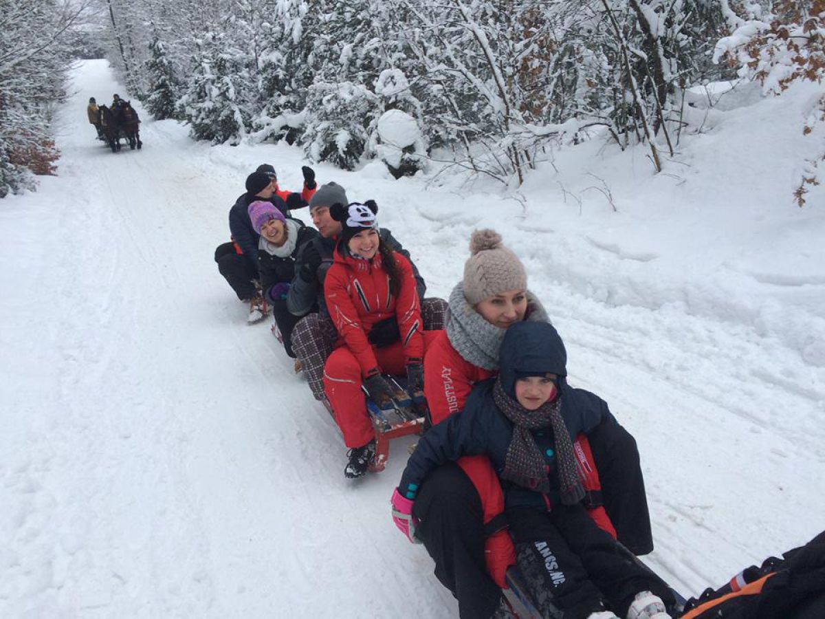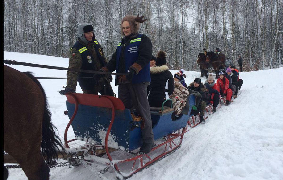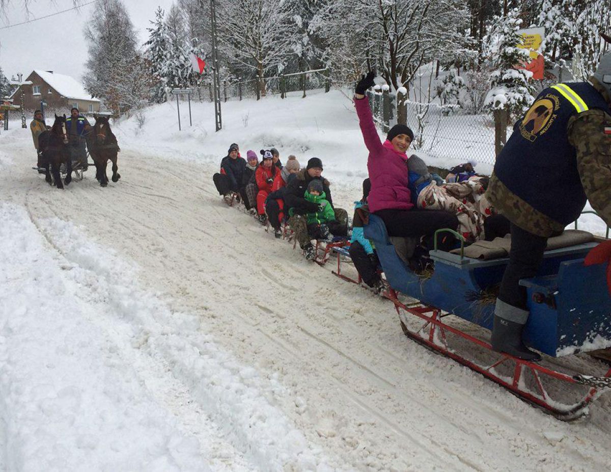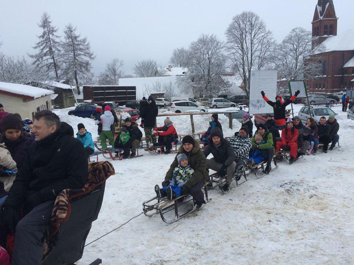 Kulig w wersji maks ponad 45 osób w jednym miejscu. Dobrze że konie były wyspane i dały radę pociągnąć wszystkich.