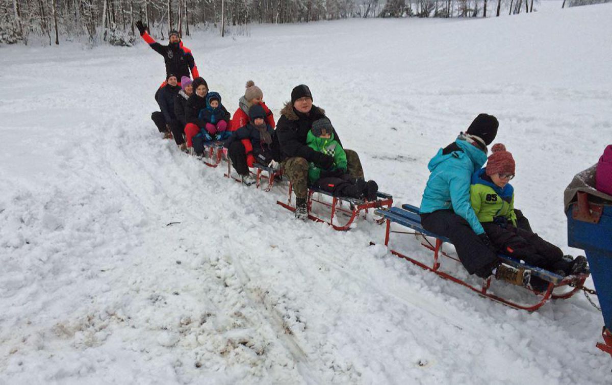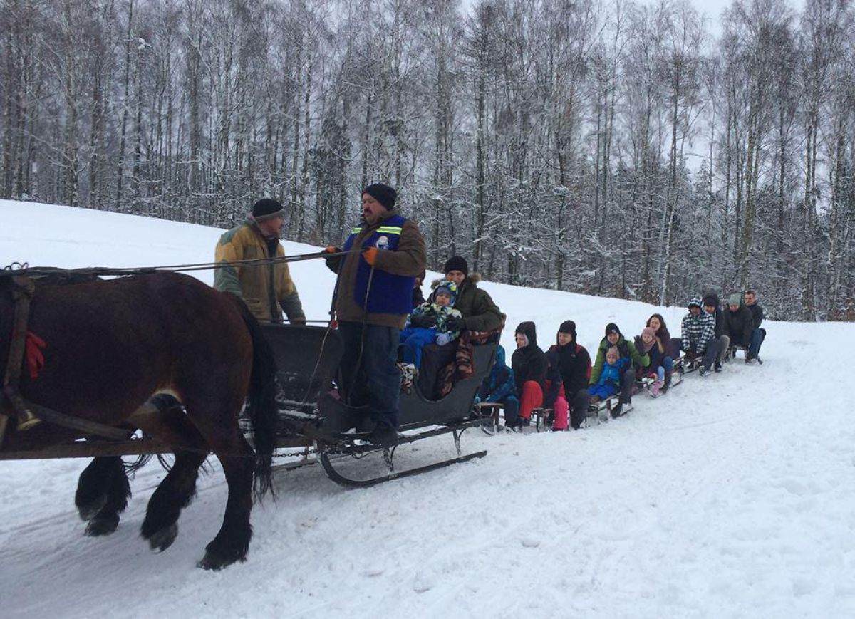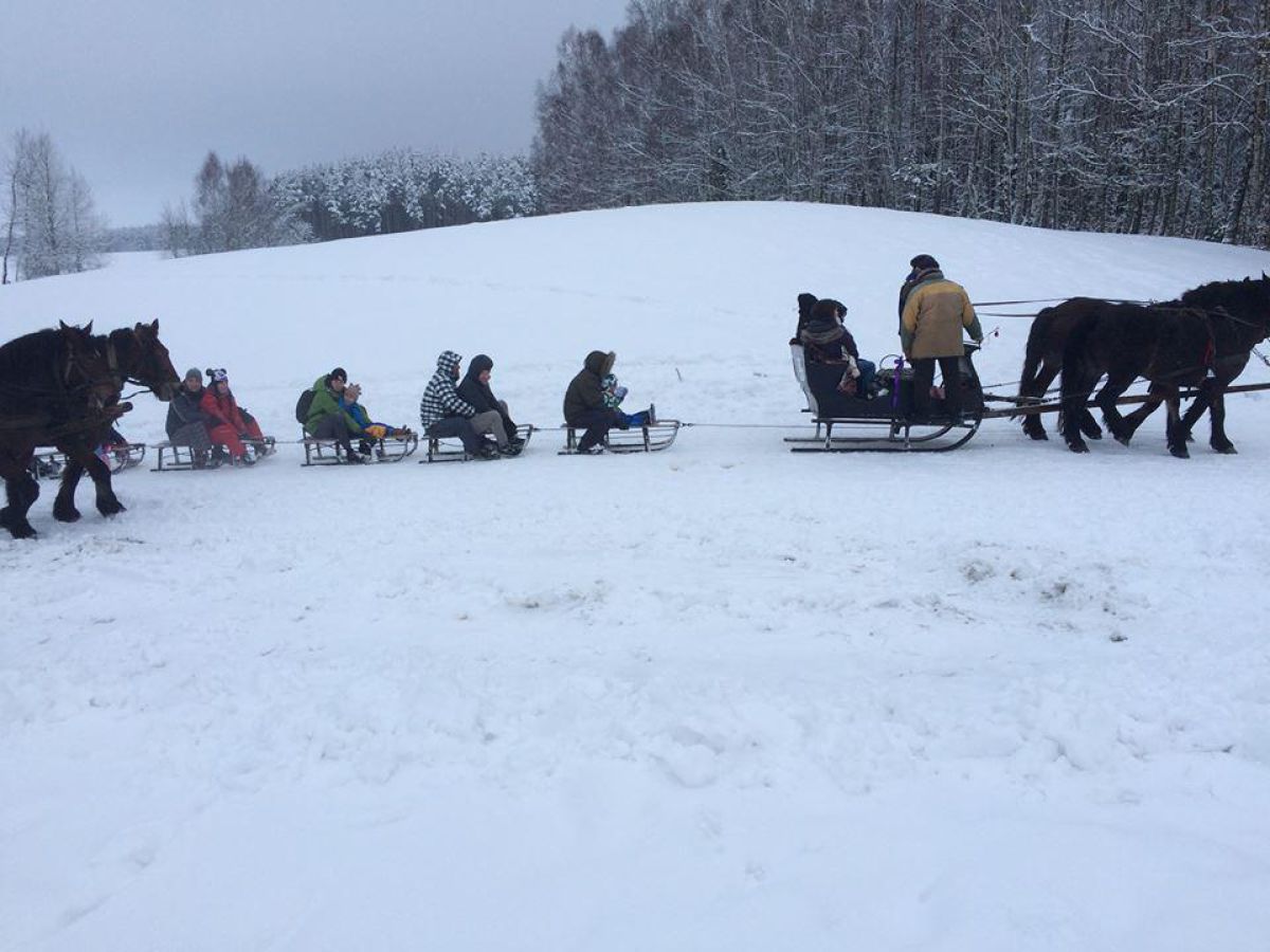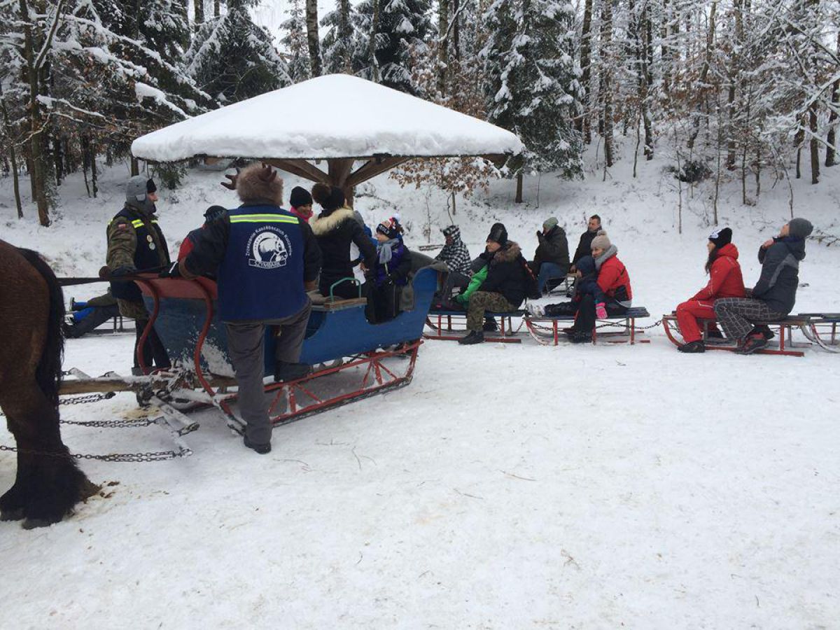 Kulig w wersji maks ponad 45 osób w jednym miejscu. Dobrze że konie były wyspane i dały radę pociągnąć wszystkich.