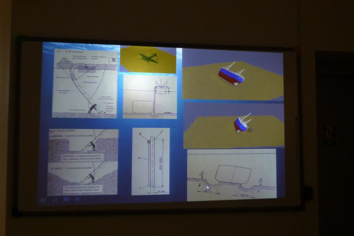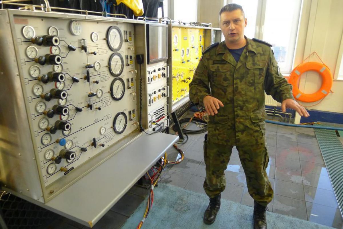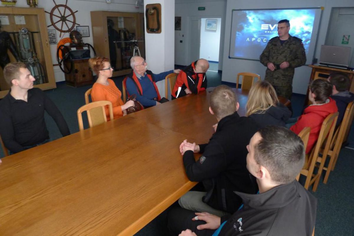 Pan Kmdr ppor. Robert Szymaniuk zaprezentował nam jak działa ośrodek oraz przeprowadził dla nas ciekawą prezentację poświęconą wydobywaniu z dna morza dużych obiektów.