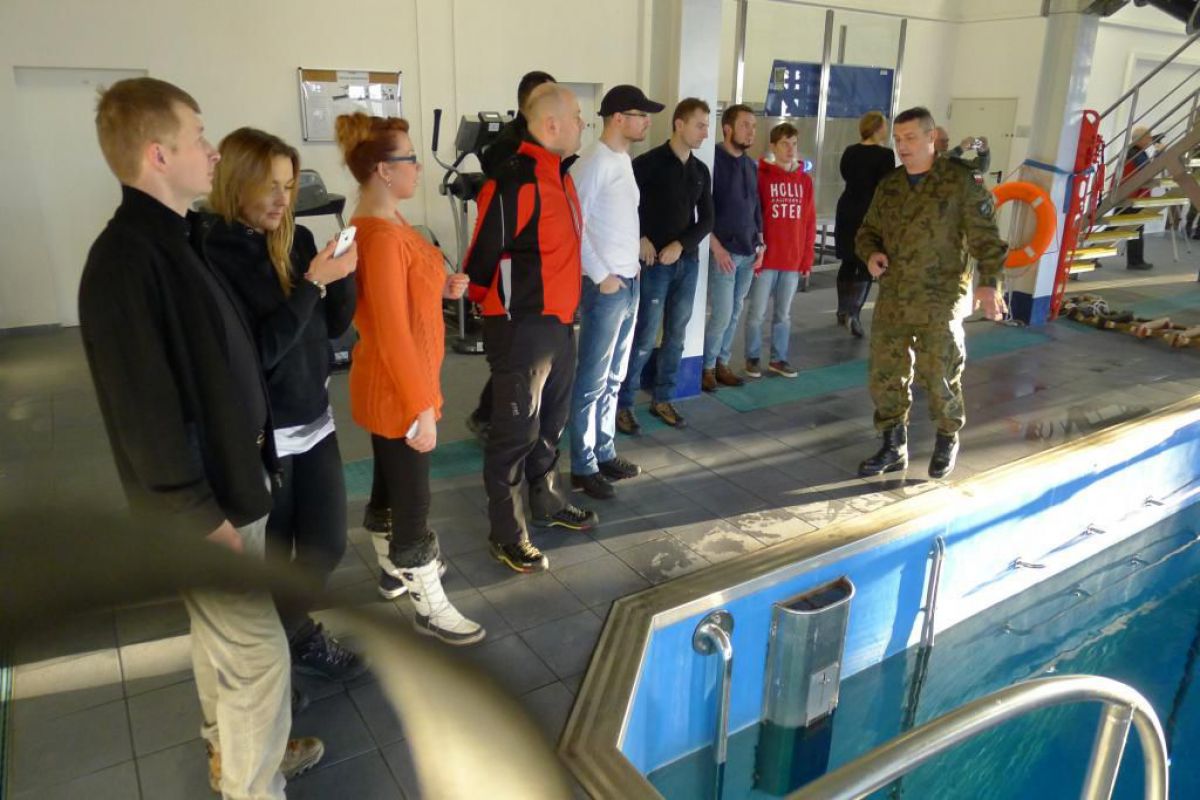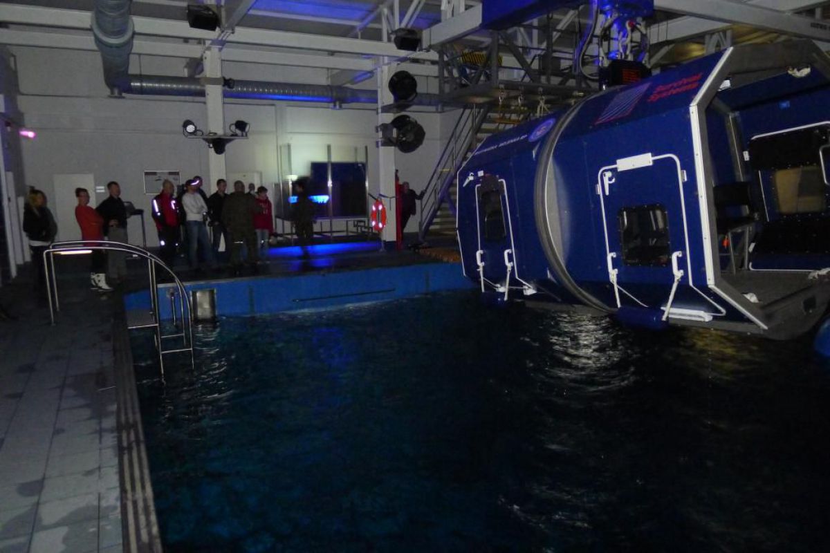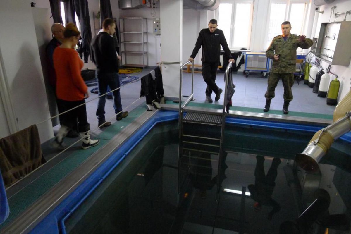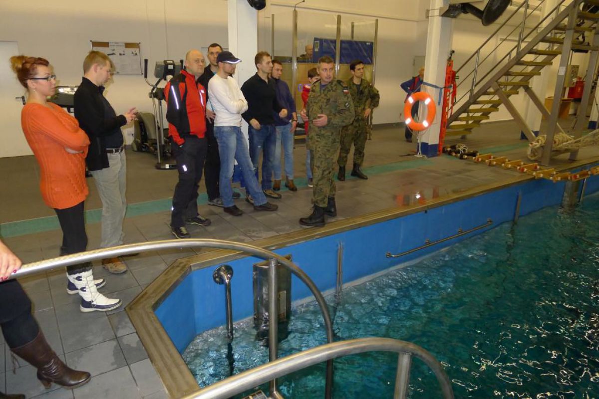 Wczorajsza prezentacja w Ośrodku Szkolenia Nurków i Płetwonurków Wojska Polskiego zrobiła na wszystkich olbrzymie wrażenie. Dzięki uprzejmości MW uczestniczyliśmy w części pokazu symulacji wywrotki kabiny śmigłowca z procedurą ratunkową, oraz w wycieczce kompleksu głębokiego basenu z zapleczem.
