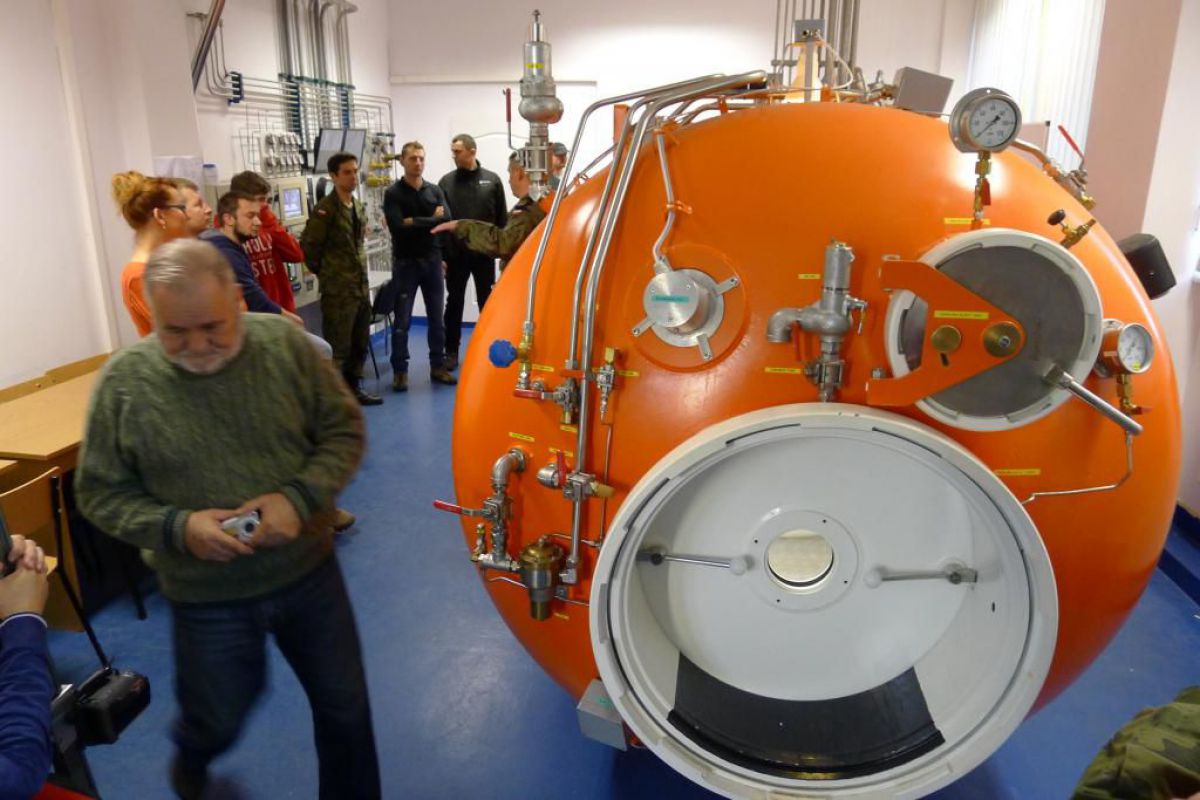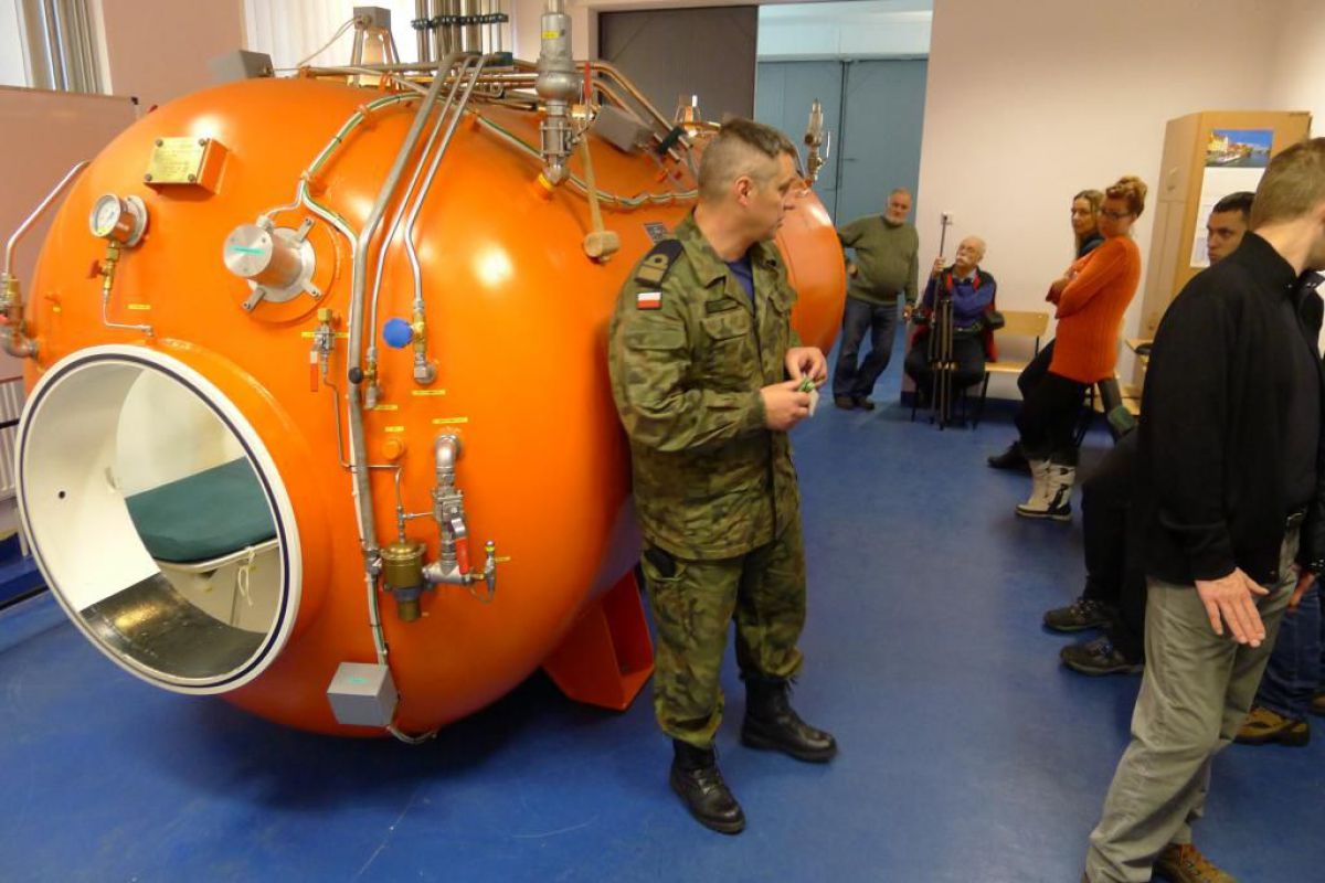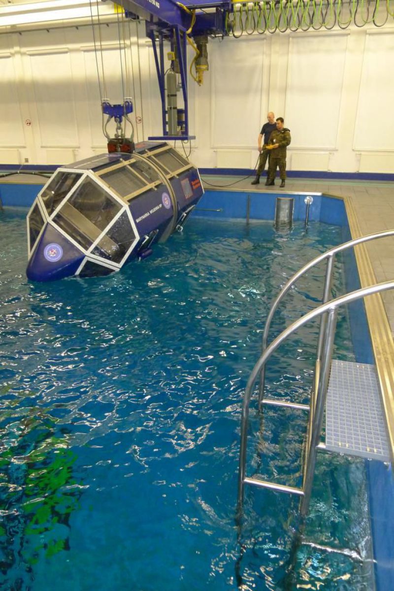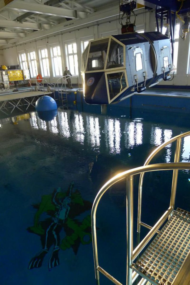 Wczorajsza prezentacja w Ośrodku Szkolenia Nurków i Płetwonurków Wojska Polskiego zrobiła na wszystkich olbrzymie wrażenie. Dzięki uprzejmości MW uczestniczyliśmy w części pokazu symulacji wywrotki kabiny śmigłowca z procedurą ratunkową, oraz w wycieczce kompleksu głębokiego basenu z zapleczem.