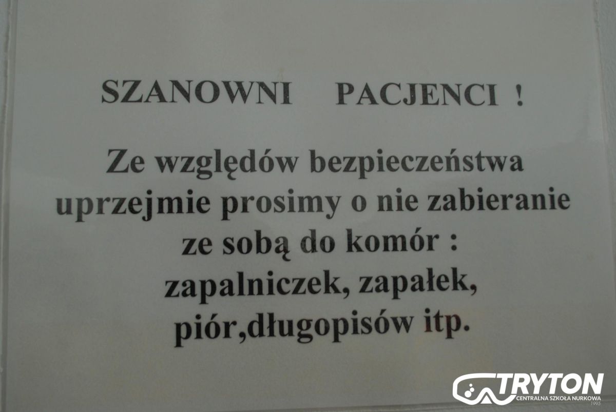 Co jakiś czas uda się nam uzyskać pozwolenie na wejście do Kliniki Medycyny Hiperbarycznej i Ratownictwa Morskiego. Dzięki uprzejmości personelu szpitala podglądamy w jaki sposób leczeni są nurkowie oraz inni pacjenci. Za miesiąc kolejna wycieczka. Nie może cię zabraknąć !!