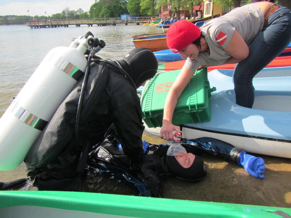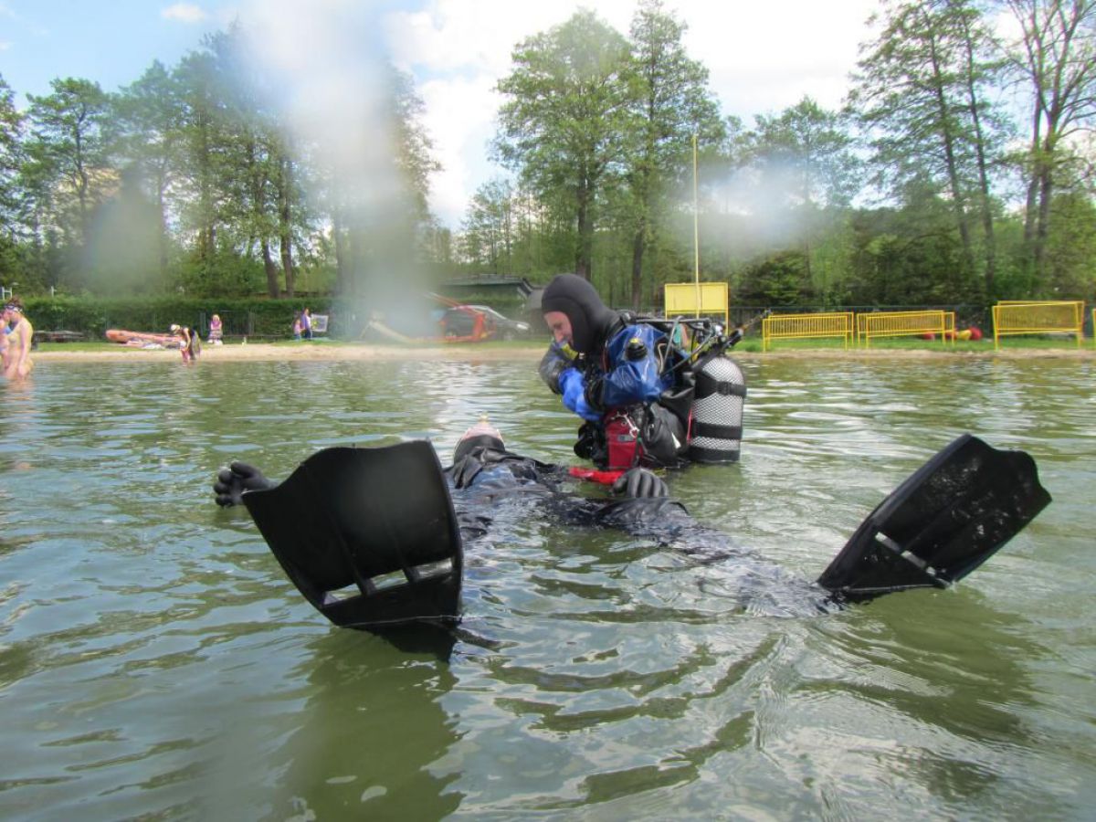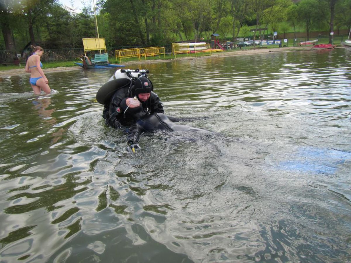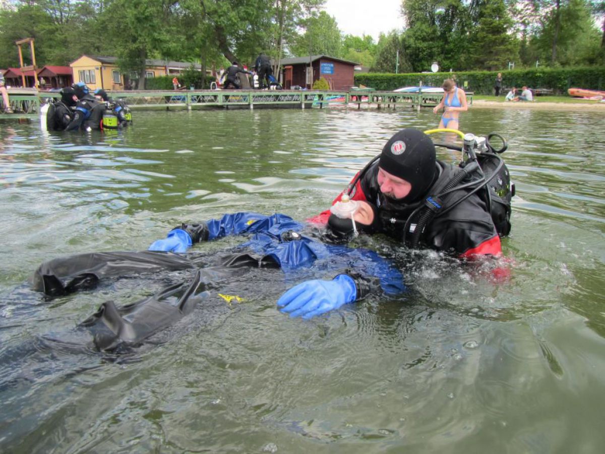 Mimo że woda jeszcze chłodnawa udało się zorganizować kurs Ratowniczy. Jak widać na załączonych obrazkach udało się kolejny raz uratować Waldka :)