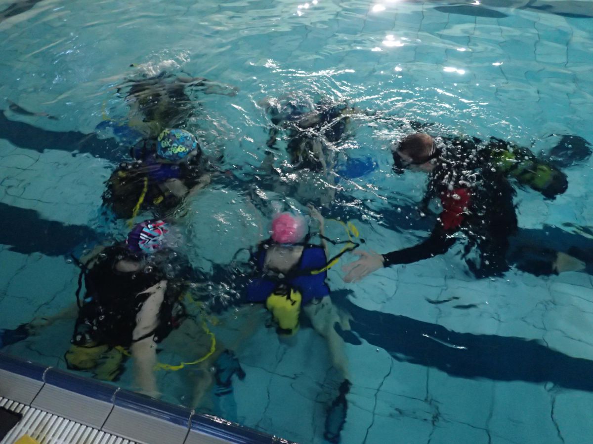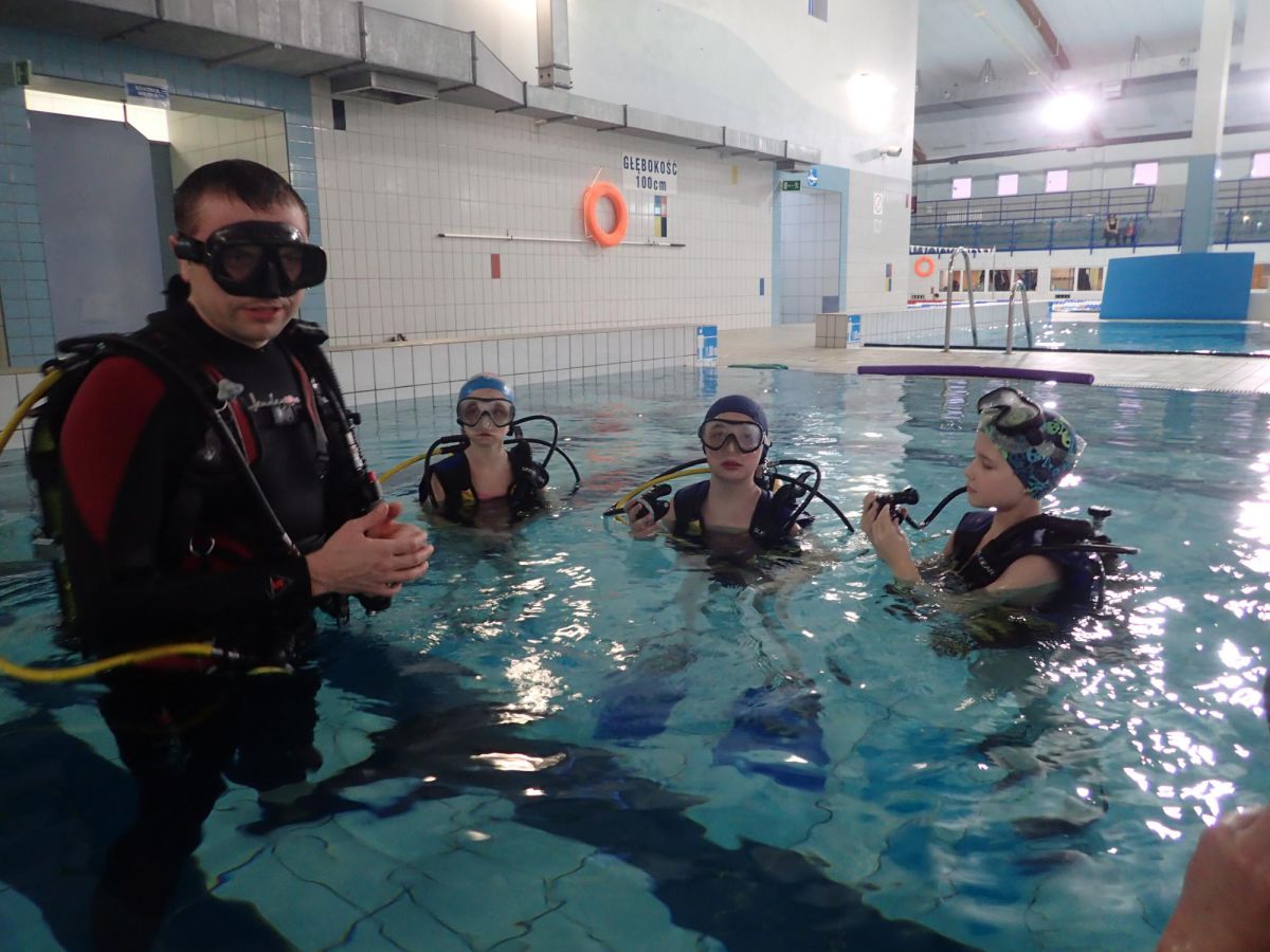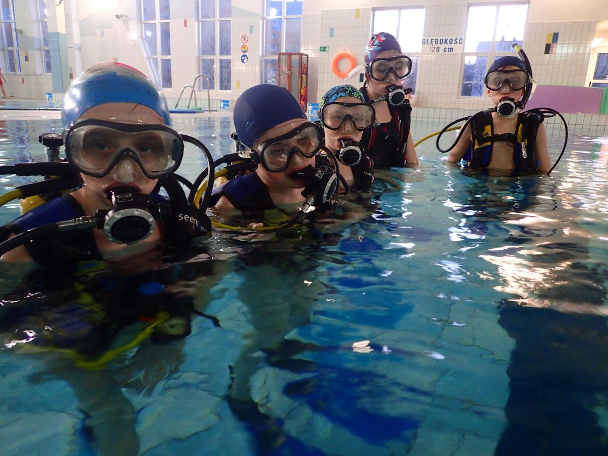 Praca z dziećmi to świetna zabawa. Nurkowanie z dziećmi na basenie Mosir na Chełmie jest jednym z lepszych jakie do tej pory robiliśmy. Bardzo ciepła woda i głębokość 1m sprawia że nurkowanie jest bardzo bezpieczne a my jako instruktorzy mamy wszystkich pod kontrolą
