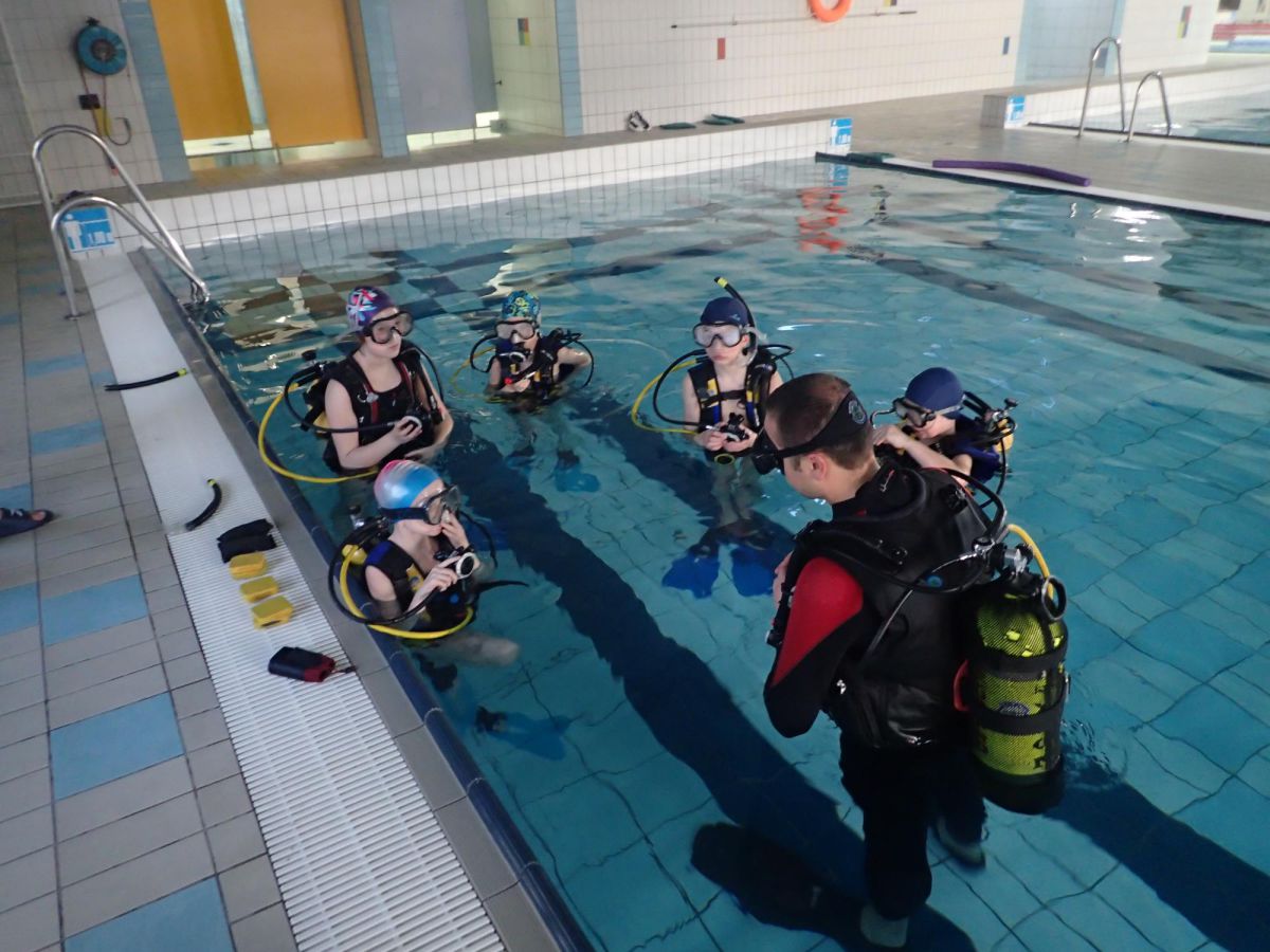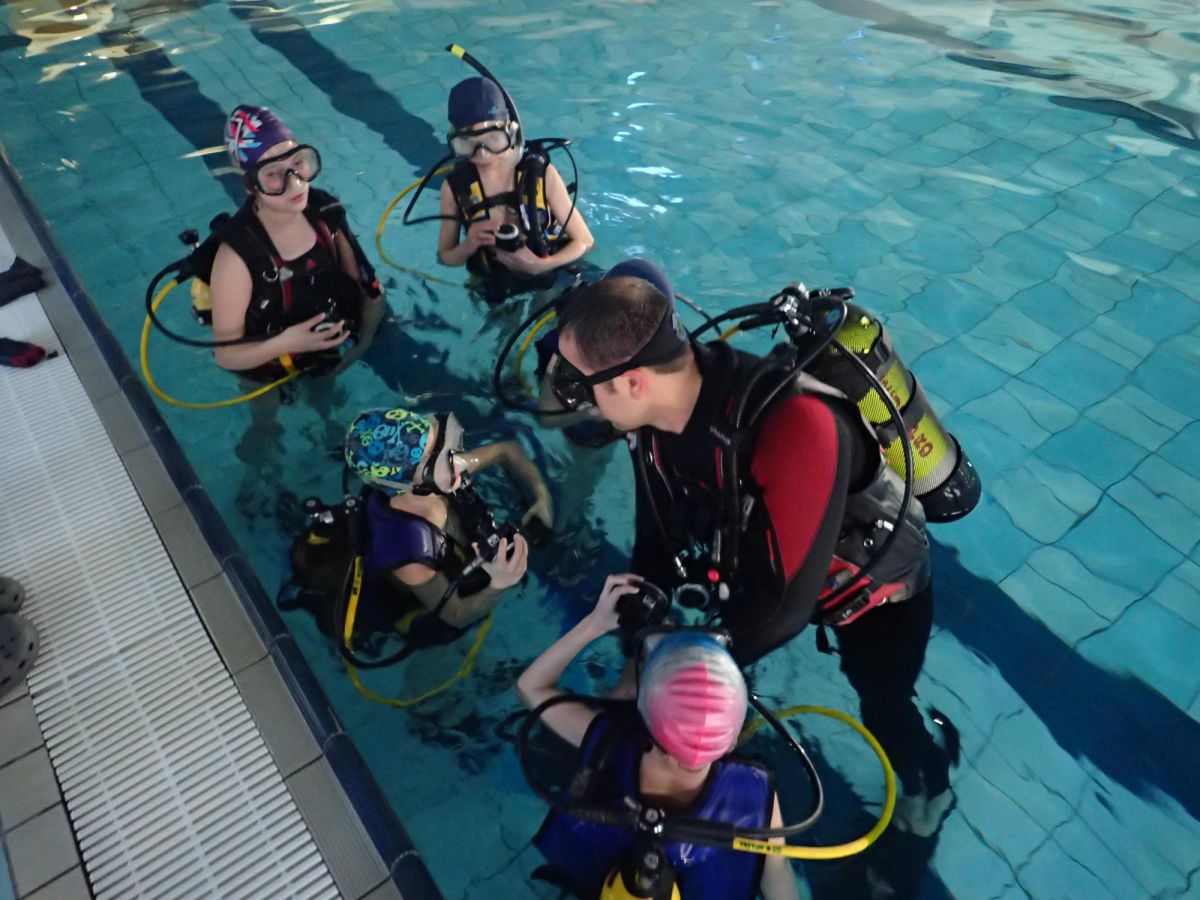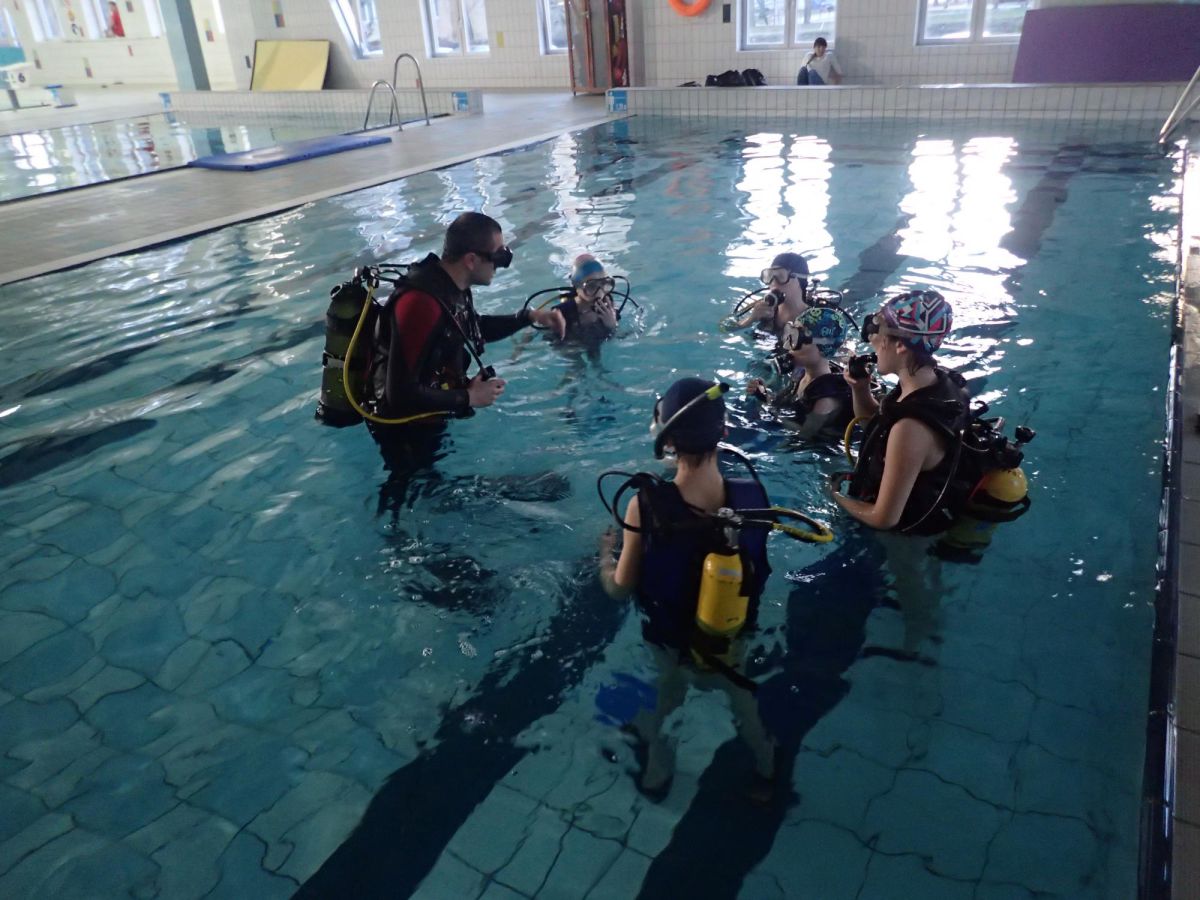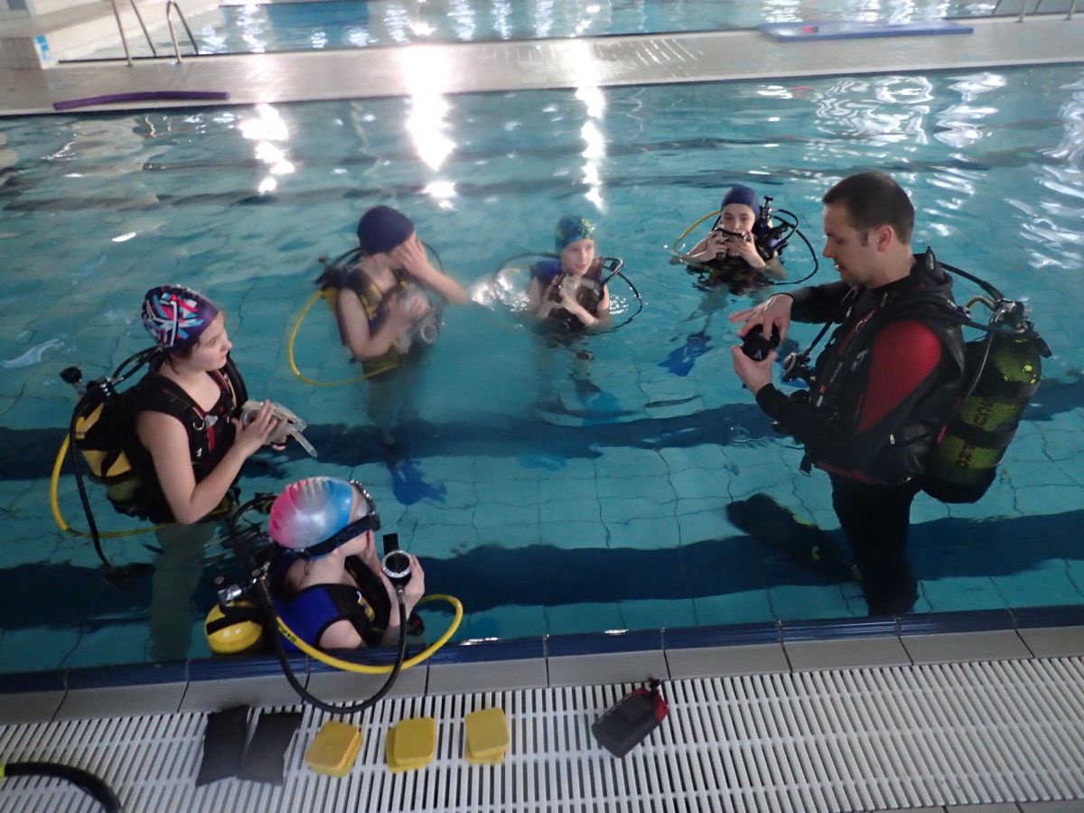 Praca z dziećmi to świetna zabawa. Nurkowanie z dziećmi na basenie Mosir na Chełmie jest jednym z lepszych jakie do tej pory robiliśmy. Bardzo ciepła woda i głębokość 1m sprawia że nurkowanie jest bardzo bezpieczne a my jako instruktorzy mamy wszystkich pod kontrolą