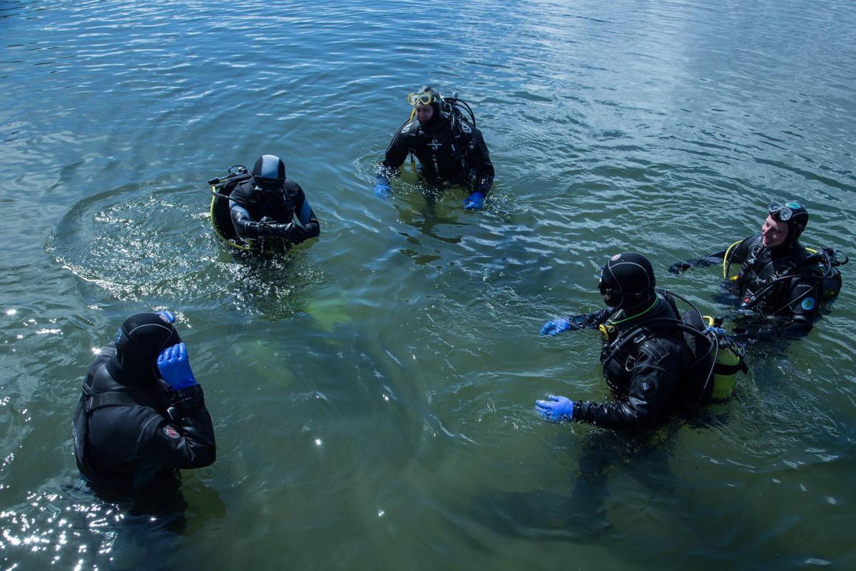 Na poniższych zdjęciach widać z jakim zaangażowaniem 4 śmiałków analizuje swoją pozycję i ruchy płetw.