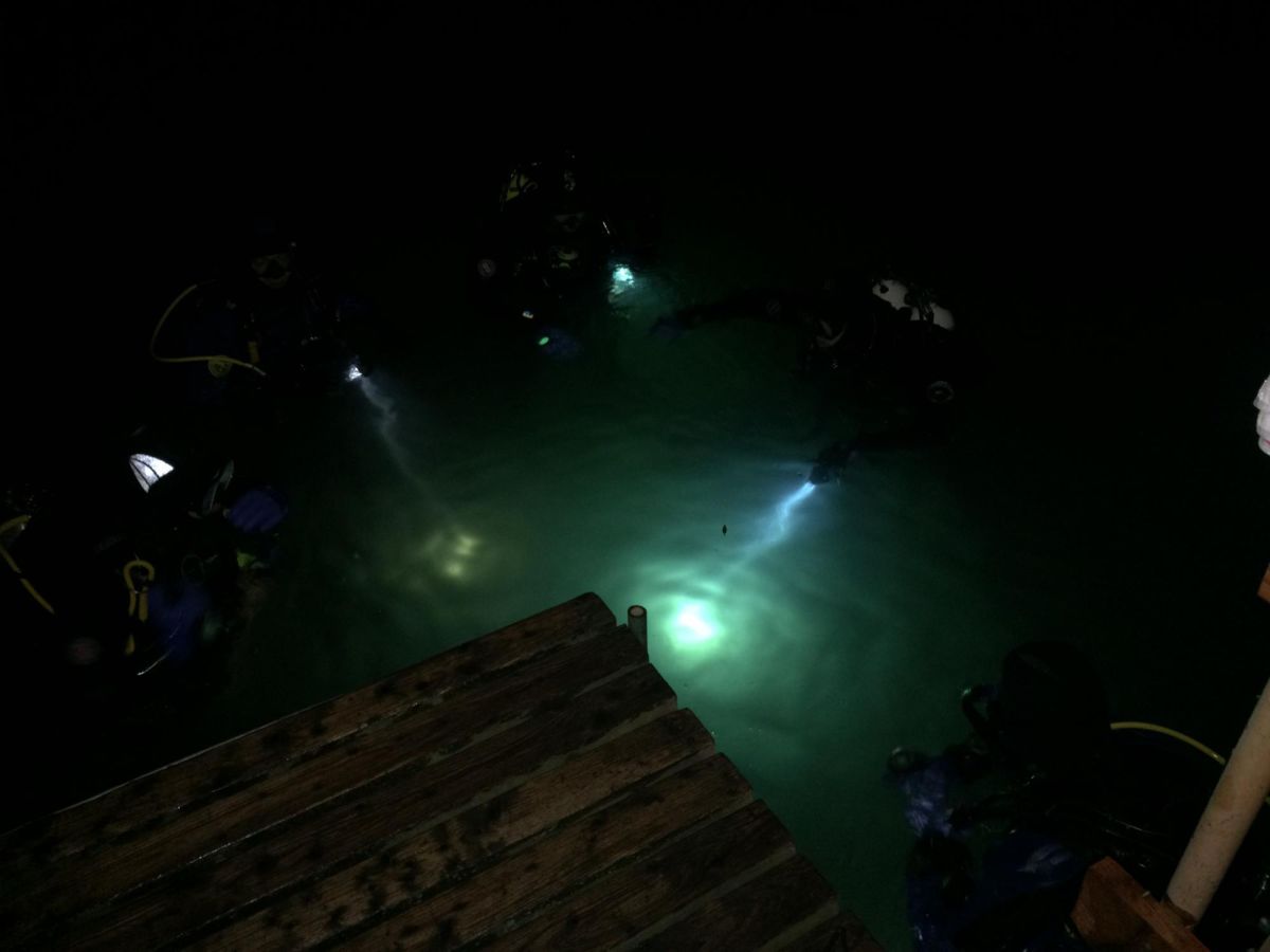 Nocne nurkowanie to dobra zabawa dla tych którzy w ciągu dnia ze względu na pracę lub inne zajęcia nie mogą nurkować lub po prostu chcą przyjrzeć się rybom z bliska. W Chmielnie gdy słońce zachodzi wszystkie okonie i szczupaki grzecznie śpią na platformach. Jak chcesz dokładnie zobaczyć co pływa w Chmielnie zanurkuj nocą. Przyjdź do nas do Kaszubska Baza Nurkowa Tryton. Nauczymy cię jak bezpiecznie nurkować w ciemnościach.
