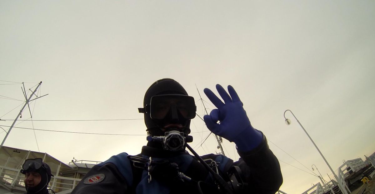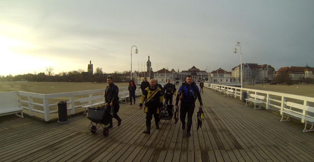 W dniu 20 XII 2015 z grupą nurków wybraliśmy się na nurkowanie pod molo w Sopocie. Wizura około 12m, temperatura wody 6 stopni. Po 40 minutach pod wodą wyszliśmy zadowoleni z udanego nurkowania