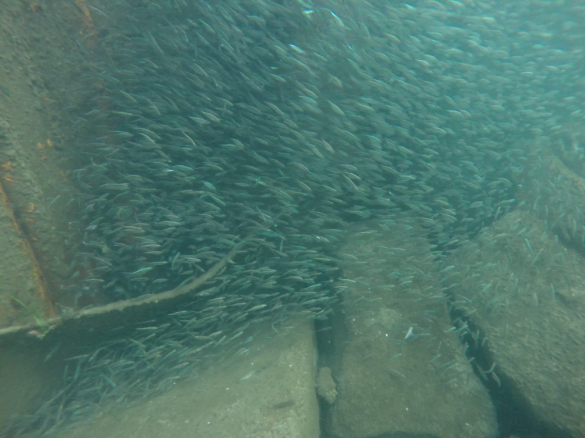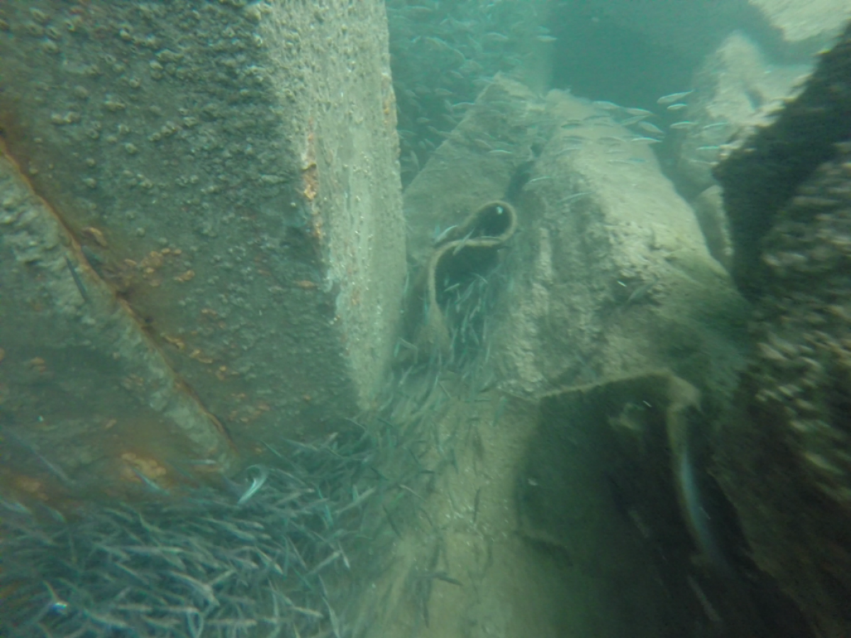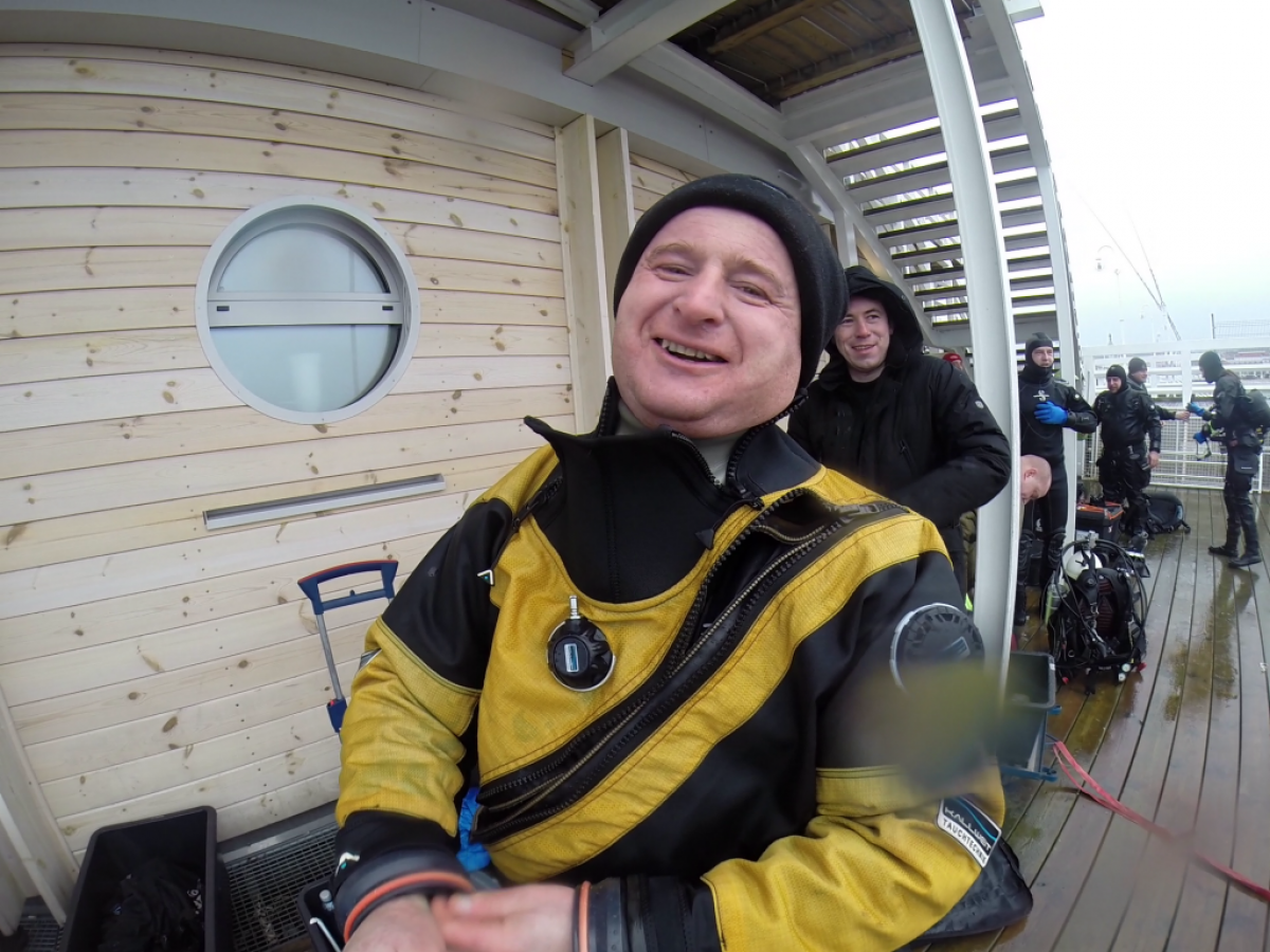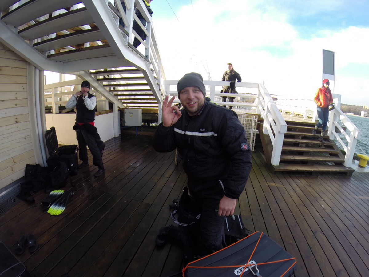 Jest niedzielny dzień styczniowy gra orkiestra już Owsiaka, Sopot wolno się już budzi molo jeszcze puste z rana. Zimny mokry wiatr zacina słońce czasem wyjrzy z góry, a po molo ciągnąc wózki idą same stare nury. Idą sobie zanurkować, bo w zatoce fajna woda, a pod molem jak we wraku można rybki po filmować. Więc skafander suchy wkładam, włączam Santi ogrzewanie i do wody skaczę z mola, reszta nurków skacze za mną. Wolno wpływam między pale płosząc flądry jak talerze, babki razem z miętusami uciekają pod kamienie. Gęsta chmara małych rybek jak mgły obłok świat zasłania i sceneria jak z horroru tuż przed nami się odsłania. Ktoś, kto nie był nie zrozumie jak cudownie jest pod wodą i nie tylko tam gdzie ciepło, ale zimą tu pod molo.