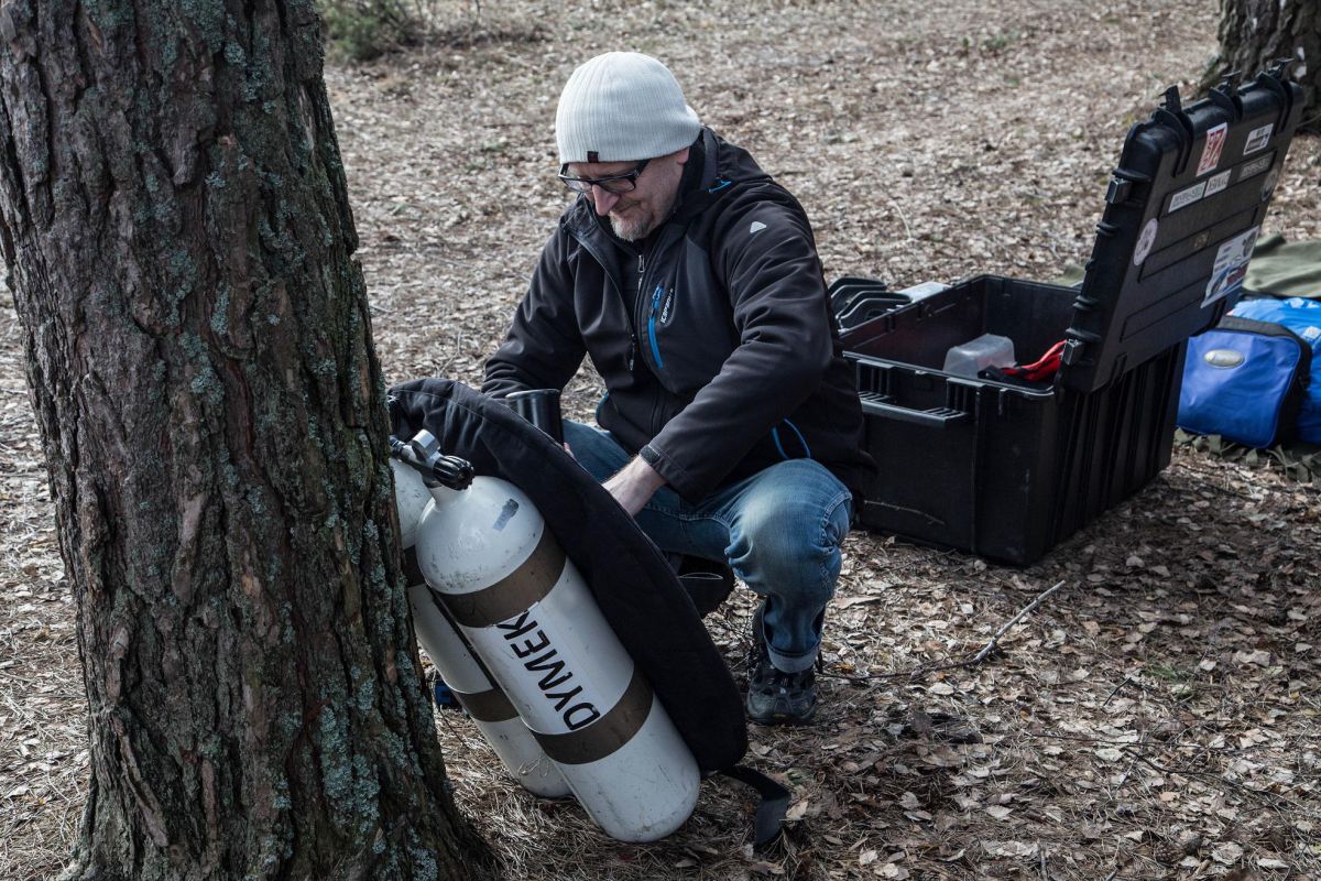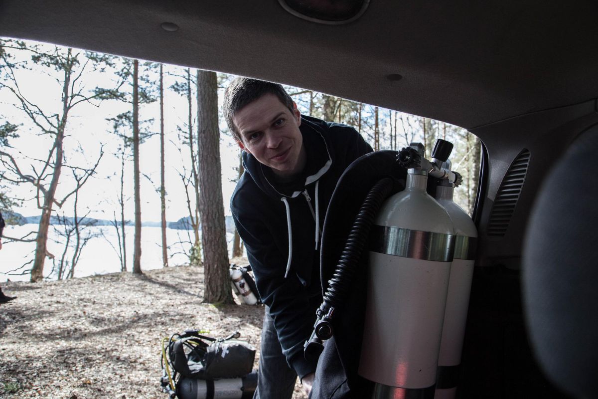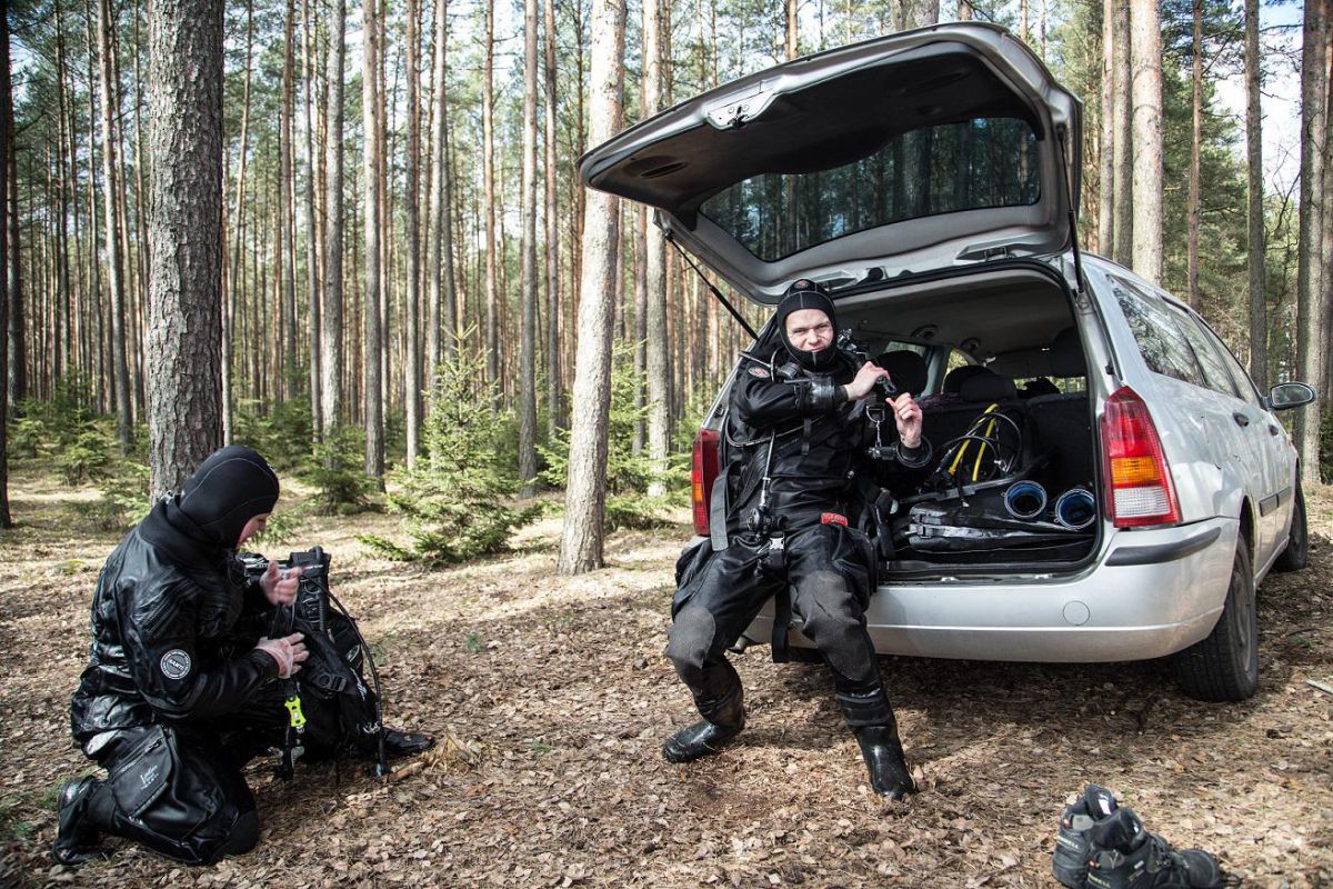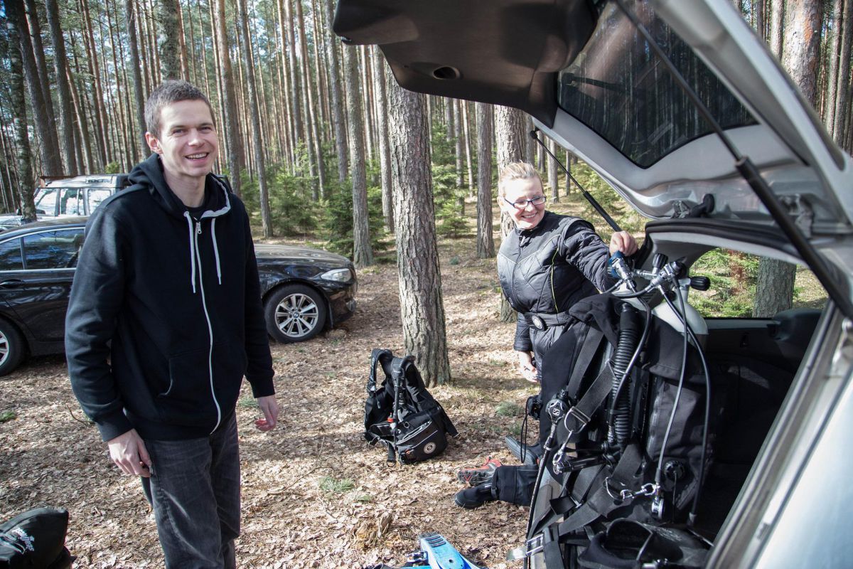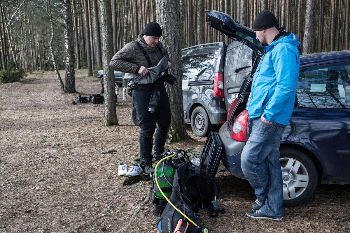 W niedzielę 20 marca wybraliśmy się na nurkowanie na ściankę nad jeziorem Wdzydzkim. Odległość spora, z trójmiasta, Gdyni, Gdańska około 100km. Pogoda i towarzystwo dopisało więc odległość nie odgrywała dużej roli:) Po zgrupowaniu na stacji Orlen w Kościerzynie ruszyliśmy dużym konwojem w kierunku jeziora. Dojazd nad Ściankę nie był oczywisty. To niewielkie wcięcie w głębi lasu przyniosło nam nieco kłopotów. Drogi leśne o różnych porach roku nieco się zmieniają. Rozszyfrowanie właściwego skrętu zajęło nam trochę czasu.