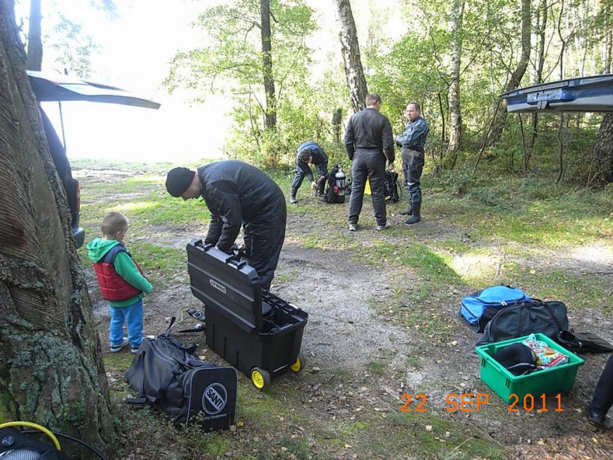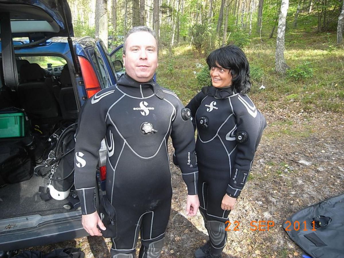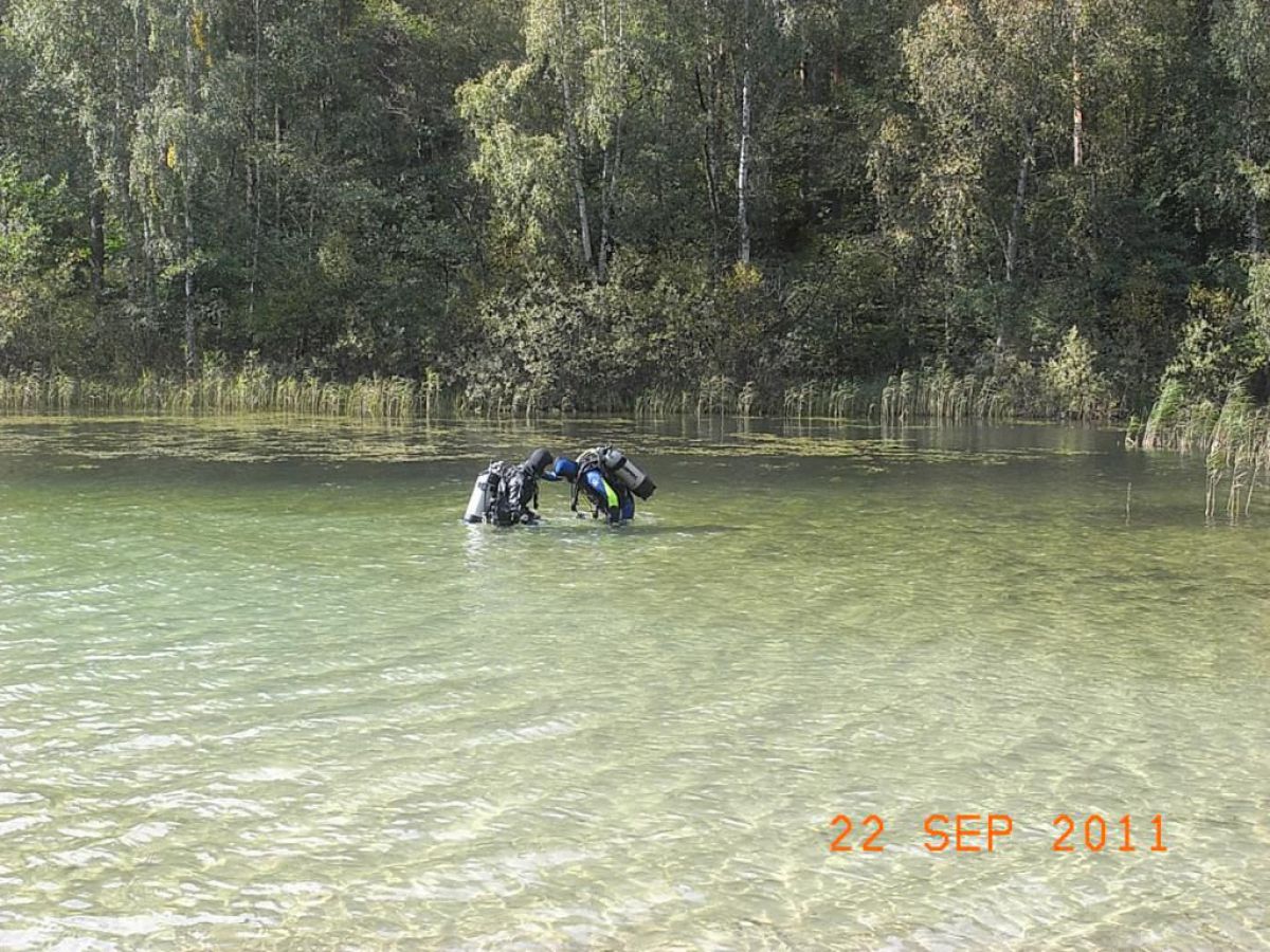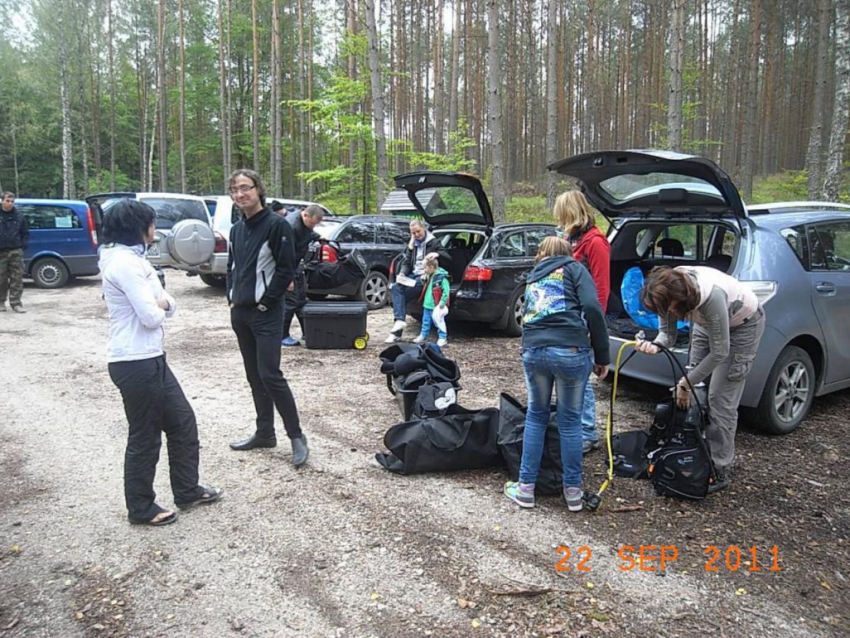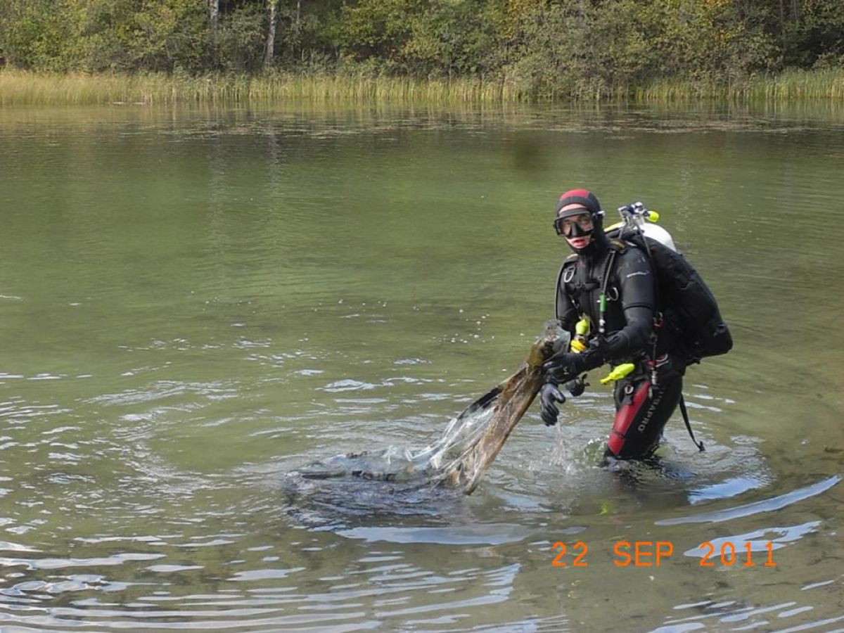 topniu odwdzięczyć się matce ziemi za to co nam ofiaruje i wzięliśmy udział w Sprzątaniu Świata, wybierając jedną z jej perełek jezioro nomen omen Zmarłe. Dwugodzinna podróż samochodem przez piękna kaszubską ziemię i jesteśmy w miejscowości o swojsko brzmiącej nazwie LASKA. Przywitał nas kierownik Zaborskiego Parku Krajobrazowego Mariusz Grzempa bardzo sympatyczny i zaangażowany w ochronę przyrody pasjonat. Po ubraniu skafandrów i zabraniu worków na śmieci nurkowie poszli pod wodę w poszukiwaniu wyrobów naszej cywilizacji. Po godzinnym nurkowaniu wypełniliśmy zaledwie częściowo jeden worek, a pan Mariusz dopełnił go śmieciami zebranymi na brzegu,