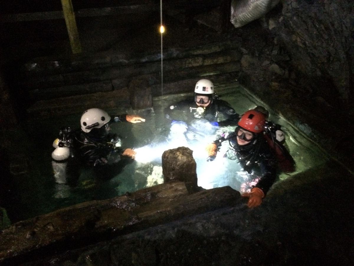 Wejście do wody to dość wąski pionowy "komin kopalniany" prowadzący do 30m.