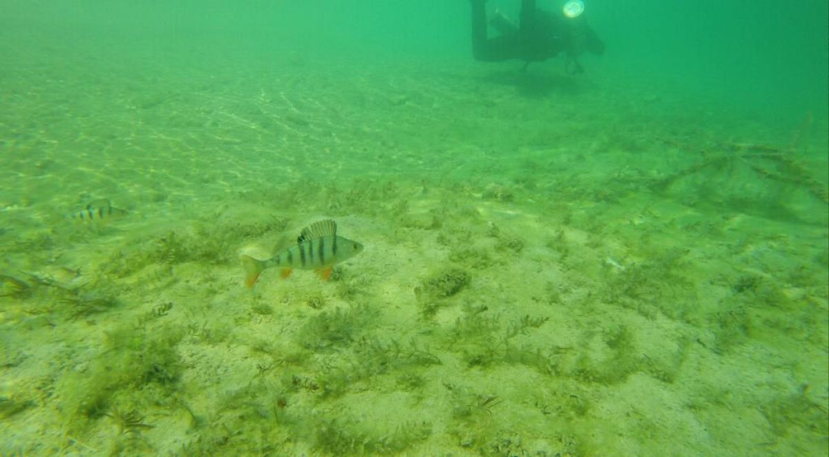Tutaj wręcz uderzyła nas przepiękna widoczność i zatrzęsienie życia podwodnego . Okonki, płocie a nawet małe raczki w ogóle się nas nie bały. Jeden szczupak (choć nie taki duży jak te nasze w Chmielnie) bardzo sobie upodobał rolę partnera nurkowego i odprowadził nas do samego pomostu, gdzie po 45 minutach wynurzyliśmy się z uśmiechami na minach.
