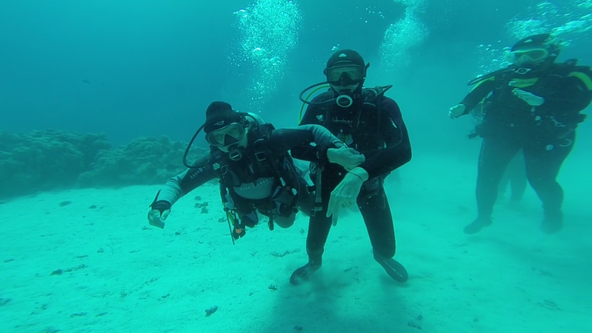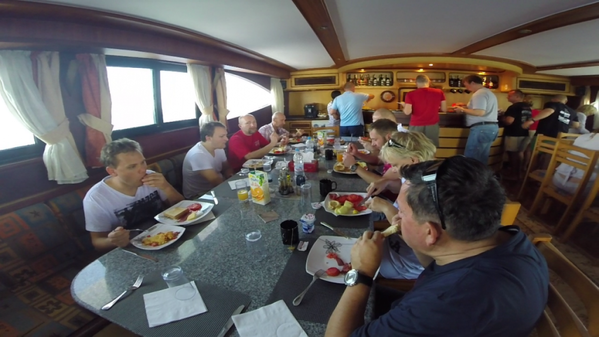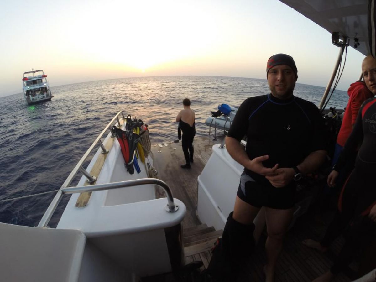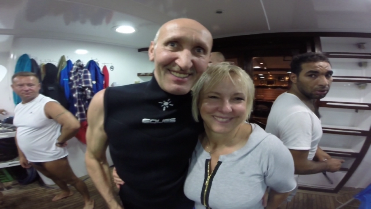 Szaro buro jest na dworze ciemne chmury wiszą w górze depresyjny jest listopad a się zbliża zaraz grudzień. Więc by trochę złapać ciepła, by się wygrzać w słońca blasku trzeba w ciepłe strony jechać po gorącym chodzić piasku. Tak najbliżej nam się wybrać nad czerwone ciepłe morze gdzie przyjazny Egipt wita, gdzie gorąco jest na dworze. Więc dwadzieścia dwoje osób leci z Gdańska do Hurgady i już późną ciemną nocą w Port Ghalib łódkę mamy. Łódź wypływa bladym świtem nas zrywają rano z koja, miał być urlop, odpoczynek a tu ciężka dola moja. I tak co dzień rano wstajesz briefing, nurek i śniadanie potem chwila odpoczynku i pod wodą nurkowanie. Kiedy skończysz nurkowanie słoną wodę spłukać trzeba, a w łazience gdy łódź buja równowagę łapać trzeba. Więc kolanko jedno spuchło i łuk brwiowy krwią zbroczony, lecz pan doktor Tomek czuwa do pomocy jest gotowy. I tak cały długi tydzień, dzień za dzionkiem nam upływa, jest cudowna woda, słońce, aż się chce nam ciągle pływać. Wieczorami po kolacji gdy noc ciemna już zapada, śmiech wesoły słychać wszędzie, ktoś kawały opowiada. Jest wybornie i wesoło wszyscy się cudownie zgrali szkoda że czas nam już wracać, jeszcze byśmy nurkowali. Każdy ładnie opalony, każdy ma energii sporo więc nie straszna późna jesień kiedy w sercu jest wesoło. Więc wypada tylko jedno podziękować tym co byli, że tak świetnie kulturalnie przecudownie się bawili.