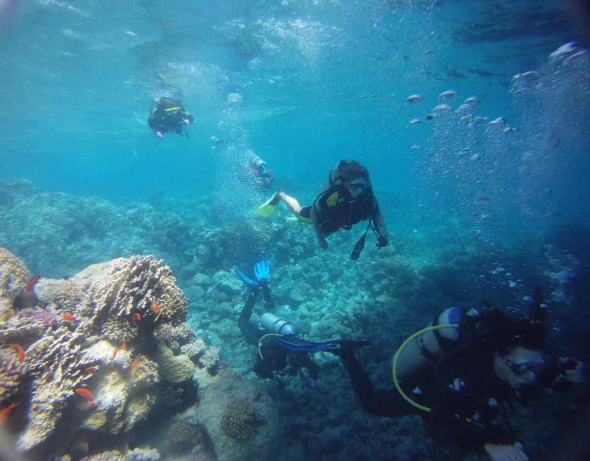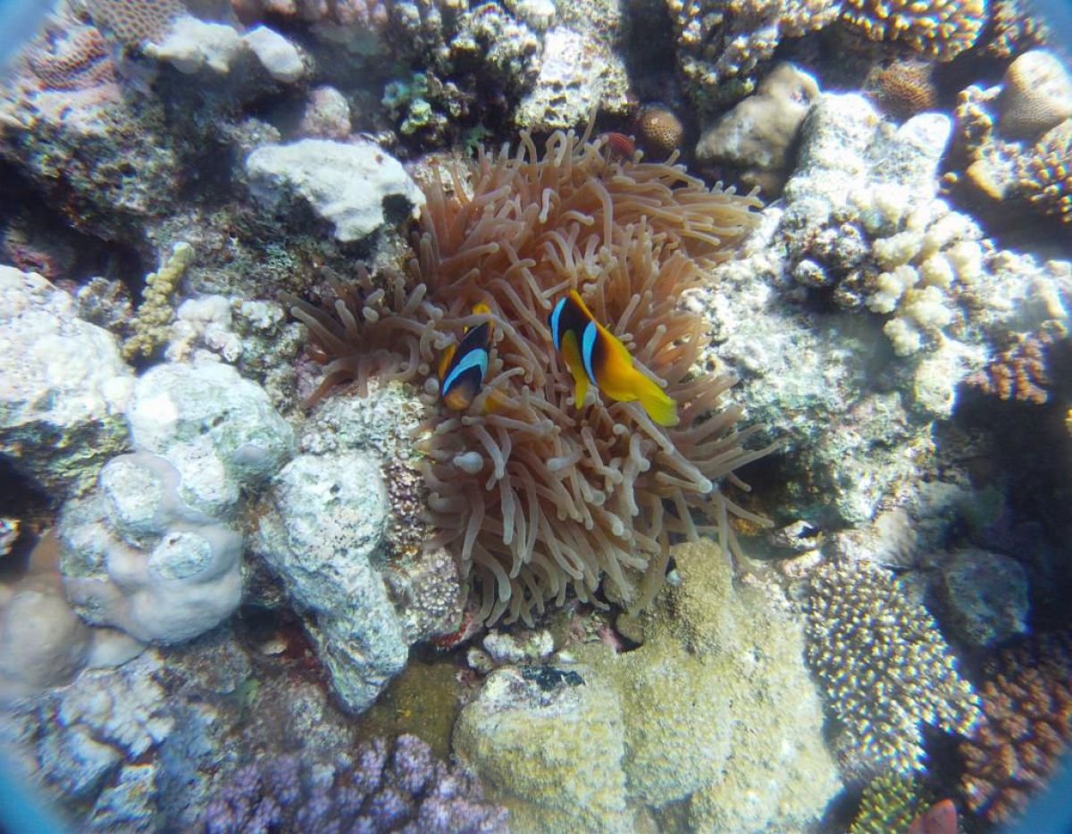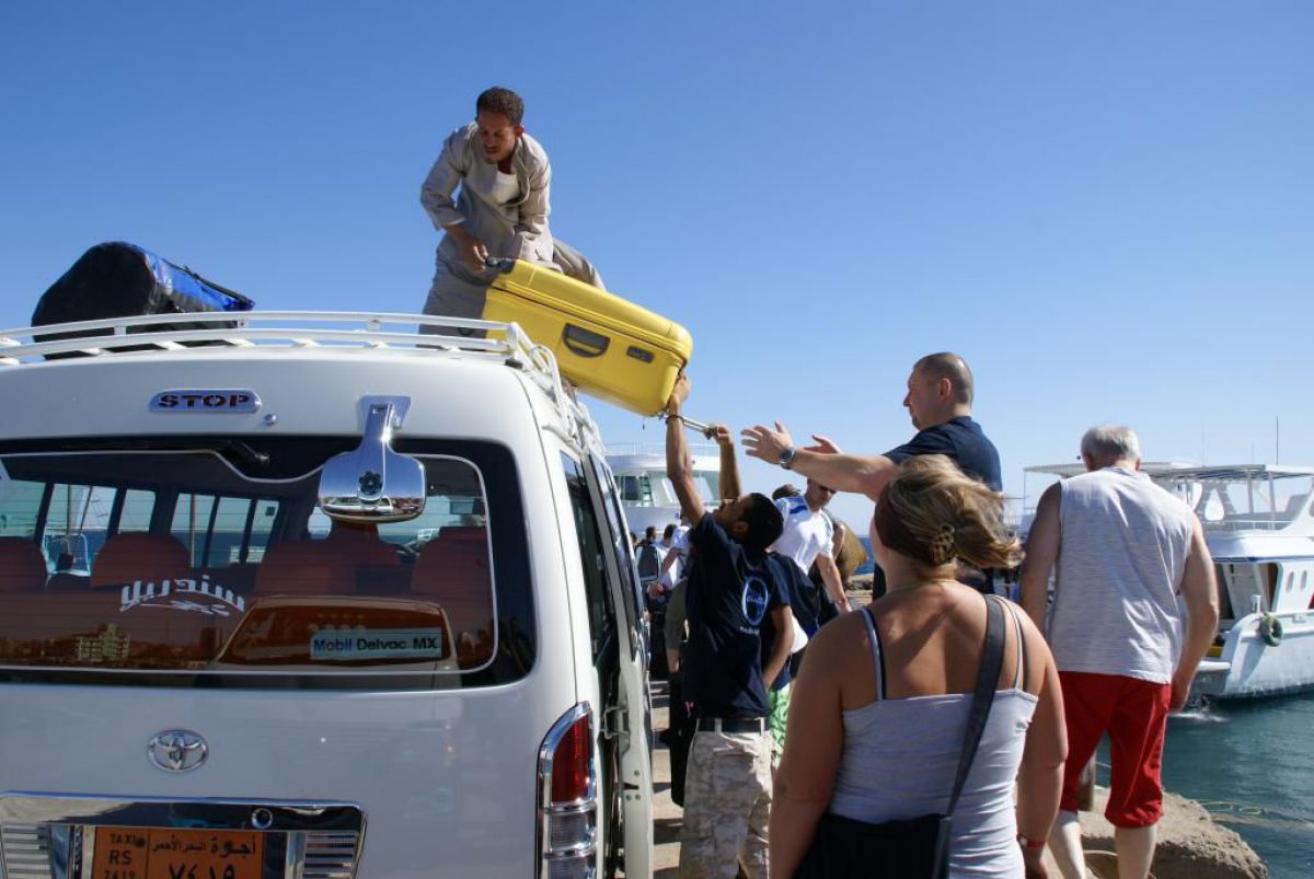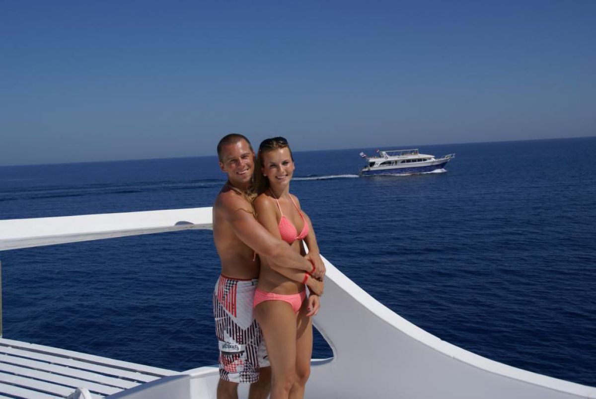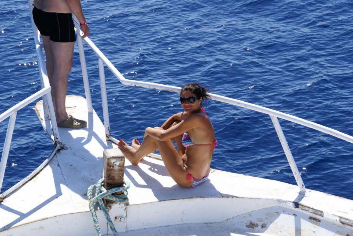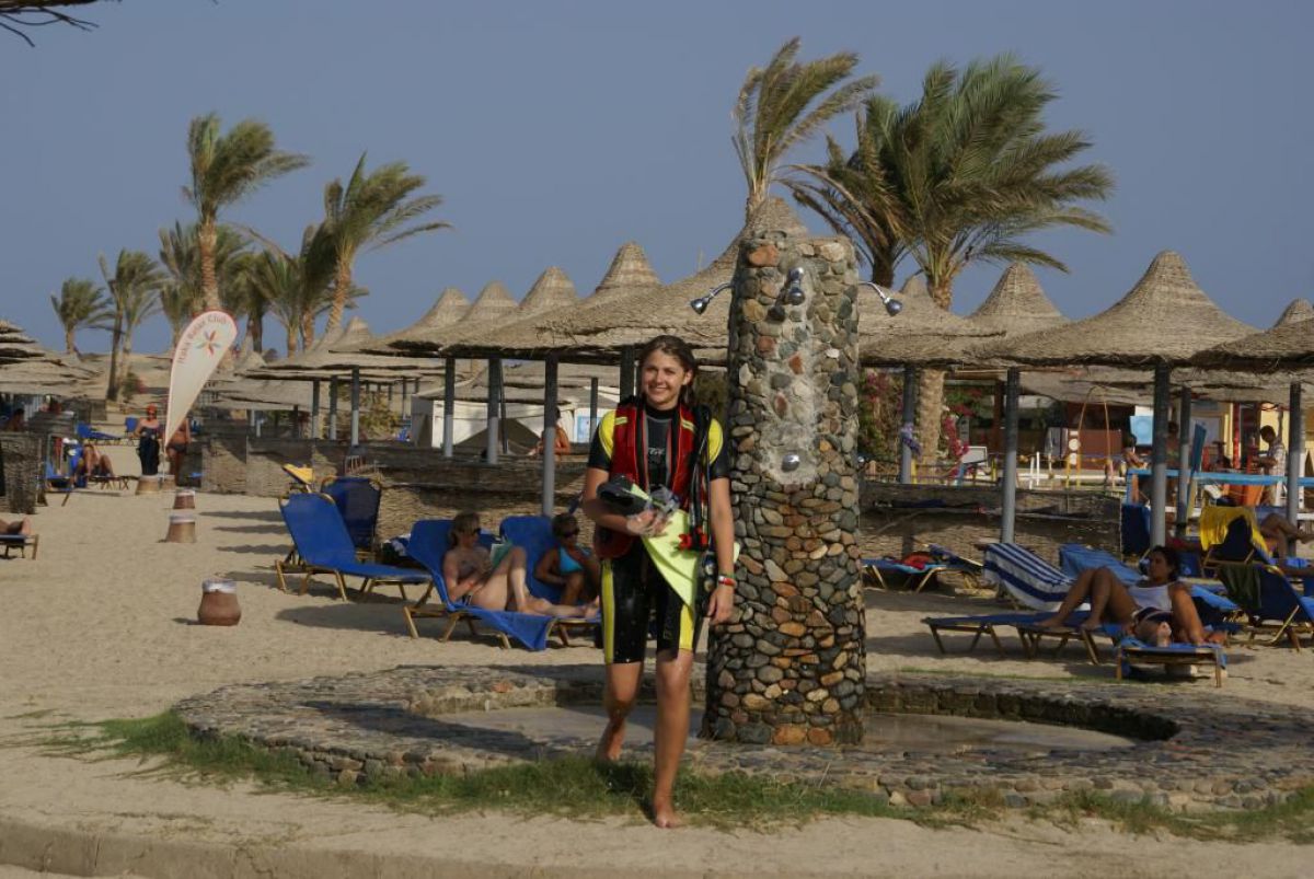 Następnego dnia busiki zabierają nas z całym majdanem nurkowym do portu, gdzie wchodzimy na pokład naszej łodzi nurkowej. Powietrze gorące jak w saunie, choć lekki zefirek dmucha, słońce praży, a w koło piękna lazurowa woda choć morze jest z nazwy czerwone??? Parkujemy przy rafie, krótki briefing i do wody, a woda ciepła i przezroczysta, a na dodatek wokół koralowej rafy pełno kolorowych rybek, normalnie akwarium.