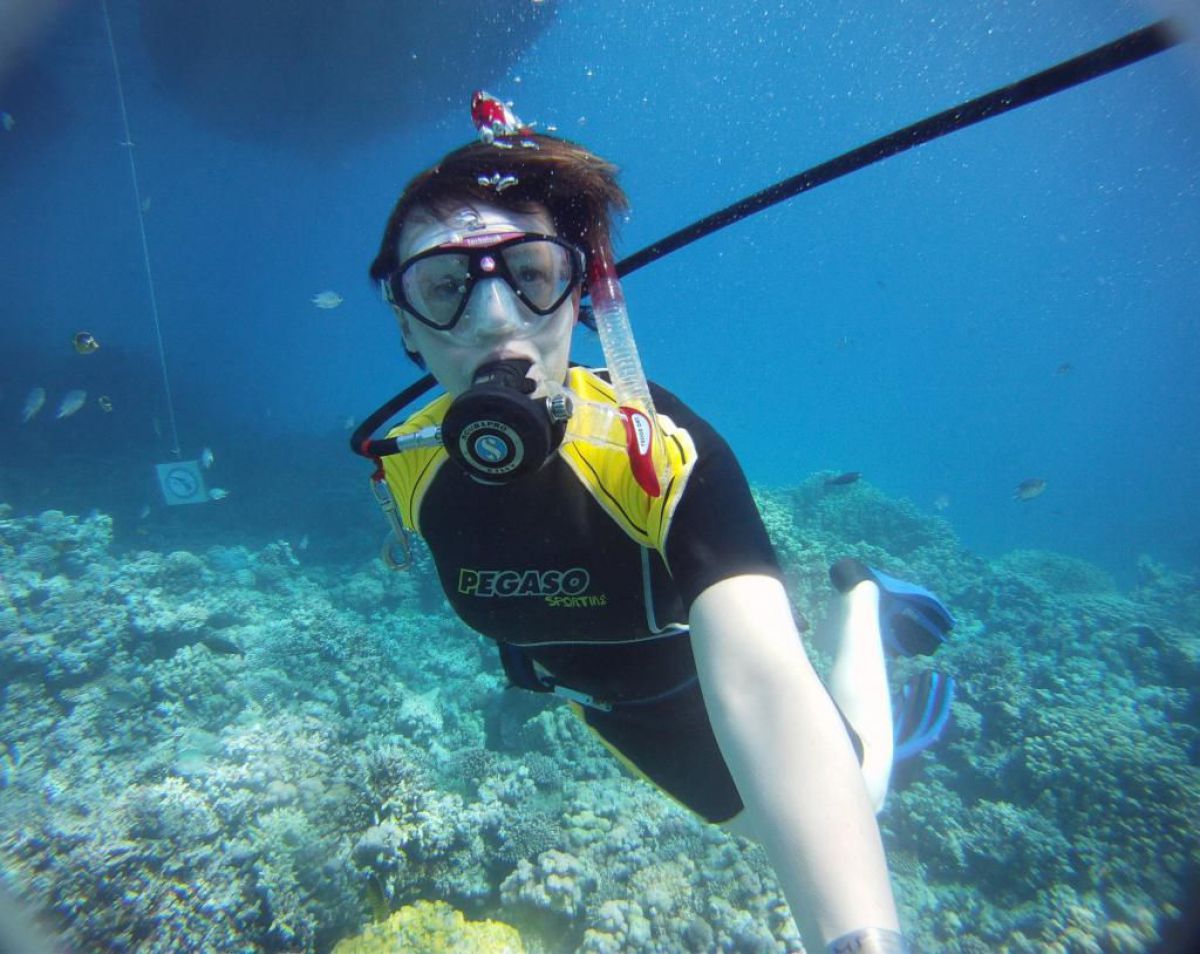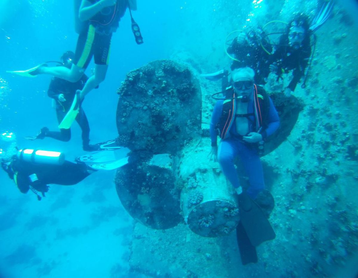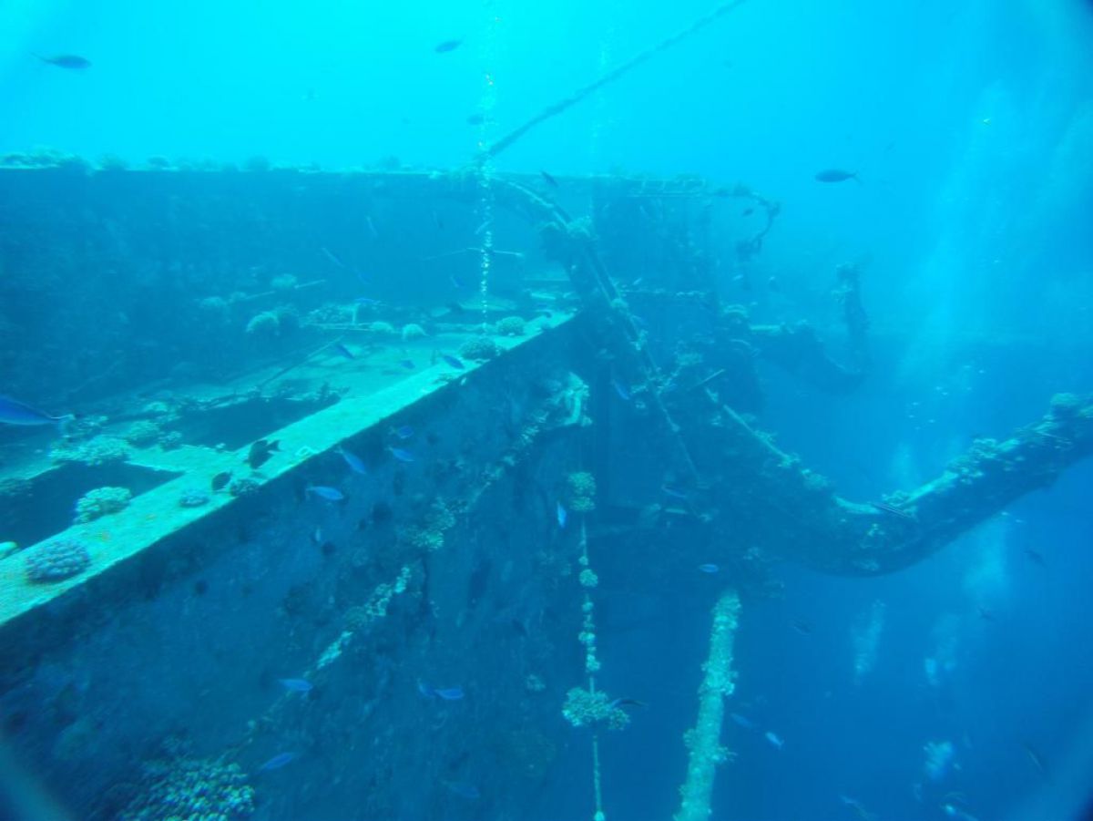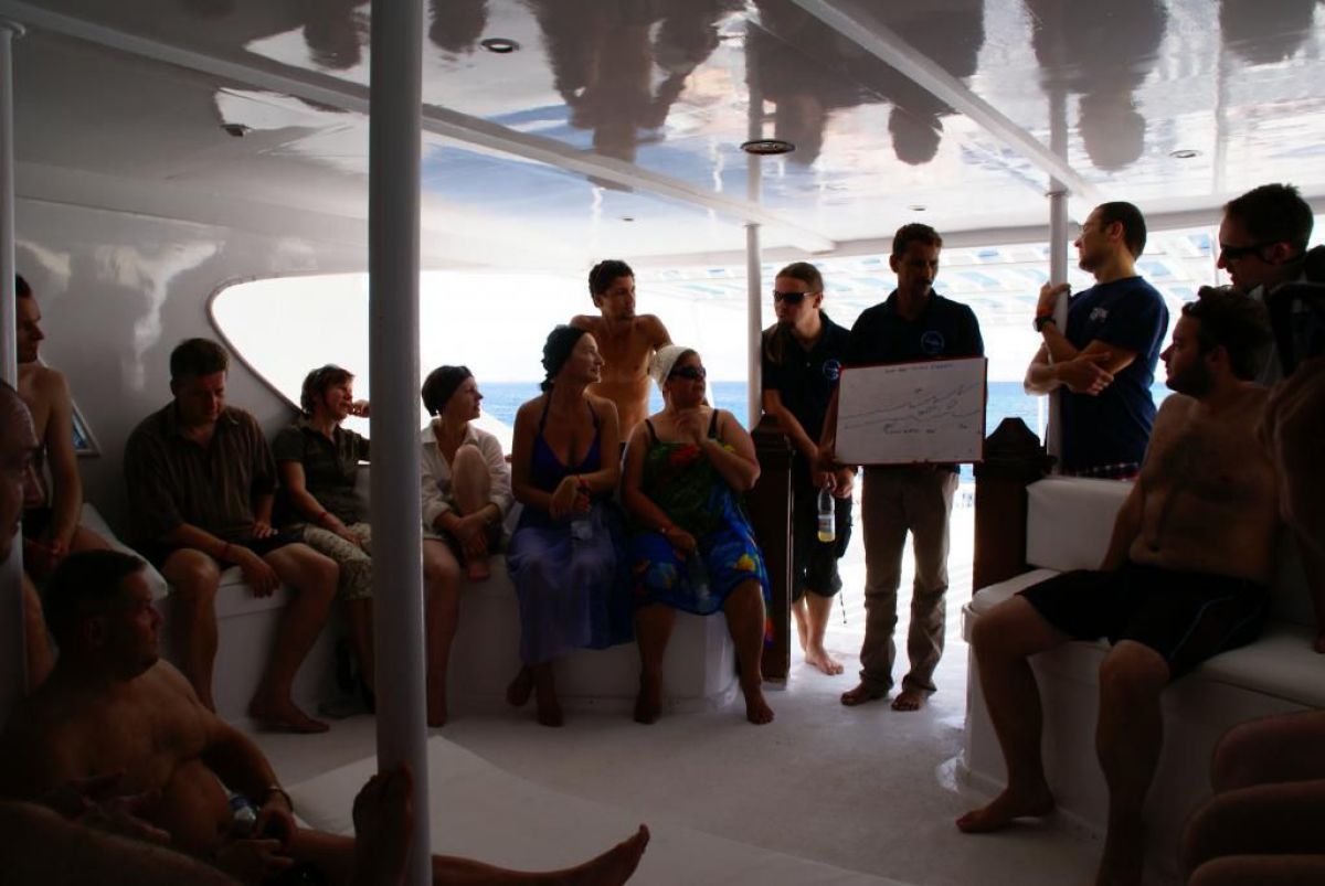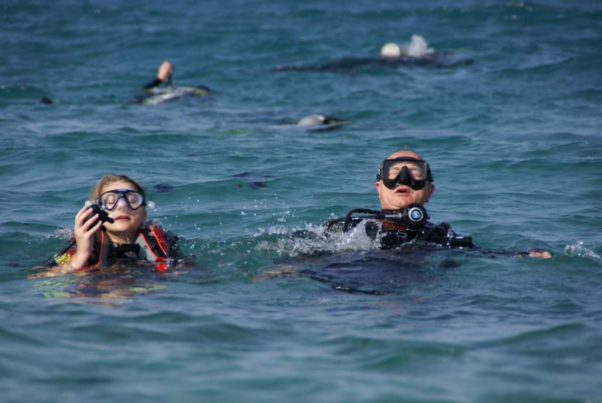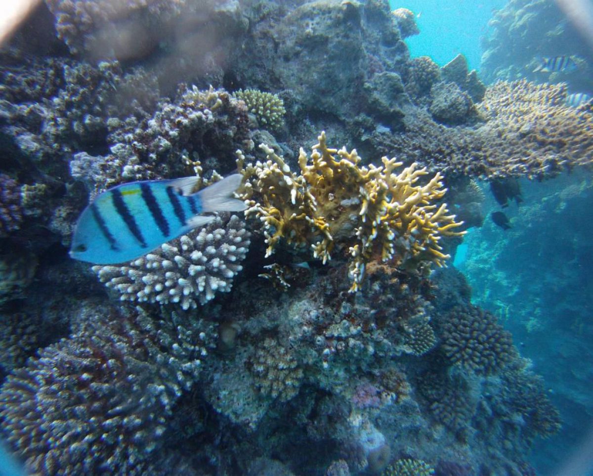 Następnego dnia busiki zabierają nas z całym majdanem nurkowym do portu, gdzie wchodzimy na pokład naszej łodzi nurkowej. Powietrze gorące jak w saunie, choć lekki zefirek dmucha, słońce praży, a w koło piękna lazurowa woda choć morze jest z nazwy czerwone??? Parkujemy przy rafie, krótki briefing i do wody, a woda ciepła i przezroczysta, a na dodatek wokół koralowej rafy pełno kolorowych rybek, normalnie akwarium.