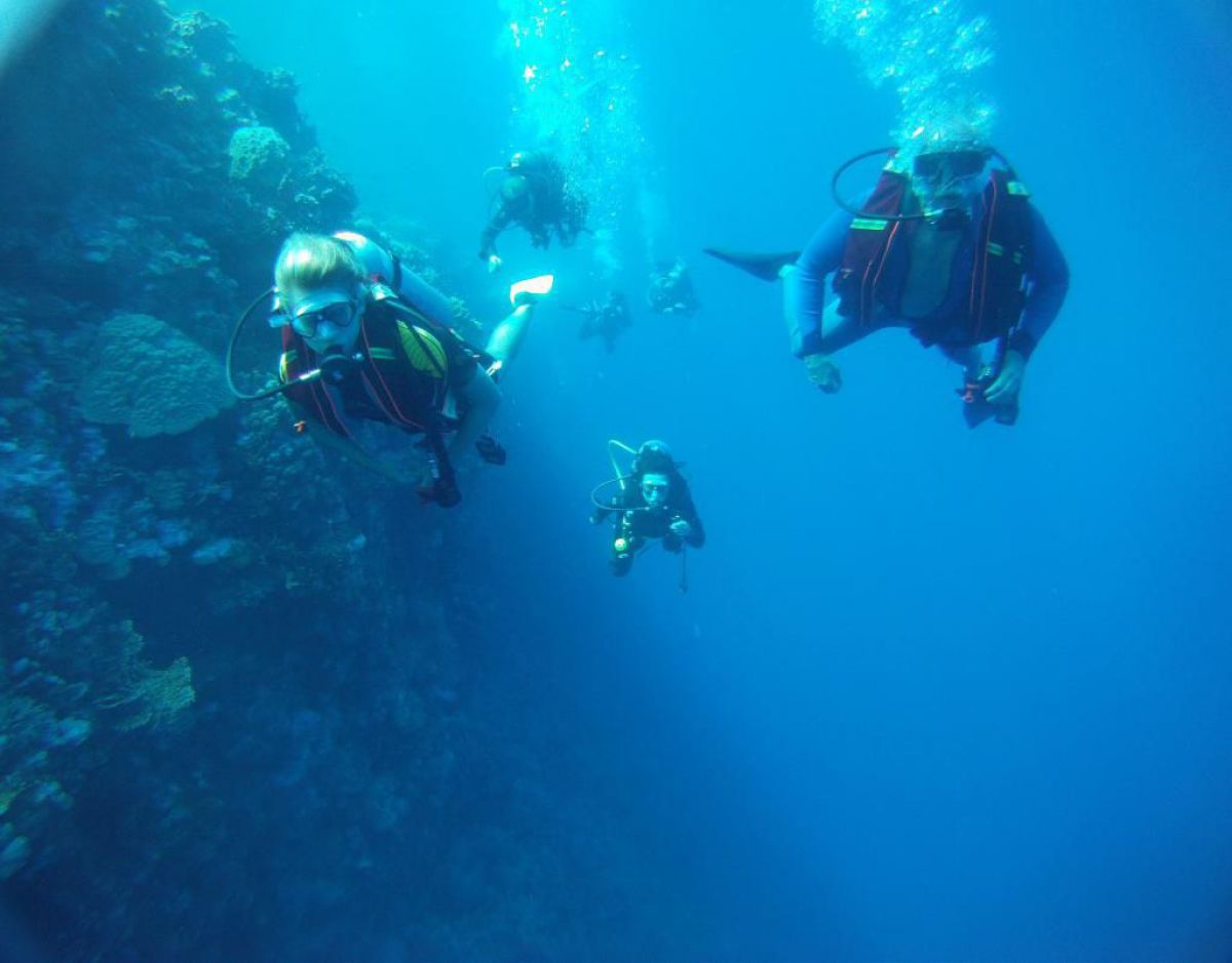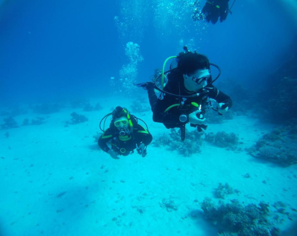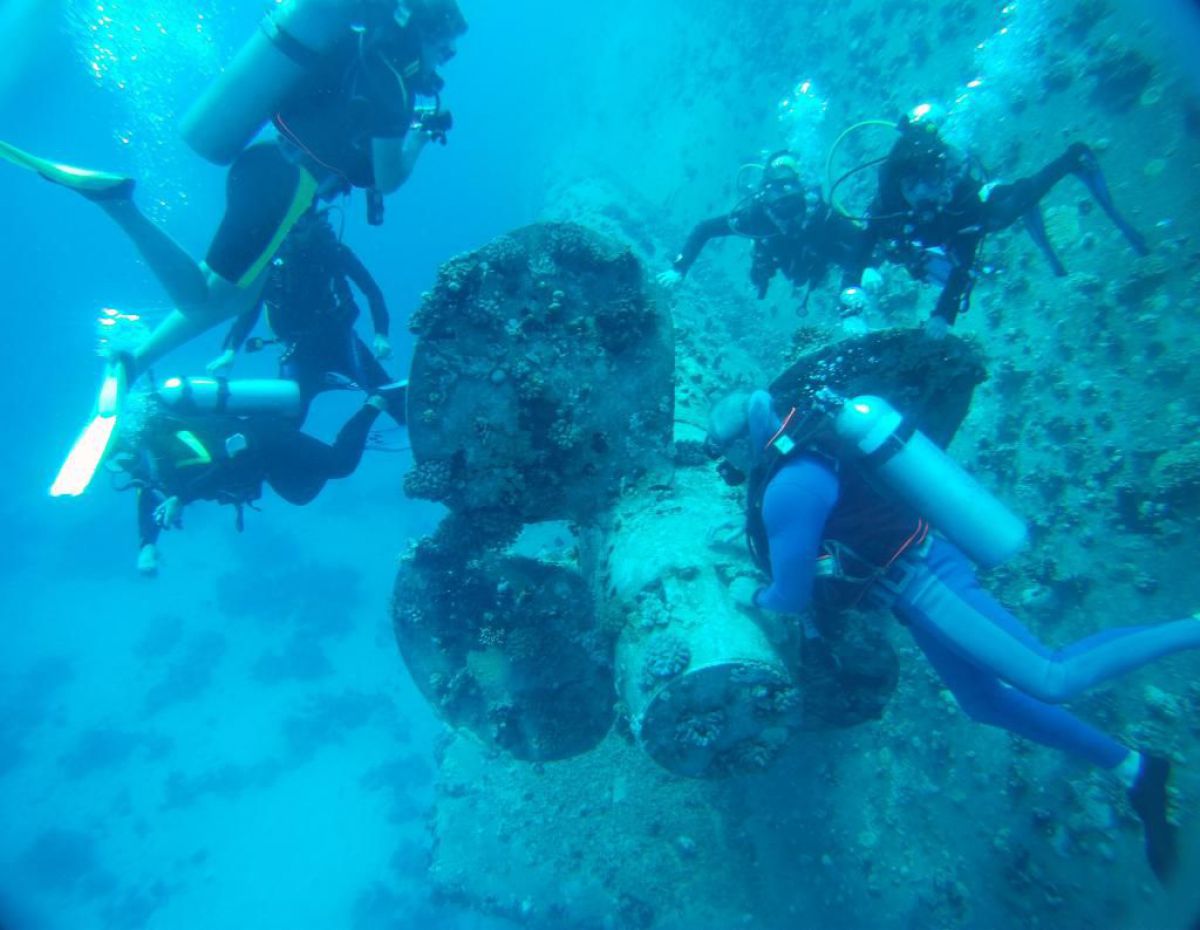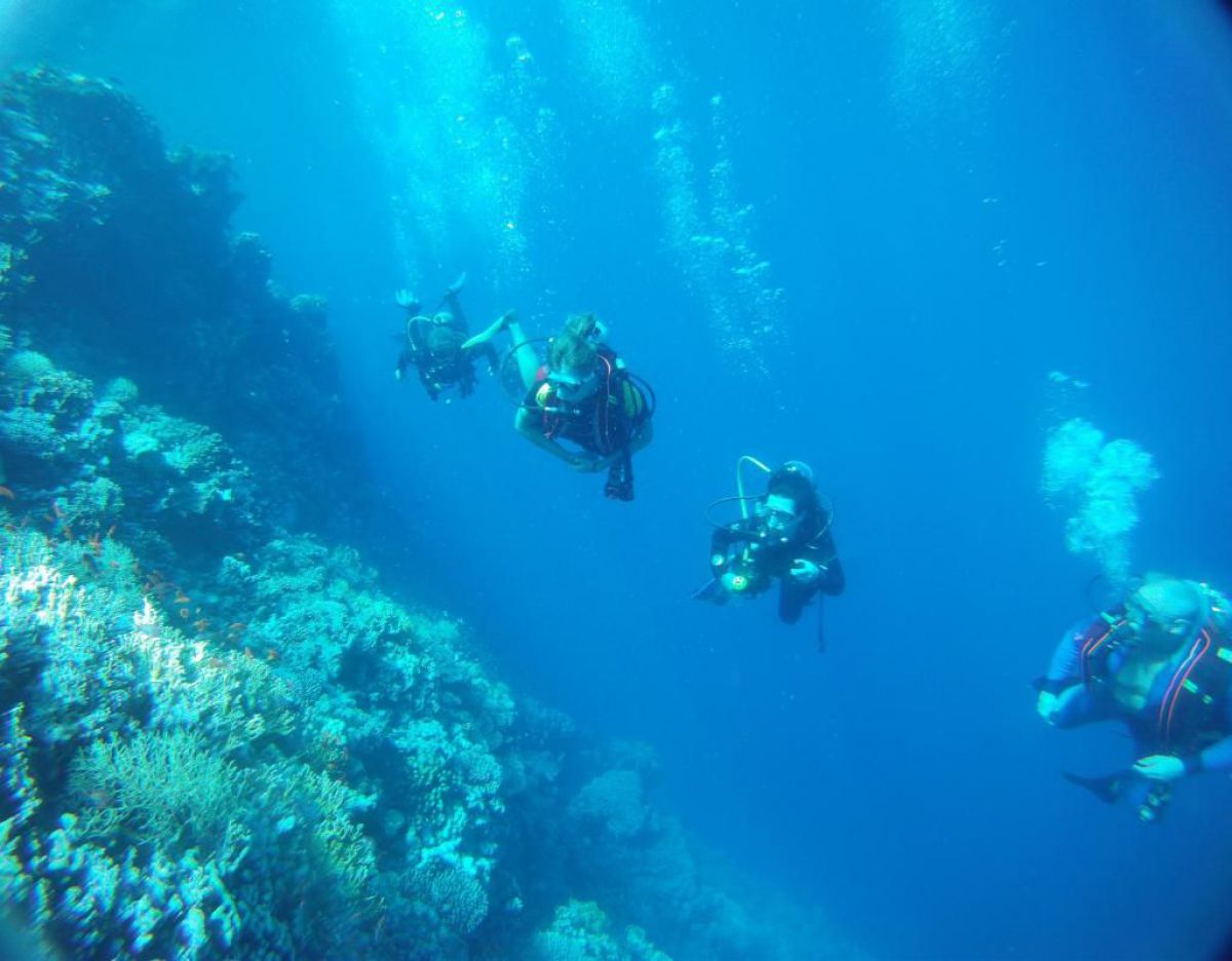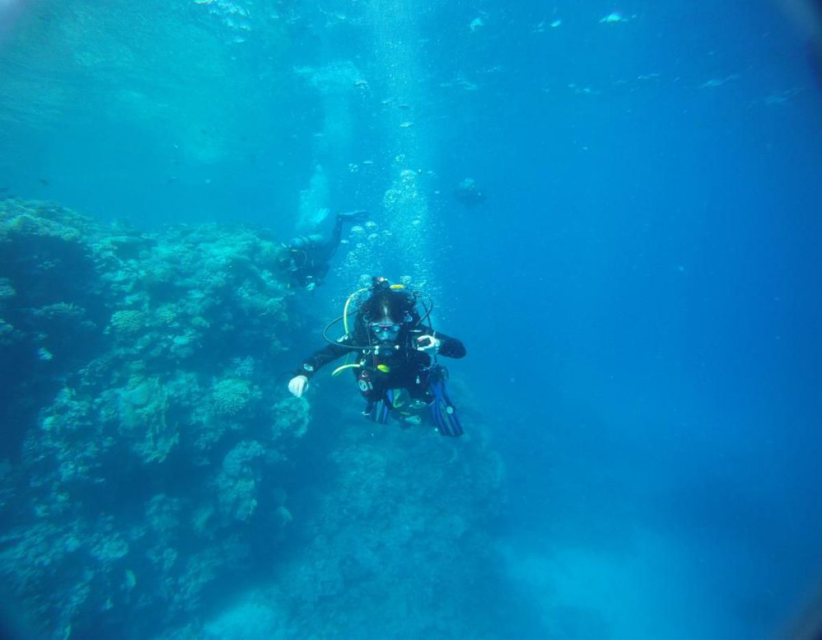 Następnego dnia busiki zabierają nas z całym majdanem nurkowym do portu, gdzie wchodzimy na pokład naszej łodzi nurkowej. Powietrze gorące jak w saunie, choć lekki zefirek dmucha, słońce praży, a w koło piękna lazurowa woda choć morze jest z nazwy czerwone??? Parkujemy przy rafie, krótki briefing i do wody, a woda ciepła i przezroczysta, a na dodatek wokół koralowej rafy pełno kolorowych rybek, normalnie akwarium.