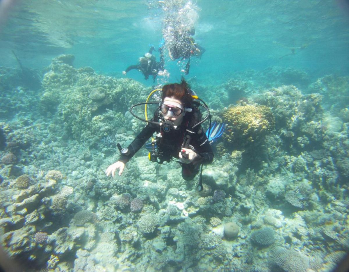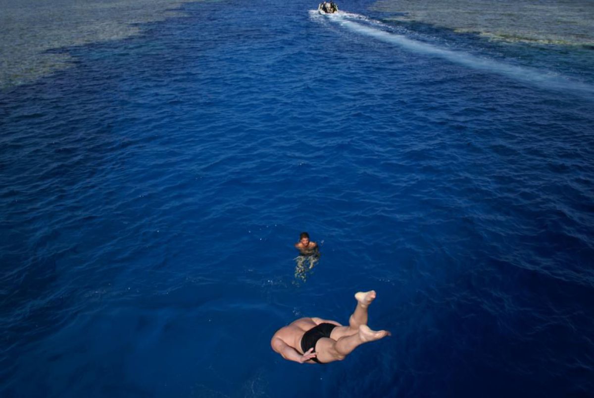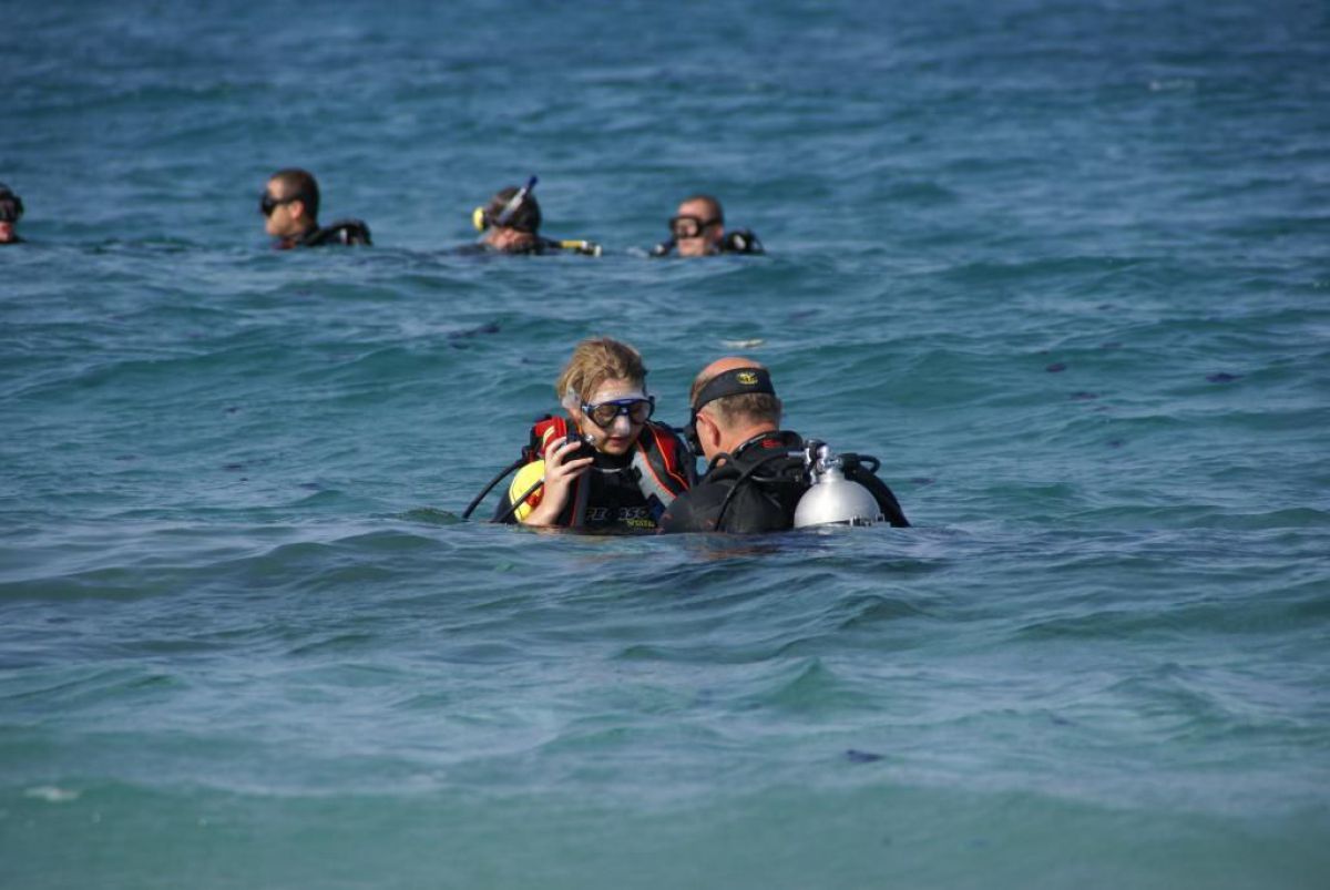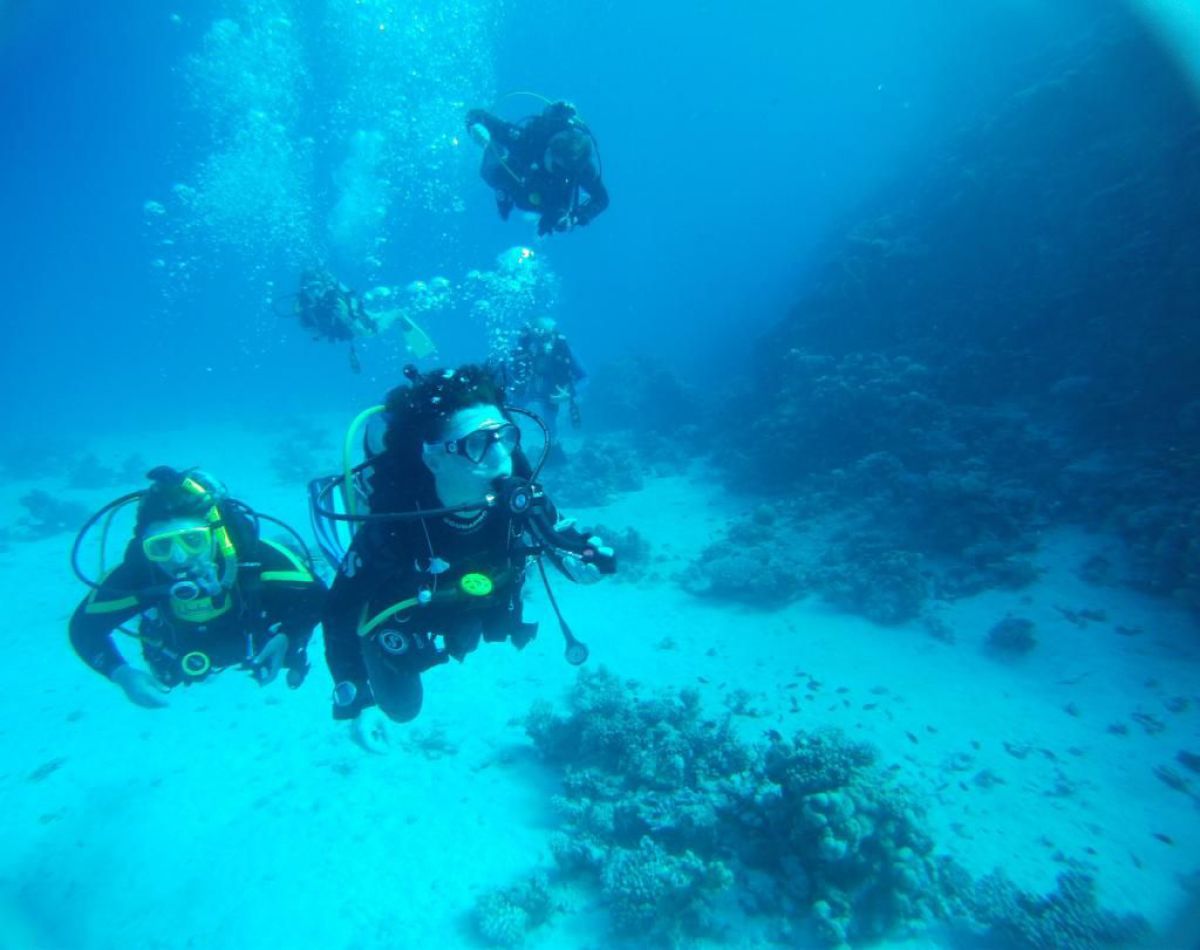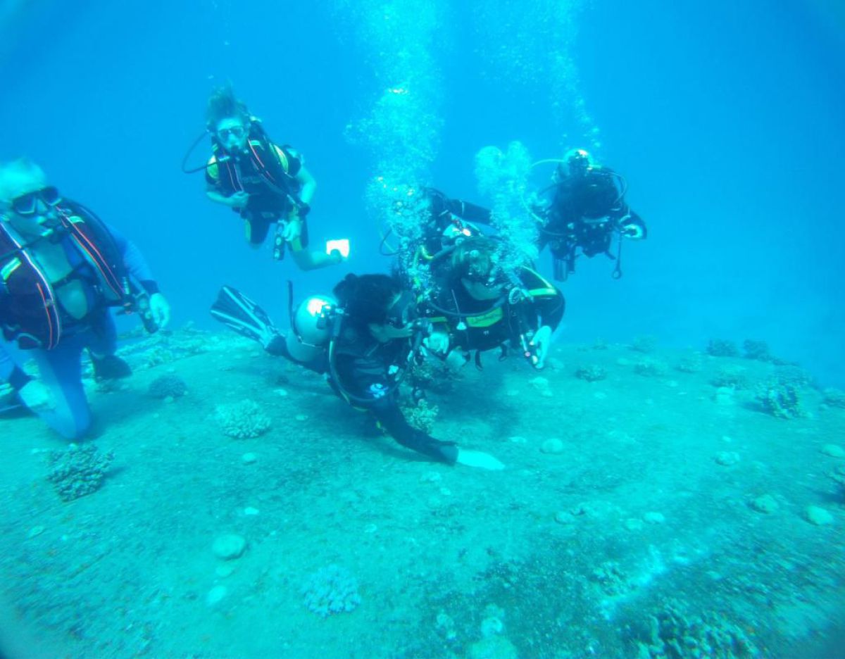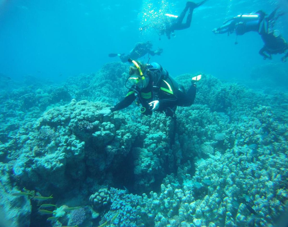Następnego dnia busiki zabierają nas z całym majdanem nurkowym do portu, gdzie wchodzimy na pokład naszej łodzi nurkowej. Powietrze gorące jak w saunie, choć lekki zefirek dmucha, słońce praży, a w koło piękna lazurowa woda choć morze jest z nazwy czerwone??? Parkujemy przy rafie, krótki briefing i do wody, a woda ciepła i przezroczysta, a na dodatek wokół koralowej rafy pełno kolorowych rybek, normalnie akwarium.