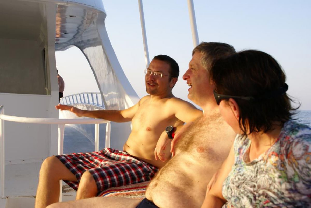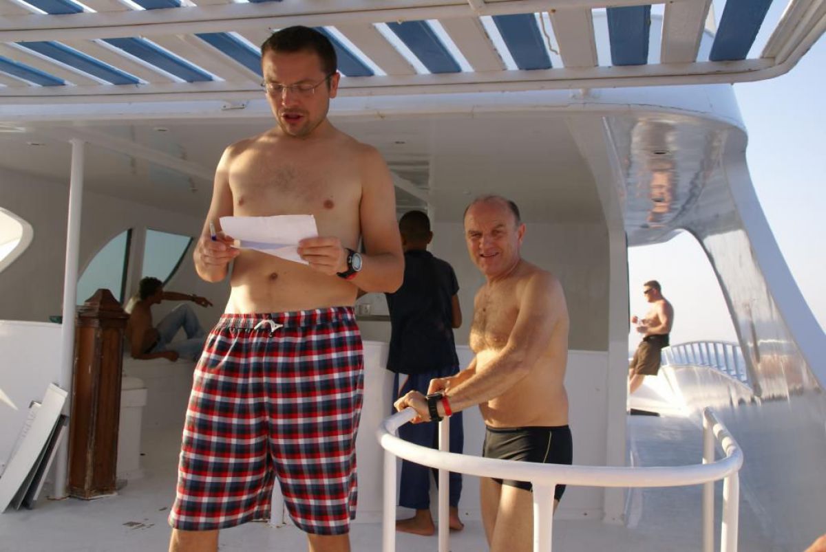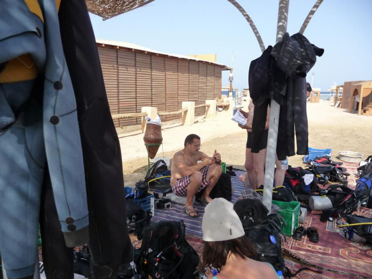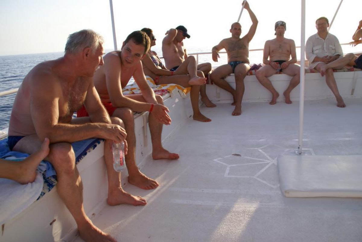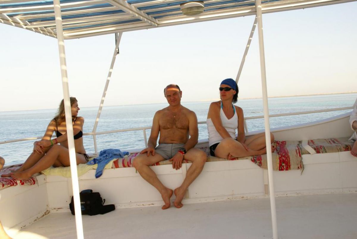 I tak przez kolejne dni, wilgotno, gorąco i kolorowo, zwiedzamy kolejne rafki, nurkujemy też na wraku Salem Express. Atmosfera w ekipie doskonała, czasem ktoś zostawi aparat pod wodą, albo spuszczając wodę w kibelku wypadnie za burtę, co budzi ogólną wesołość chociaż nieszczęśnikowi nie do śmiechu. A gdy wieczorem wracamy do hotelu busikami po ciemku bez świateł (tak się tu jeździ) szybka kąpiel, posiłek i na wykłady, które prowadzi Krzysiek. Potem jakieś pogaduchy przy winku i luli bo jutro rano na nurka. Człowiek wyjechał na wczasy wykupił all inclusive, miało być tak pięknie, a wyszło jak zawsze, harówa.