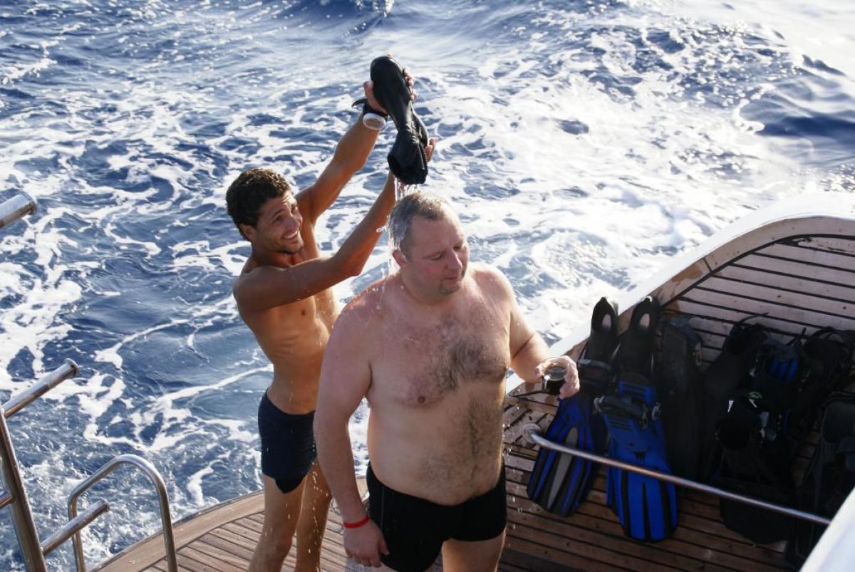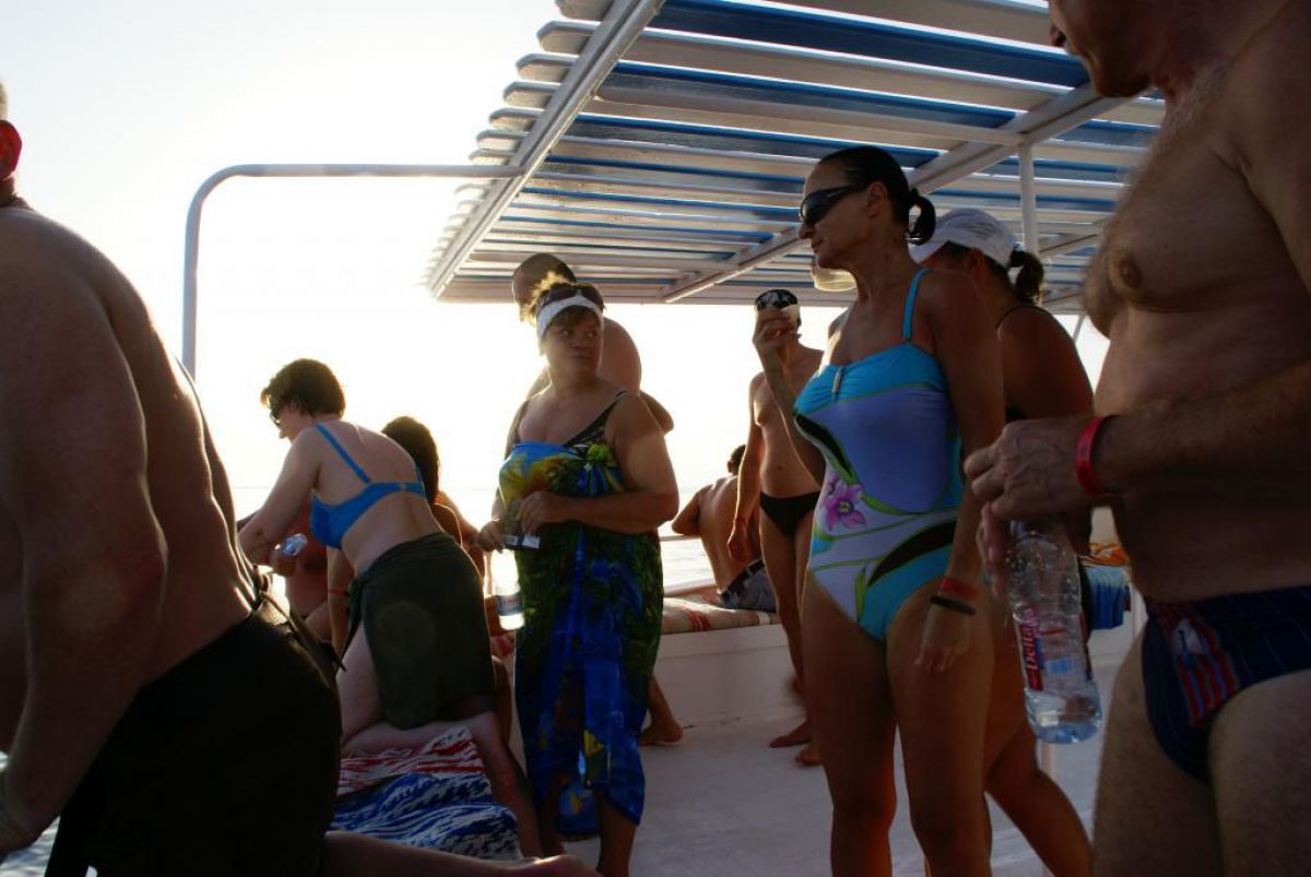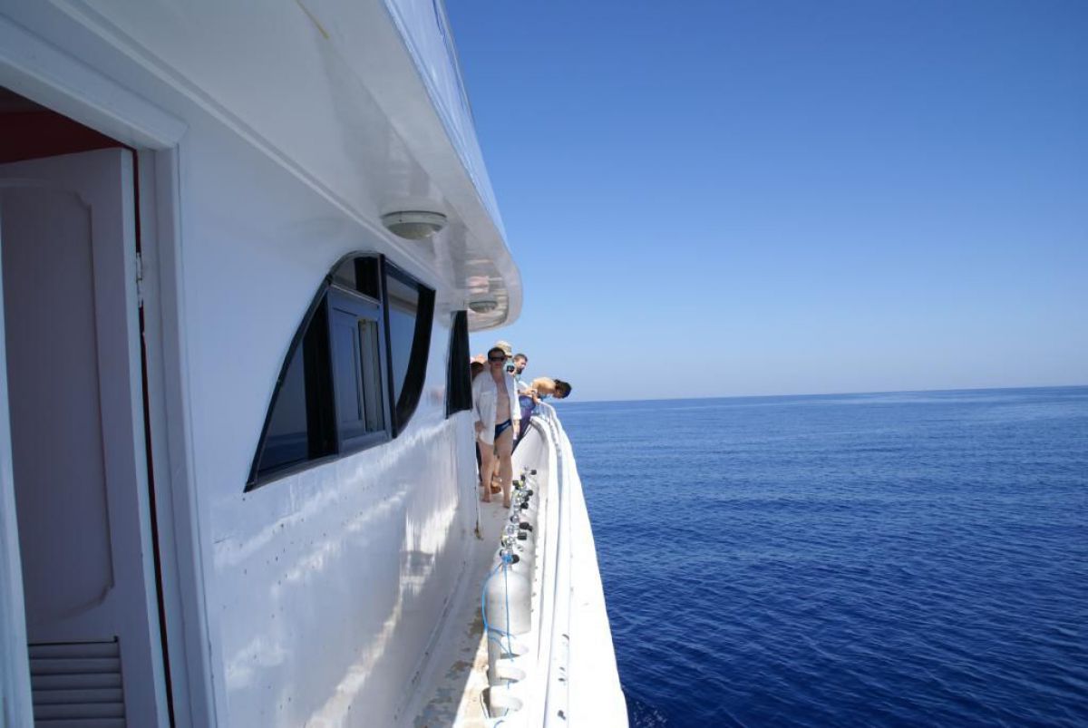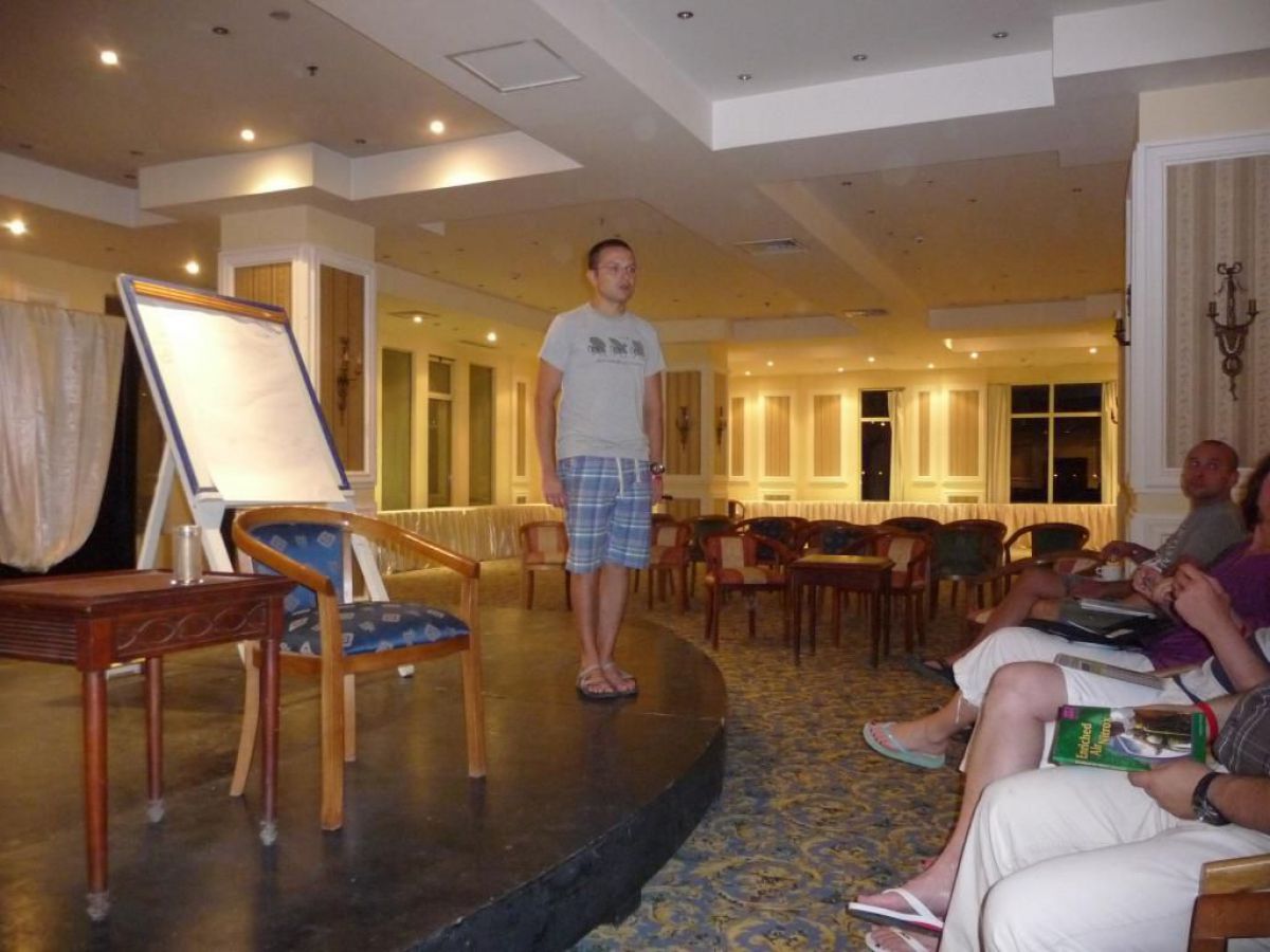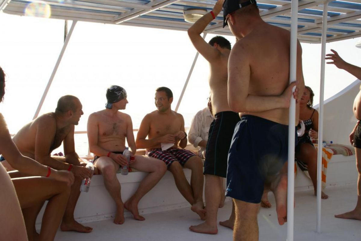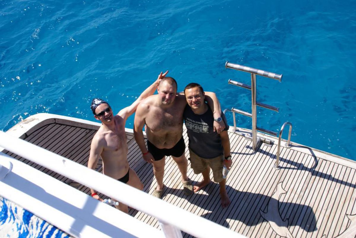 I tak przez kolejne dni, wilgotno, gorąco i kolorowo, zwiedzamy kolejne rafki, nurkujemy też na wraku Salem Express. Atmosfera w ekipie doskonała, czasem ktoś zostawi aparat pod wodą, albo spuszczając wodę w kibelku wypadnie za burtę, co budzi ogólną wesołość chociaż nieszczęśnikowi nie do śmiechu. A gdy wieczorem wracamy do hotelu busikami po ciemku bez świateł (tak się tu jeździ) szybka kąpiel, posiłek i na wykłady, które prowadzi Krzysiek. Potem jakieś pogaduchy przy winku i luli bo jutro rano na nurka. Człowiek wyjechał na wczasy wykupił all inclusive, miało być tak pięknie, a wyszło jak zawsze, harówa.