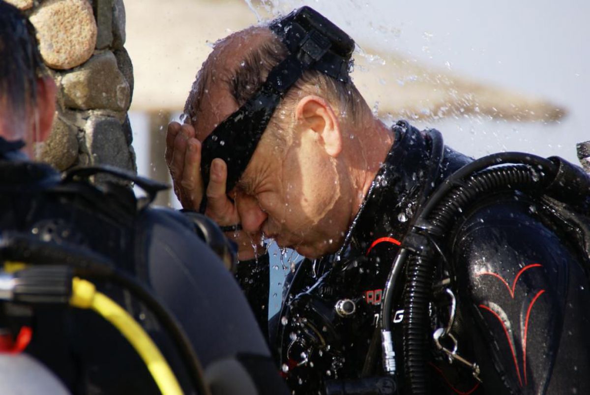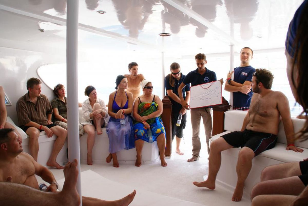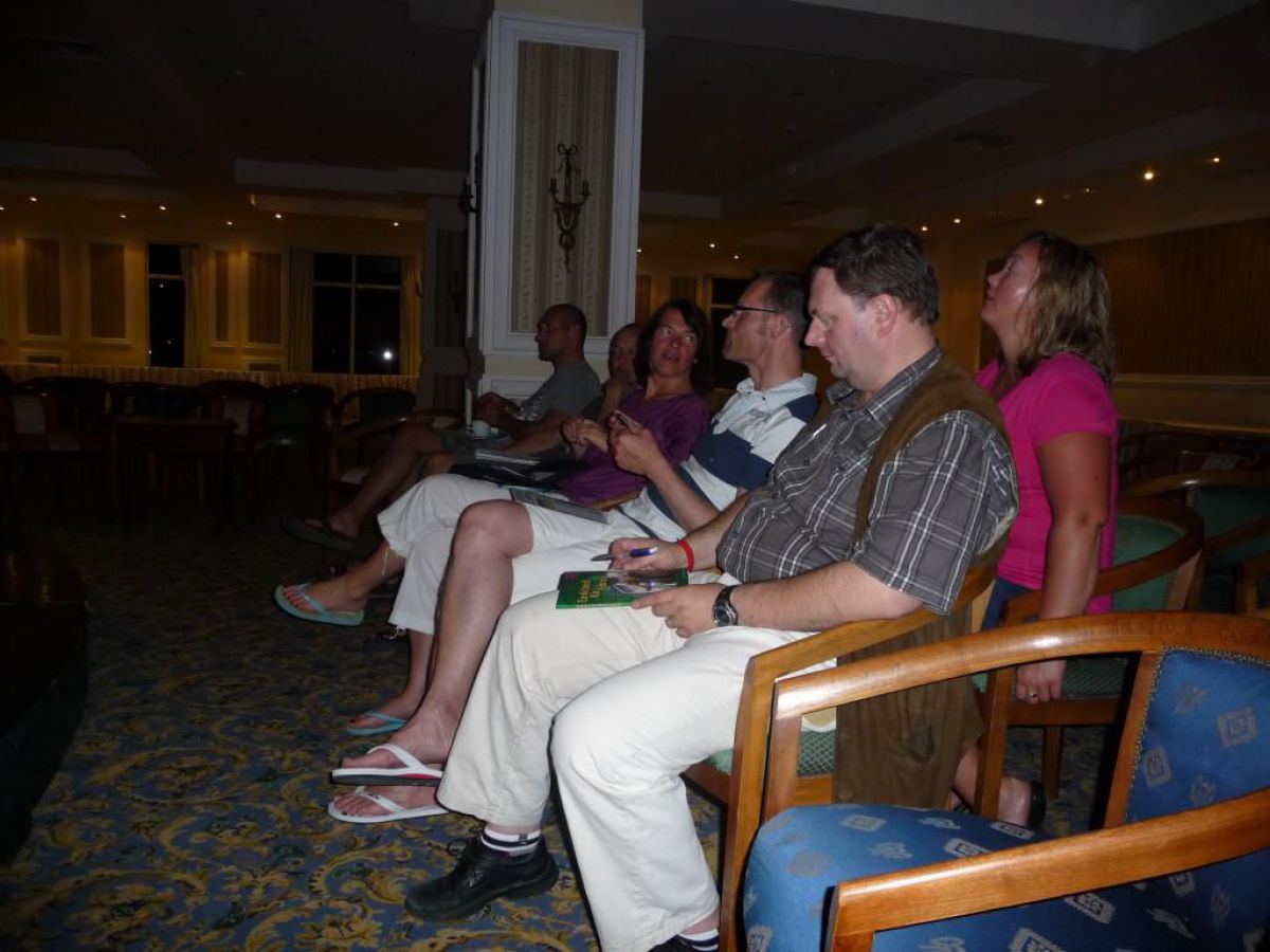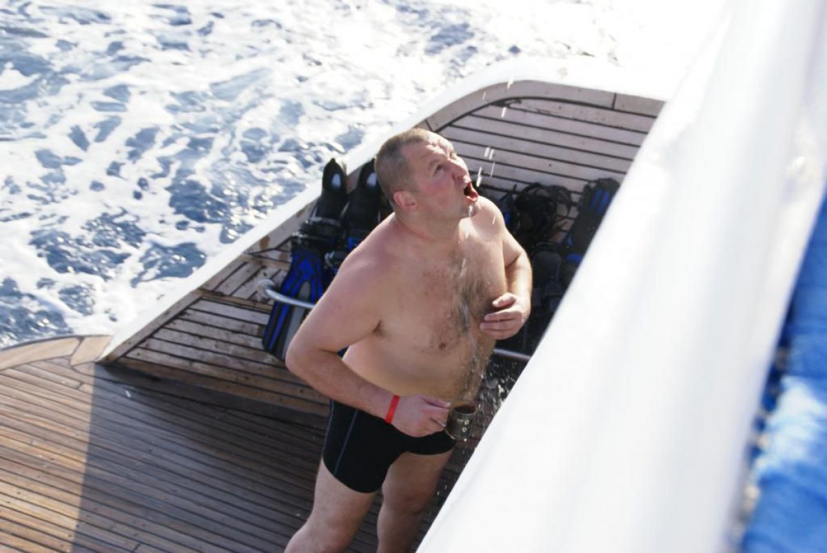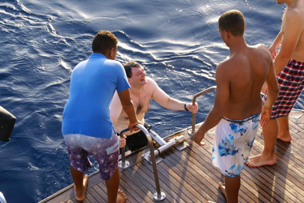 I tak przez kolejne dni, wilgotno, gorąco i kolorowo, zwiedzamy kolejne rafki, nurkujemy też na wraku Salem Express. Atmosfera w ekipie doskonała, czasem ktoś zostawi aparat pod wodą, albo spuszczając wodę w kibelku wypadnie za burtę, co budzi ogólną wesołość chociaż nieszczęśnikowi nie do śmiechu. A gdy wieczorem wracamy do hotelu busikami po ciemku bez świateł (tak się tu jeździ) szybka kąpiel, posiłek i na wykłady, które prowadzi Krzysiek. Potem jakieś pogaduchy przy winku i luli bo jutro rano na nurka. Człowiek wyjechał na wczasy wykupił all inclusive, miało być tak pięknie, a wyszło jak zawsze, harówa.