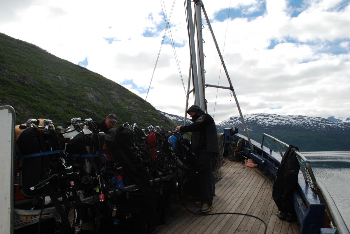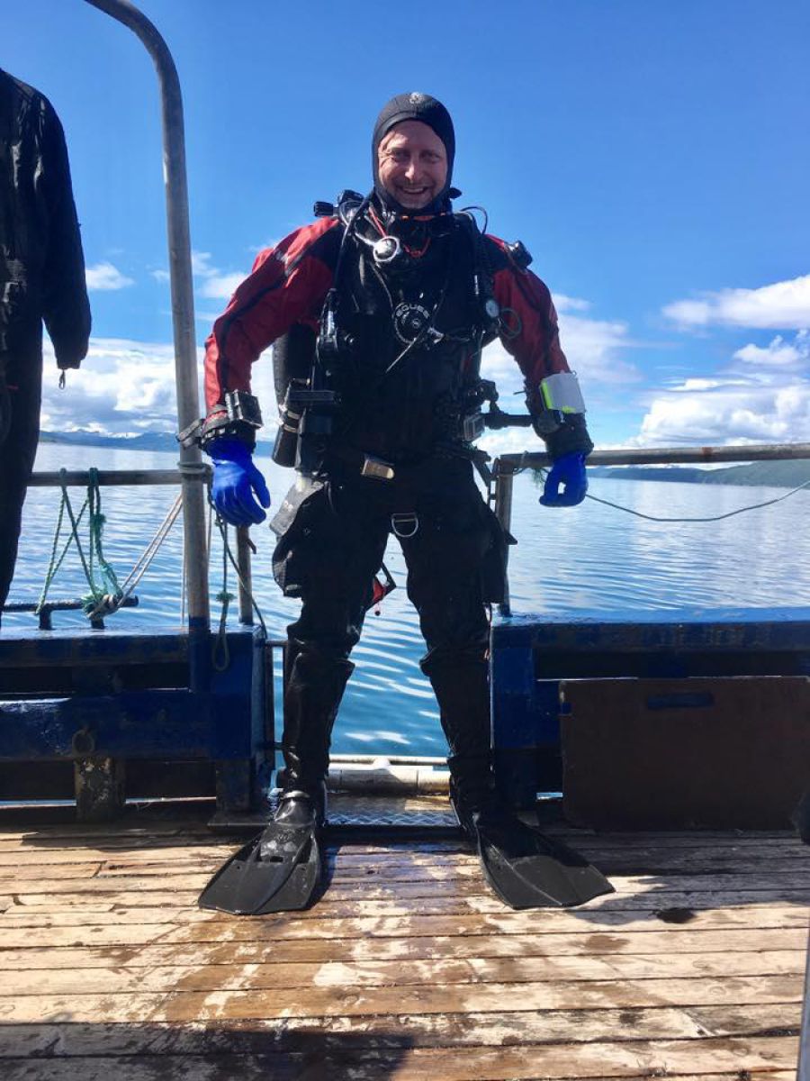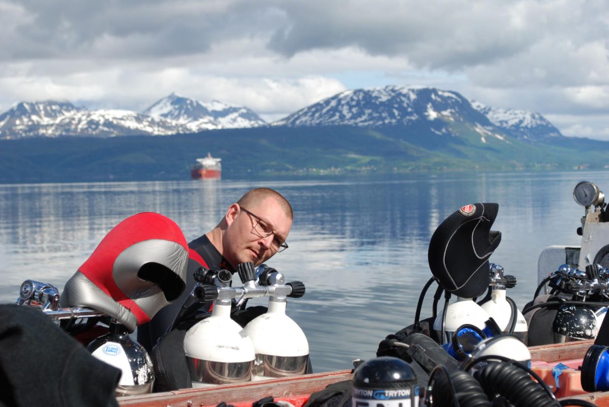 Prawdziwą atrakcją nurkowania w Narwiku były niesamowite widoki. Białe szczyty wysokich gór, nieco niżej zielone stoki schodzące do krystalicznej wody robią wrażenie. Gapiliśmy się w nie non stop.
