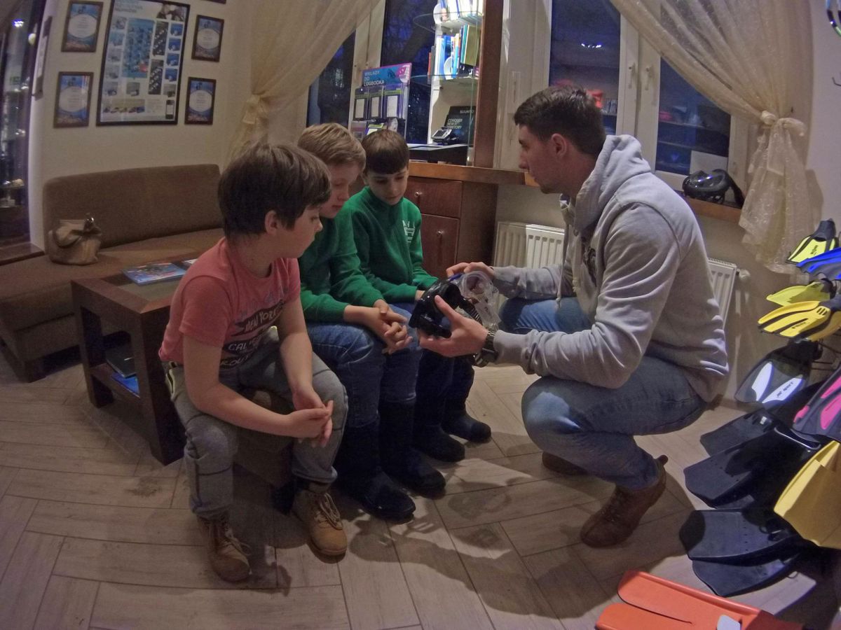 Program składa się z 3 spotkań.  Pierwsze spotkanie to wykłady, podczas których zapoznajemy dzieci z zasadami bezpiecznego nurkowania ze sprzętem nurkowym.