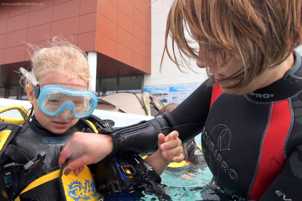 Sprzęt nurkowy w jakim będą nurkować dzieci został specjalnie zakupiony z myślą o szkoleniu najmłodszych. Małe jackety, butle, pianki i automaty, wszystko po to aby dzieci komfortowo czuły się pod wodą.