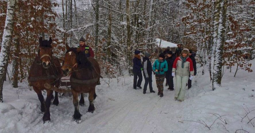 Rozpoczynamy od kuligu objeżdżając okoliczne trasy zaprzęgiem konnym