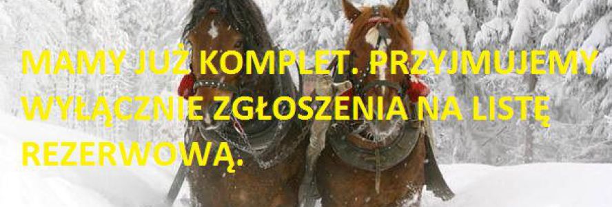 Zrobiliśmy rezerwację na dwa zaprzęgi po 15 każdy. Czyli w sumie w kuligu może wziąć udział aż 30 osób. Przyglądając się zapisom ilość ta jest do zorganizowania z palcem w nosie :) dlatego wstępnie zrobiliśmy rezerwację na kolejny, dodatkowy zaprzęg.