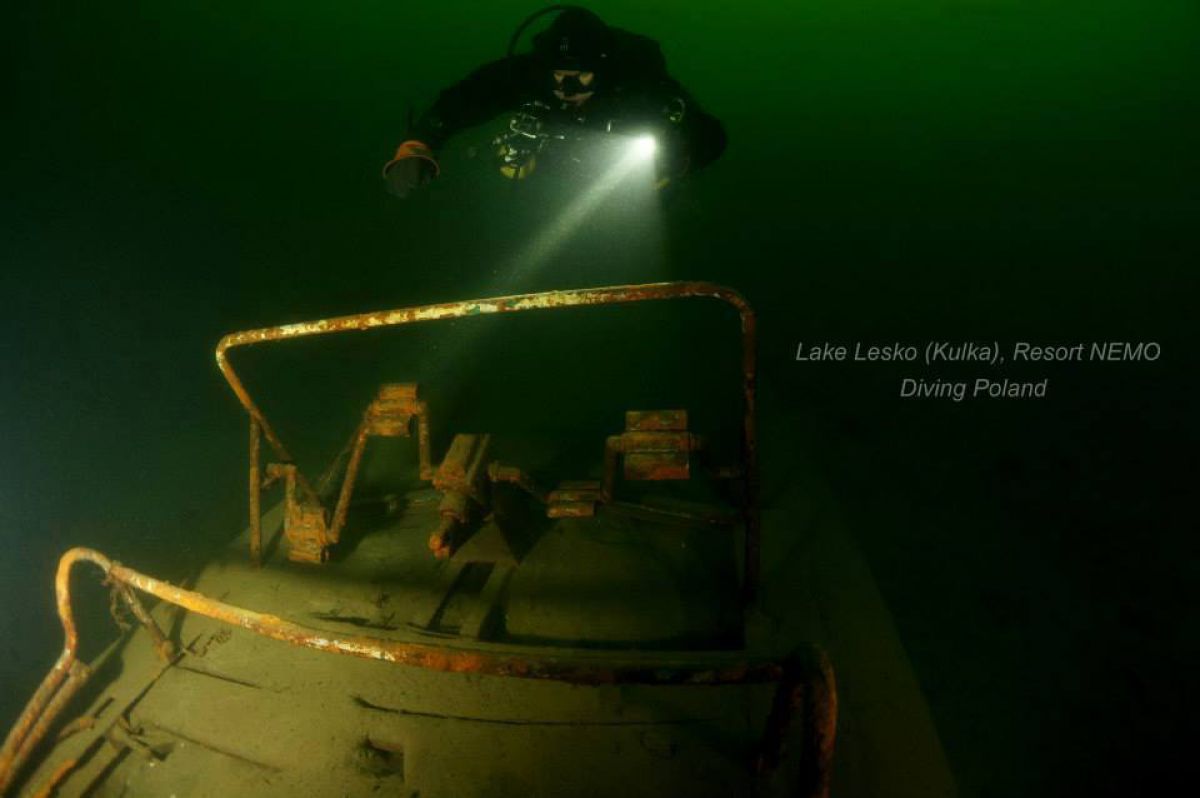 Pod wodą można znaleźć zatopione auta, rowery wodne, platformy w desek oraz pionowo nachylone ścianki przypominające te z Hańczy :)