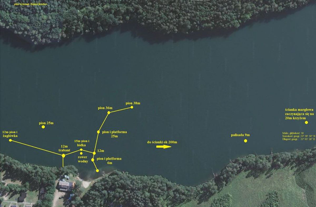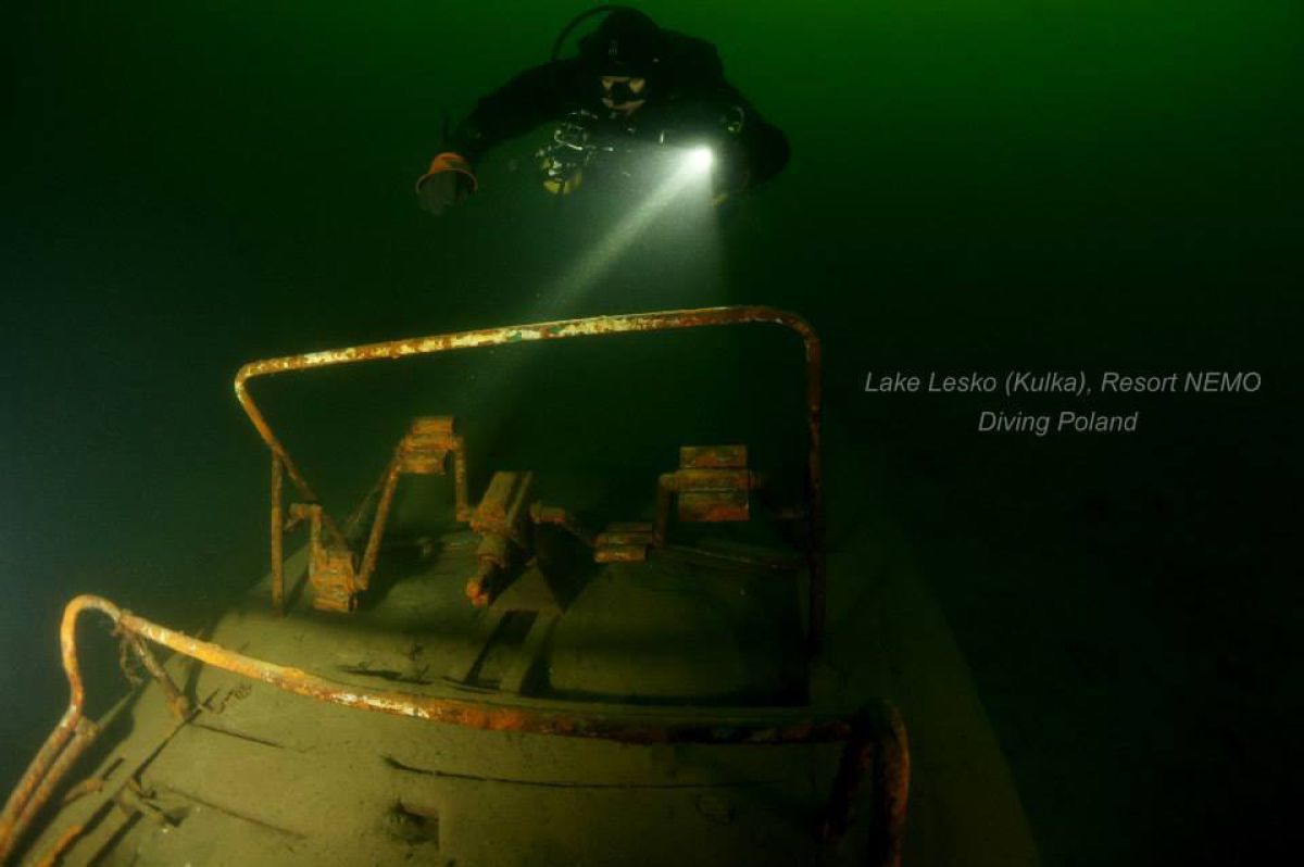 Jezioro znane jest wszystkim nurkom jako akwen o bardzo czystej wodzie. Natomiast w jego strefie przybrzeżnej jest relatywnie płytkie. Maksymalna głębokość to aż 40m :) Większość zatopionych elementów znajduje się zazwyczaj do głębokości 18m.