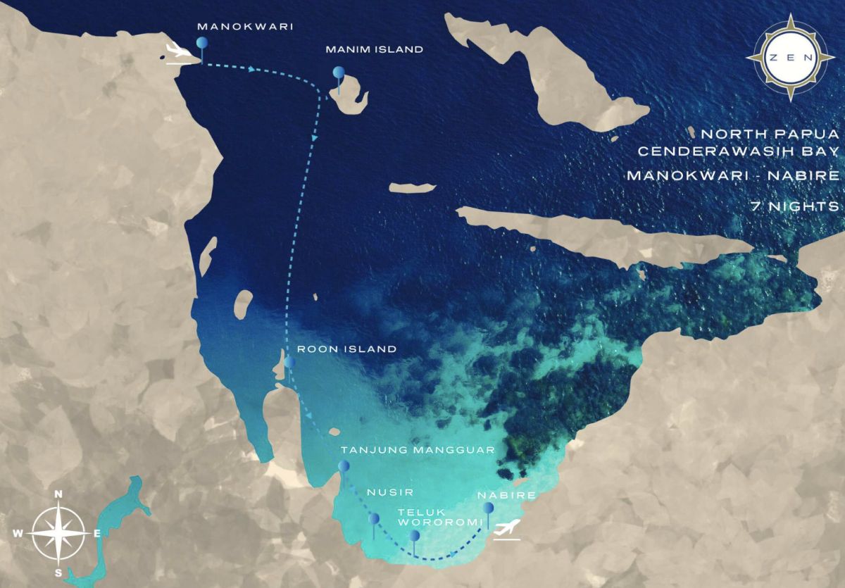 W rejonie Zatoki Cenderawasih chcemy spędzić 7 dni nurkowych, w trakcie których chcemy wykonać ponad 20 nurkowań (średnio nurkując 3 -4 razy dziennie). Nasze Safari rozpoczniemy w Manokwari, gdzie wylądujemy po długiej podróży. Zakwaterujemy się w hotelu gdzie będziemy mogli odpocząć i skąd zostaniemy odebrani i przetransportowani na łódź.