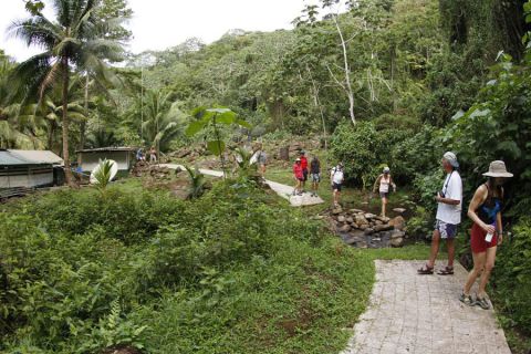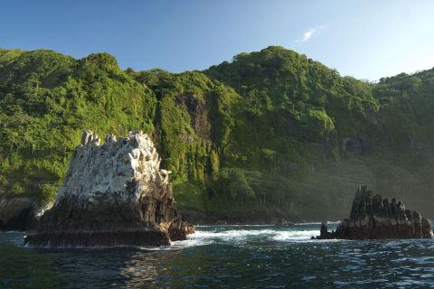 Wyspa kokosowa nie jest pokryta bujną rafą koralową, to raczej ciemne skały wulkaniczne z minimalnymi dekoracjami. Nieco inaczej jest nad powierzchnią. Wokoło wyspy roi się od wodospadów oraz bujnej roślinności.