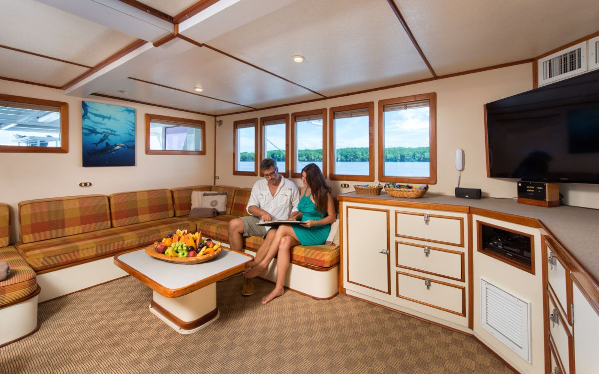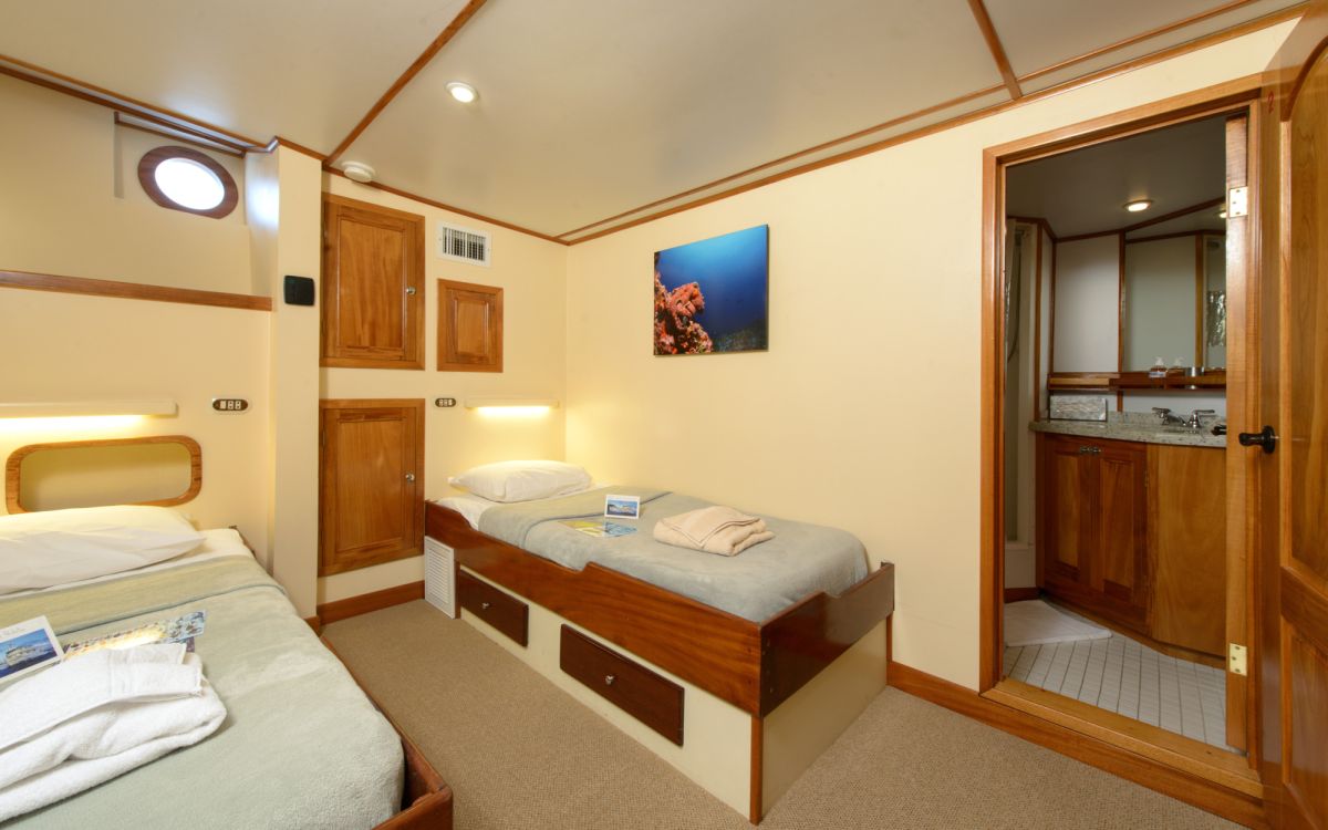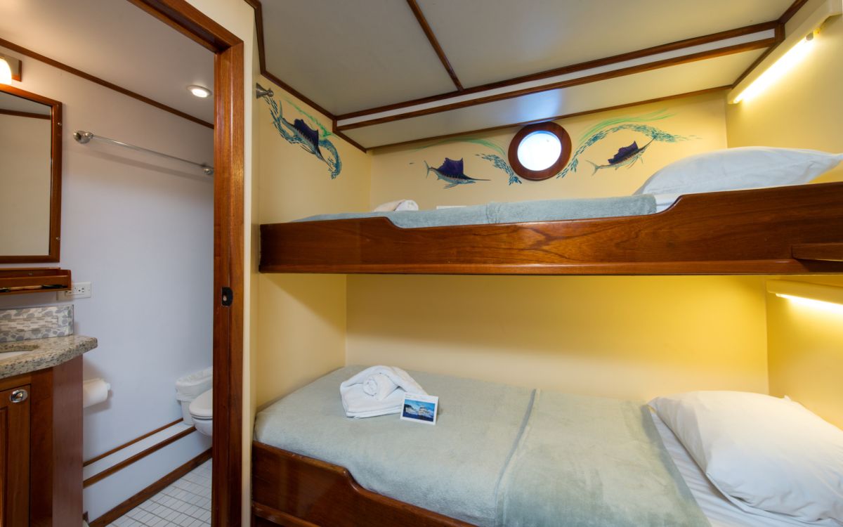 Na safari wybieramy się łodzią safari M/Y Sea Hunter na pokładzie której będziemy zakwaterowani w dwu osobowych kabinach z klimatyzacją i prywatną toaletą oraz prysznicem. Kabiny są dość przestronne z duża ilością szafek i biurkiem. Sea Hunter to dość duża, stalowa, 35m jednostka posiadająca na swoim pokładzie 10 kabin, salon, część wypoczynkową oraz jadalnie. W klasie łodzi pływających w rejonie wyspy kokosowej oznaczona jest jaki Luxory, 4 gwiazdki międzynarodowe.