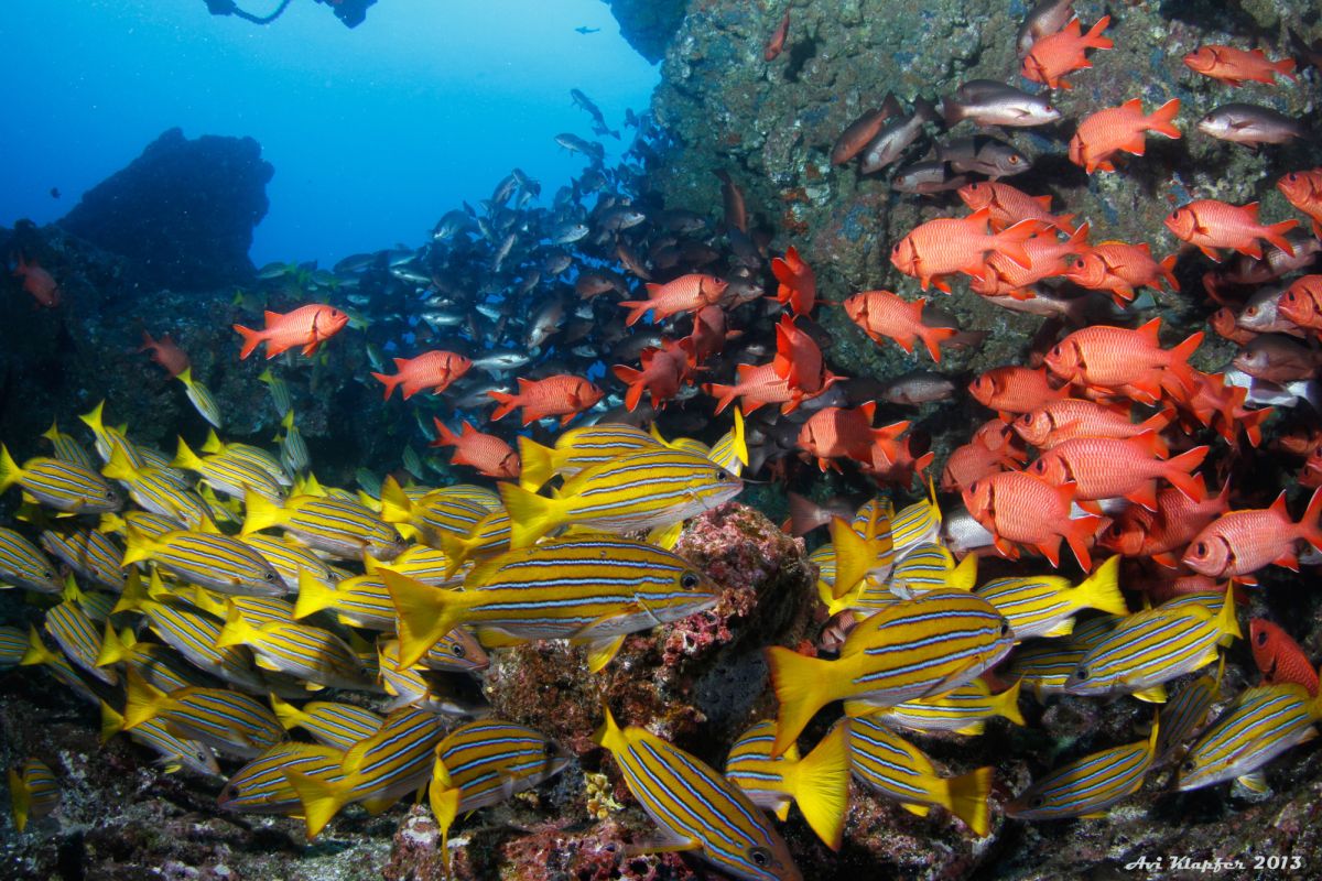 Z nie wyjaśnionych powodów wyspa kokosowa stanowi przystanek dla przepływających tę okolicę ogromnych stad rekinów młotów. Znajdujące się przy krawędzi wyspy skały kryją niewielkiej ilości ryby "czyściciele" które stanowią prawdziwe SPA dla przepływające tę okolicę zwierzęta.